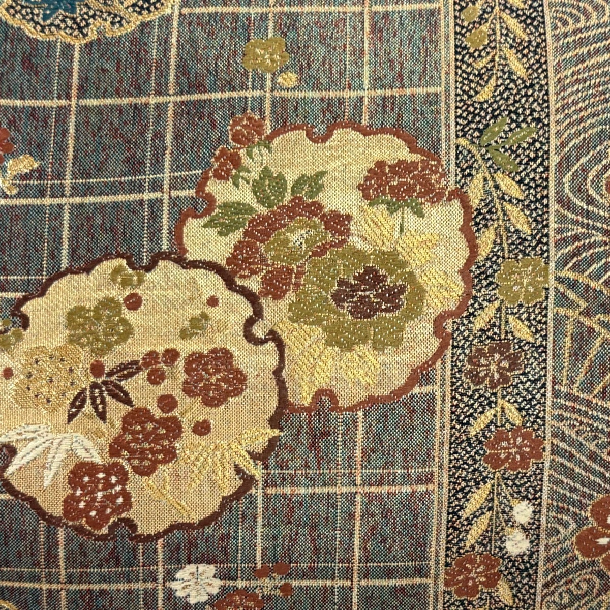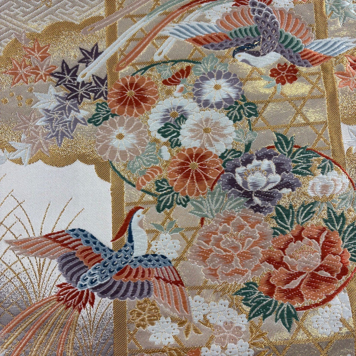 袋帯 秀品 秋草 笠松 金糸 箔 金色 六通 正絹