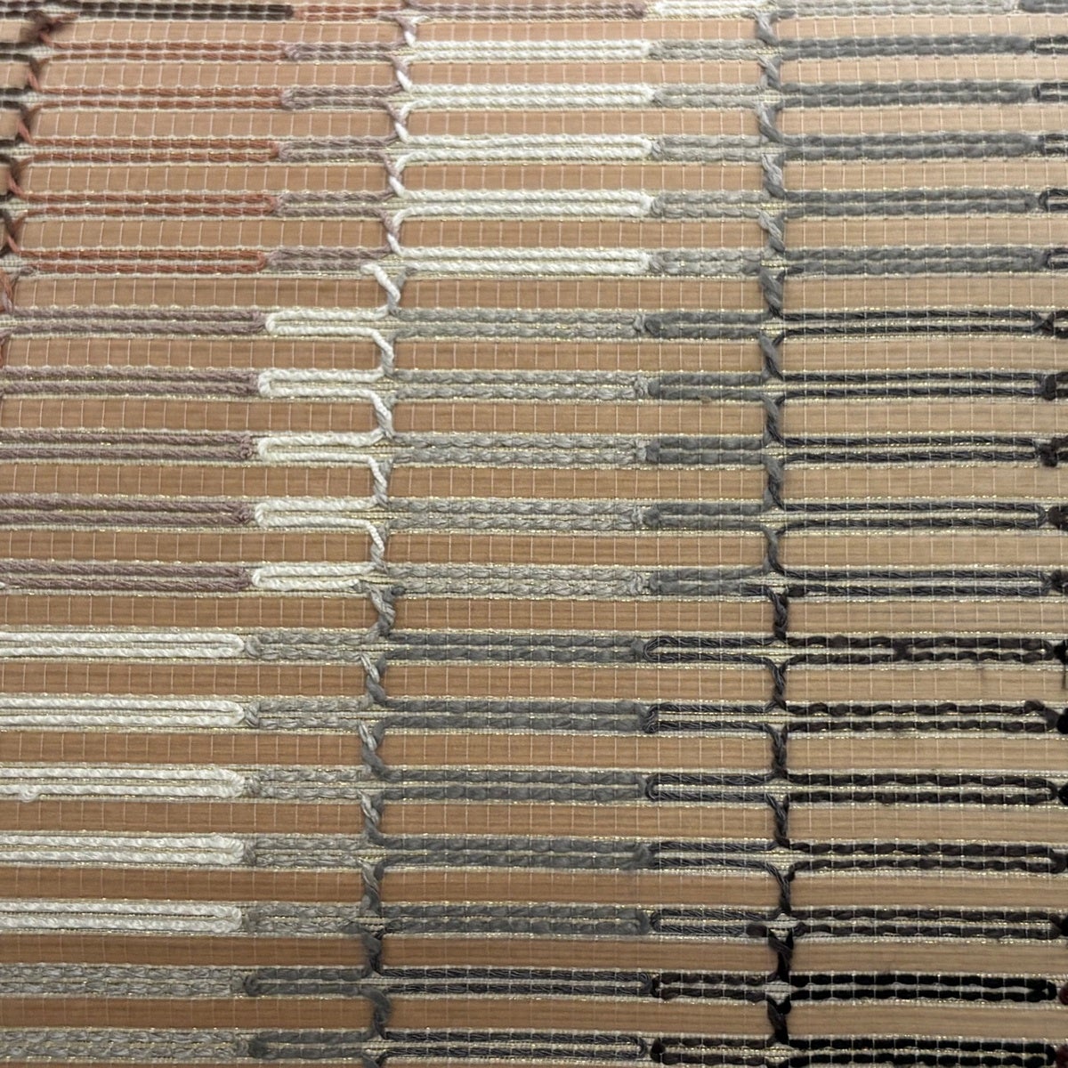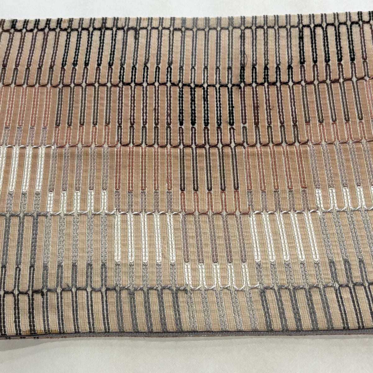 袋帯 秀品 葉柄 幾何学 薄茶色 お太鼓柄 正絹