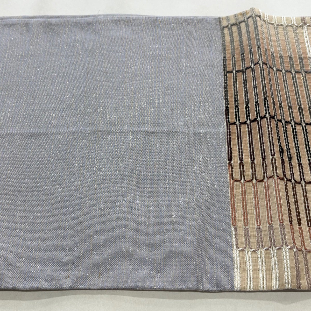 袋帯 秀品 夏帯 幾何学 青灰色 お太鼓柄 正絹