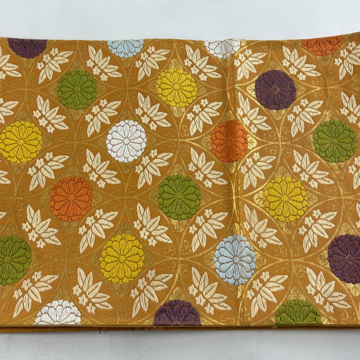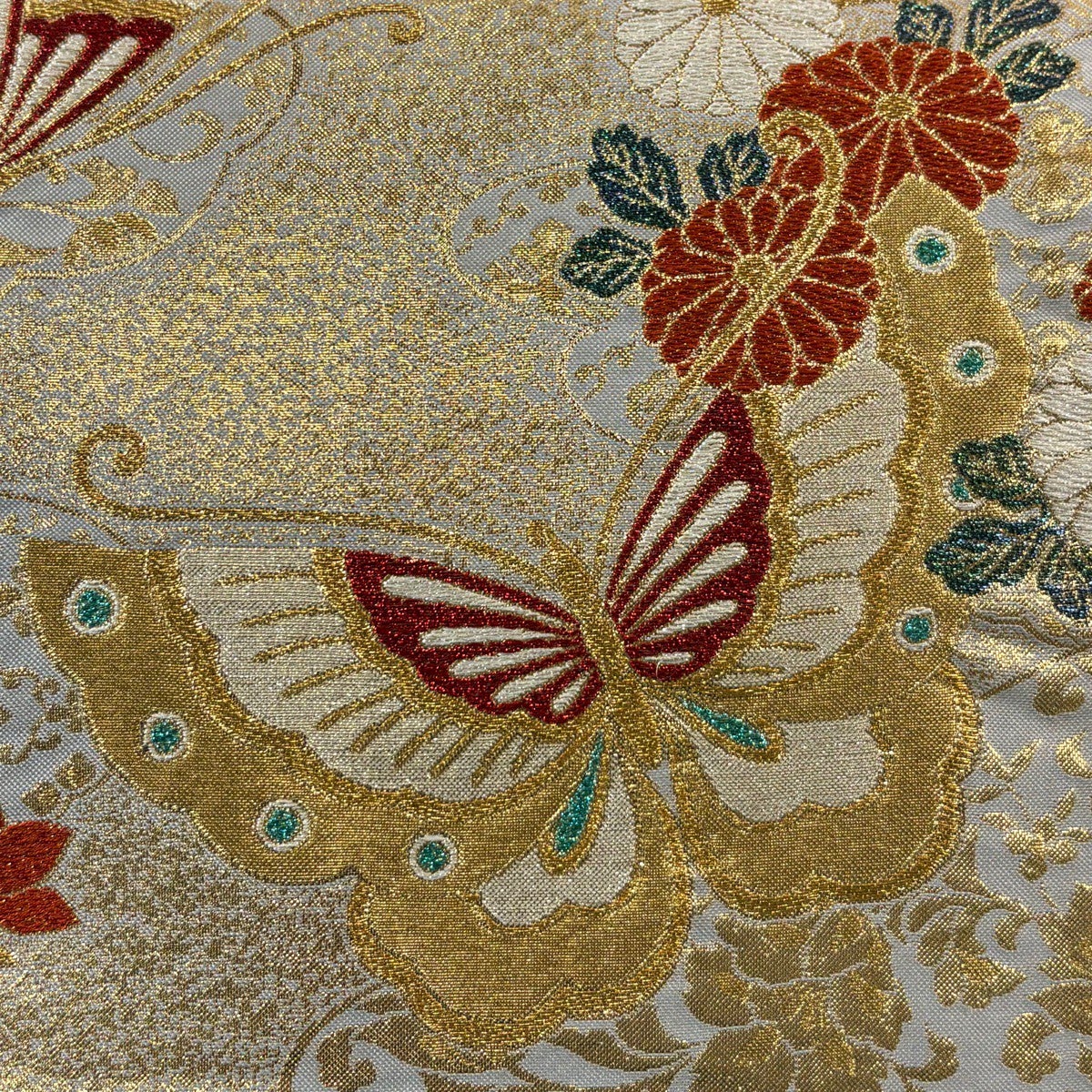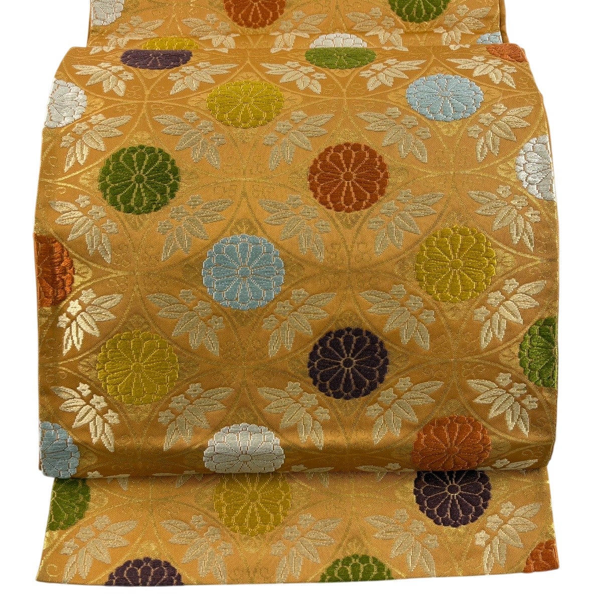 袋帯 秀品 草花 七宝 金糸 箔 金色 六通 正絹