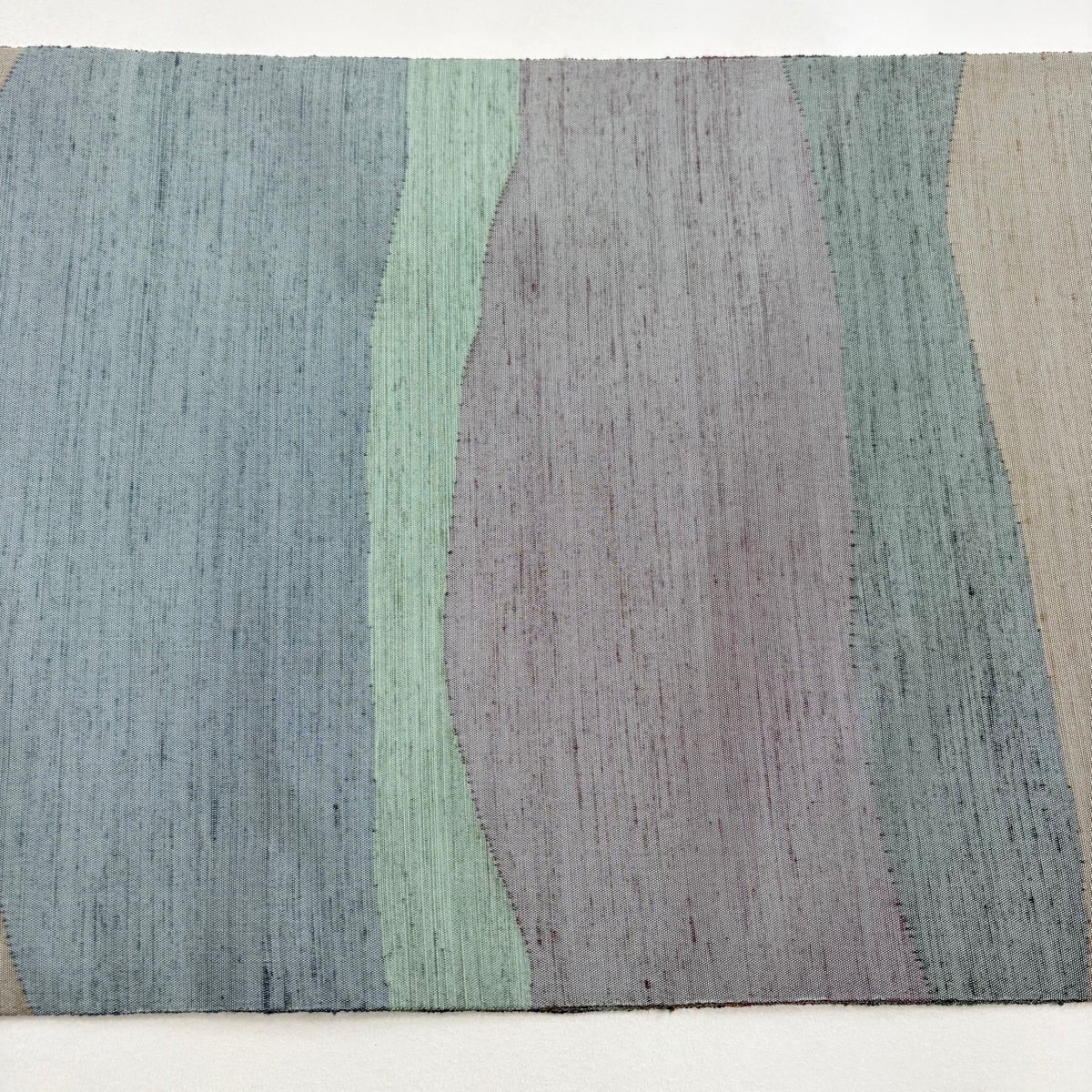 【美品】 袋帯 逸品 斉藤上太郎 落款あり 幾何学 銀糸 灰緑 全通 正絹