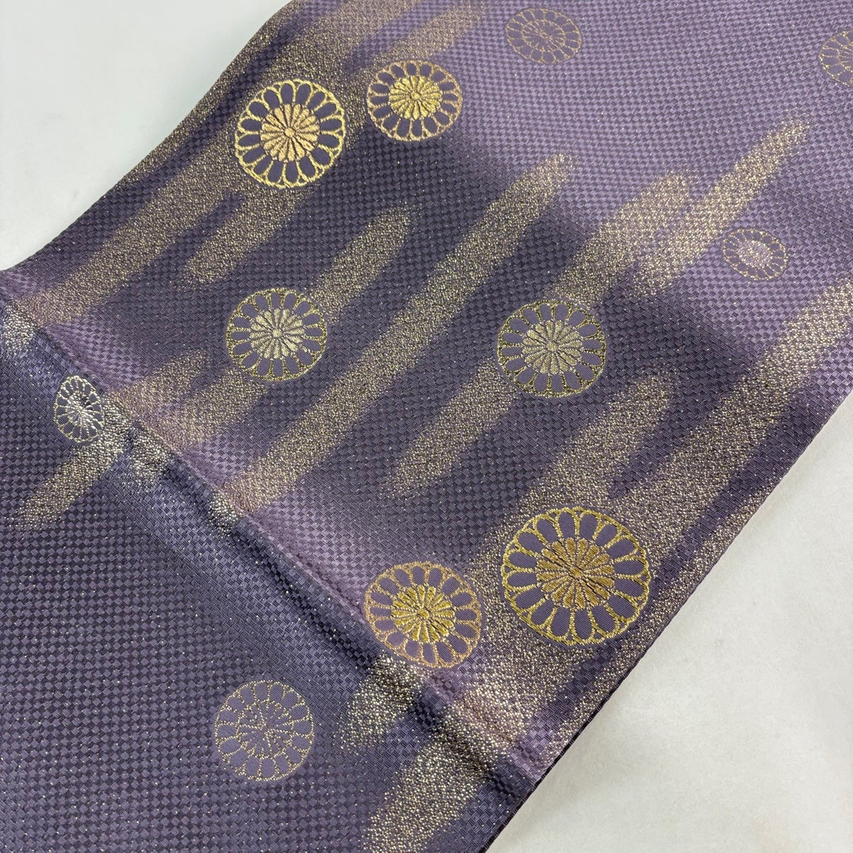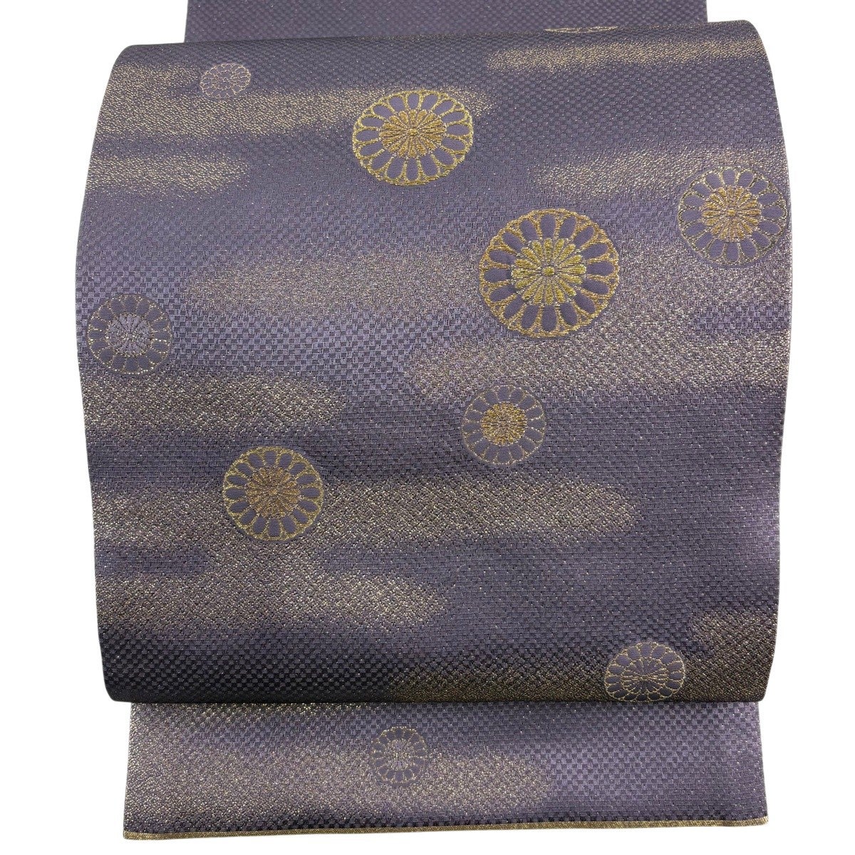 【美品】 袋帯 秀品 東京ますいわ屋 菊 ヱ霞 金糸 箔 紫 お太鼓柄 正絹