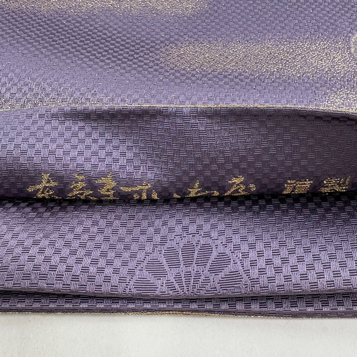 【美品】 袋帯 秀品 となみ織物 落款あり 証紙あり 梅の丸 灰紫 六通 正絹