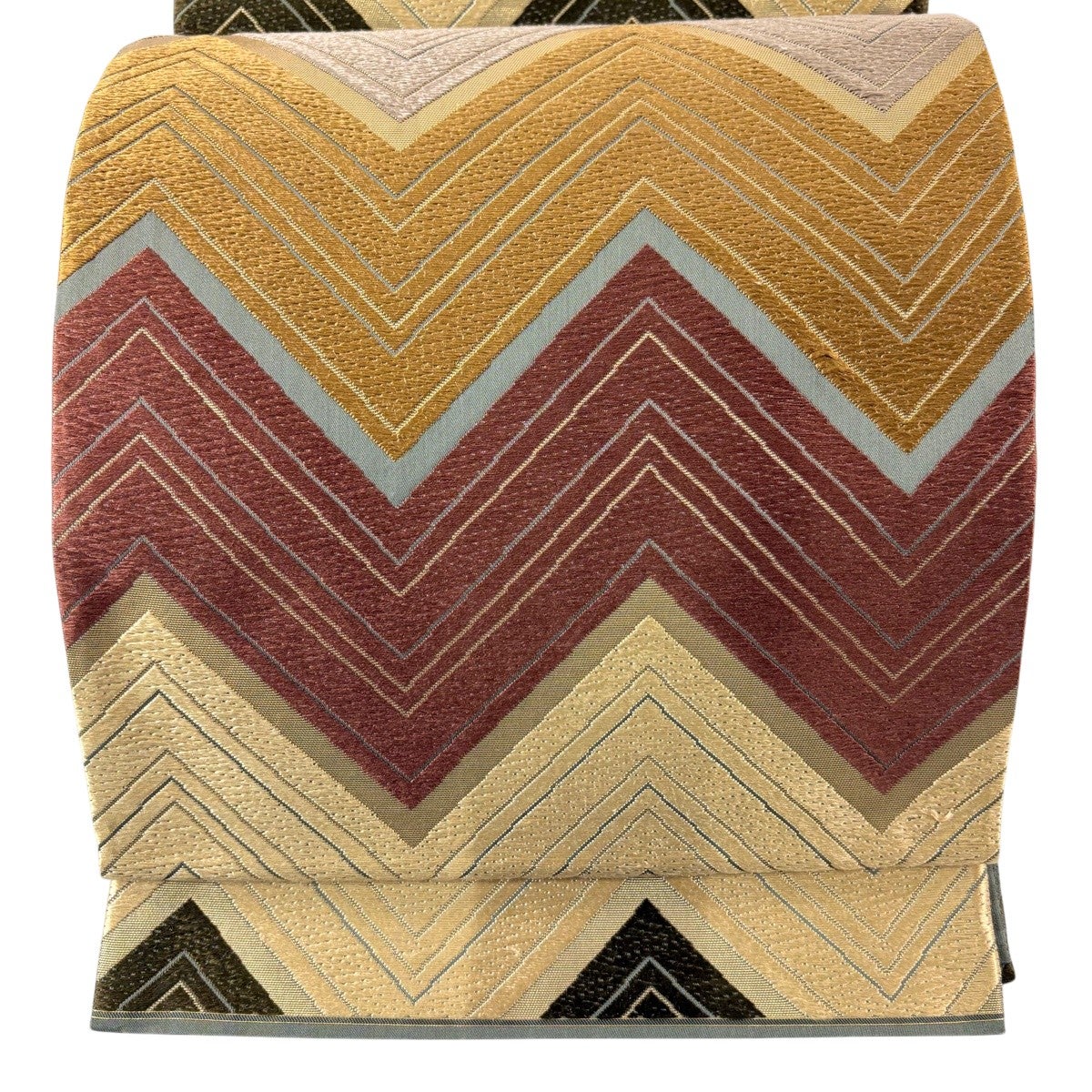 【美品】 袋帯 秀品 やまと 段縞 幾何学模様 金糸 抹茶色 お太鼓柄 正絹