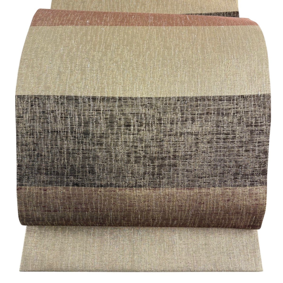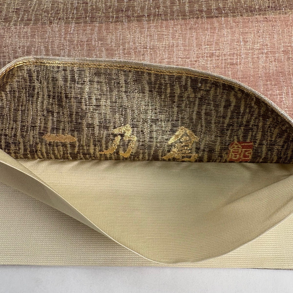 袋帯 秀品 夏帯 絽 花籠 縞 金糸 刺繍 ピンクベージュ 六通 正絹