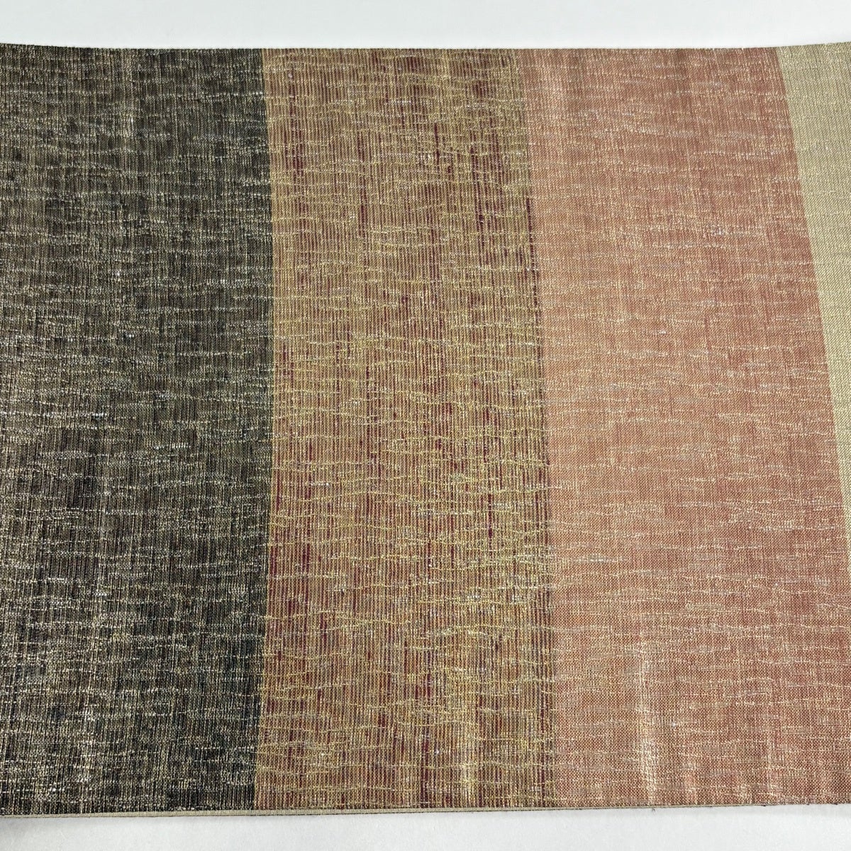 【美品】 袋帯 秀品 渡文 落款あり 斜縞 幾何学模様 箔 茜色 六通 正絹