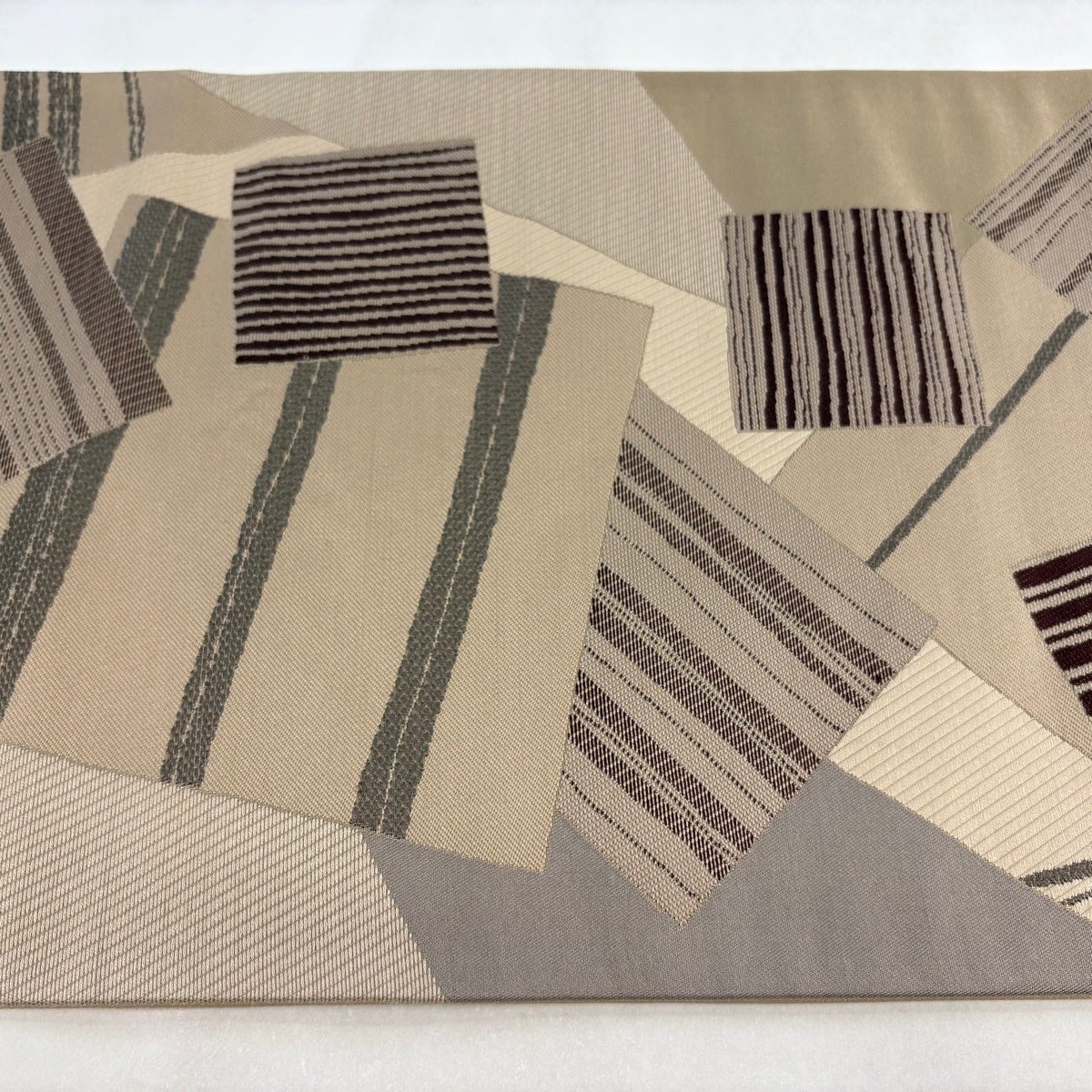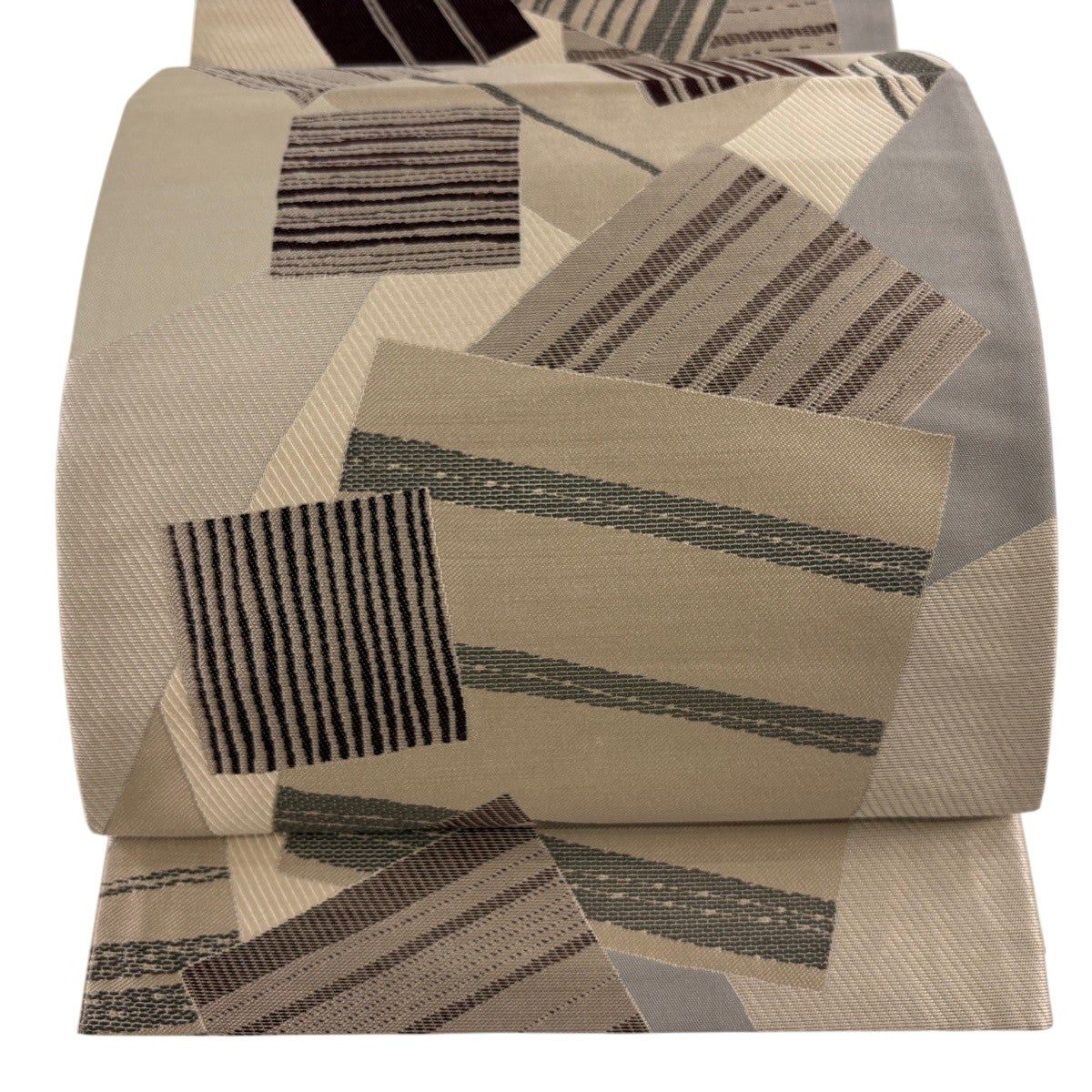 【美品】 袋帯 秀品 夏帯 絽 幾何学 金銀糸 ベージュ お太鼓柄 正絹