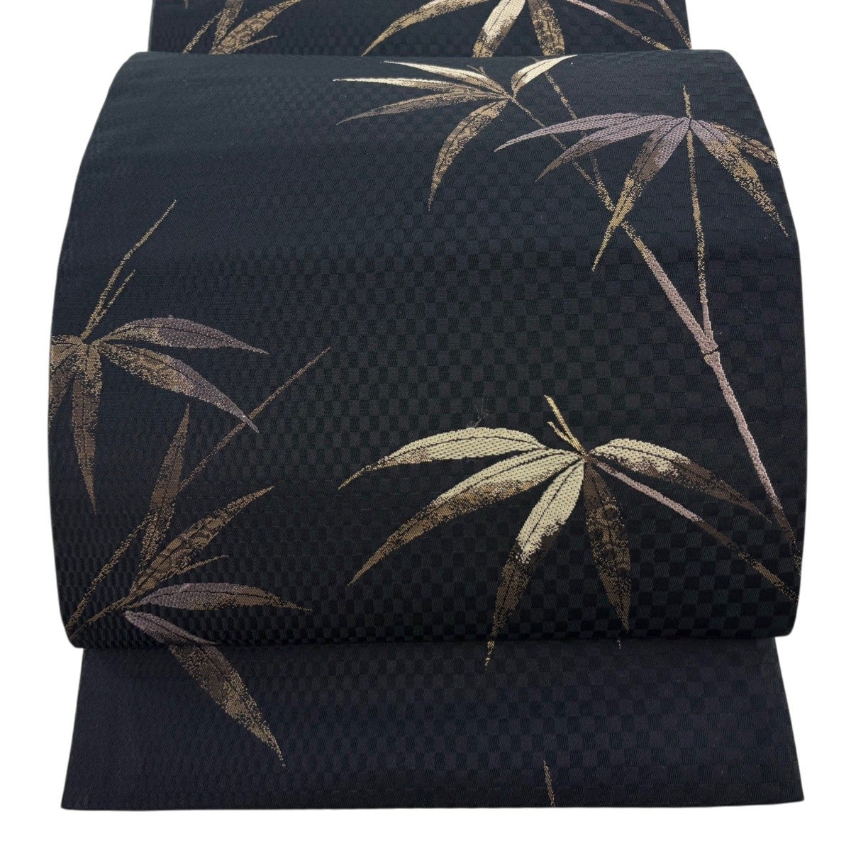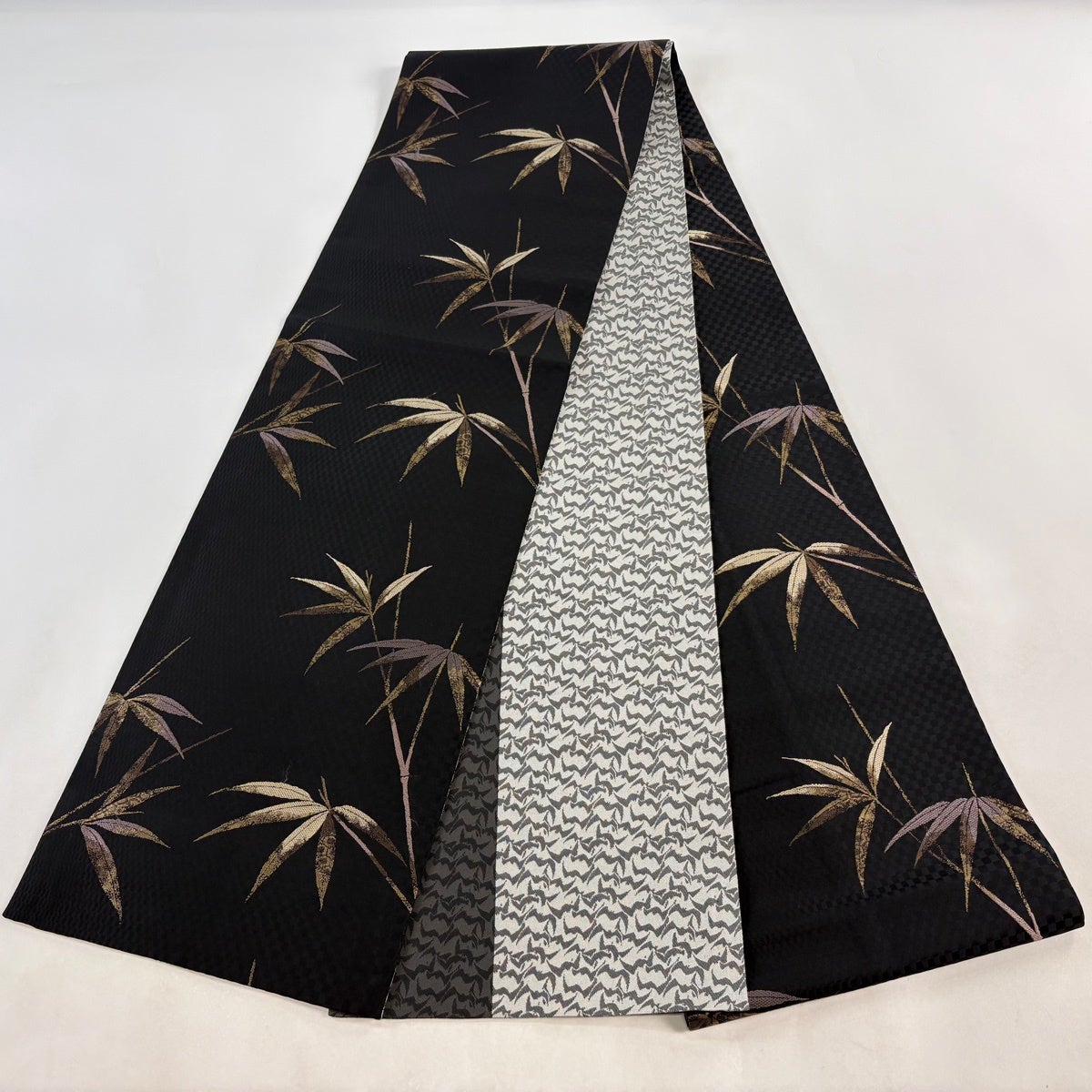 袋帯 逸品 草花 竹 金銀糸 黒 六通 正絹