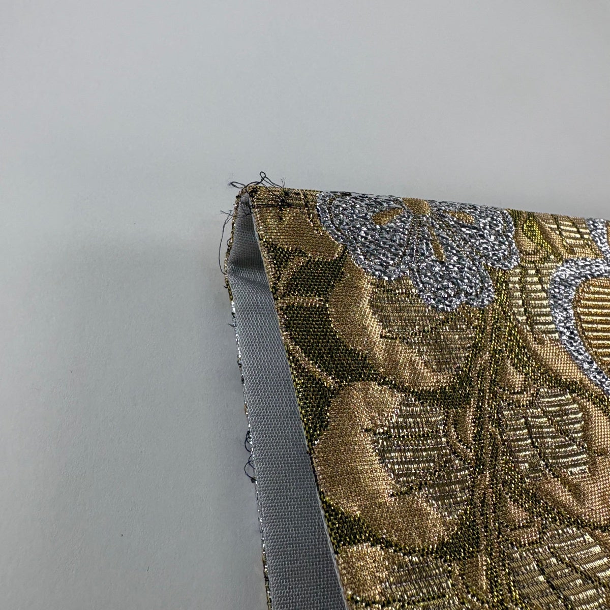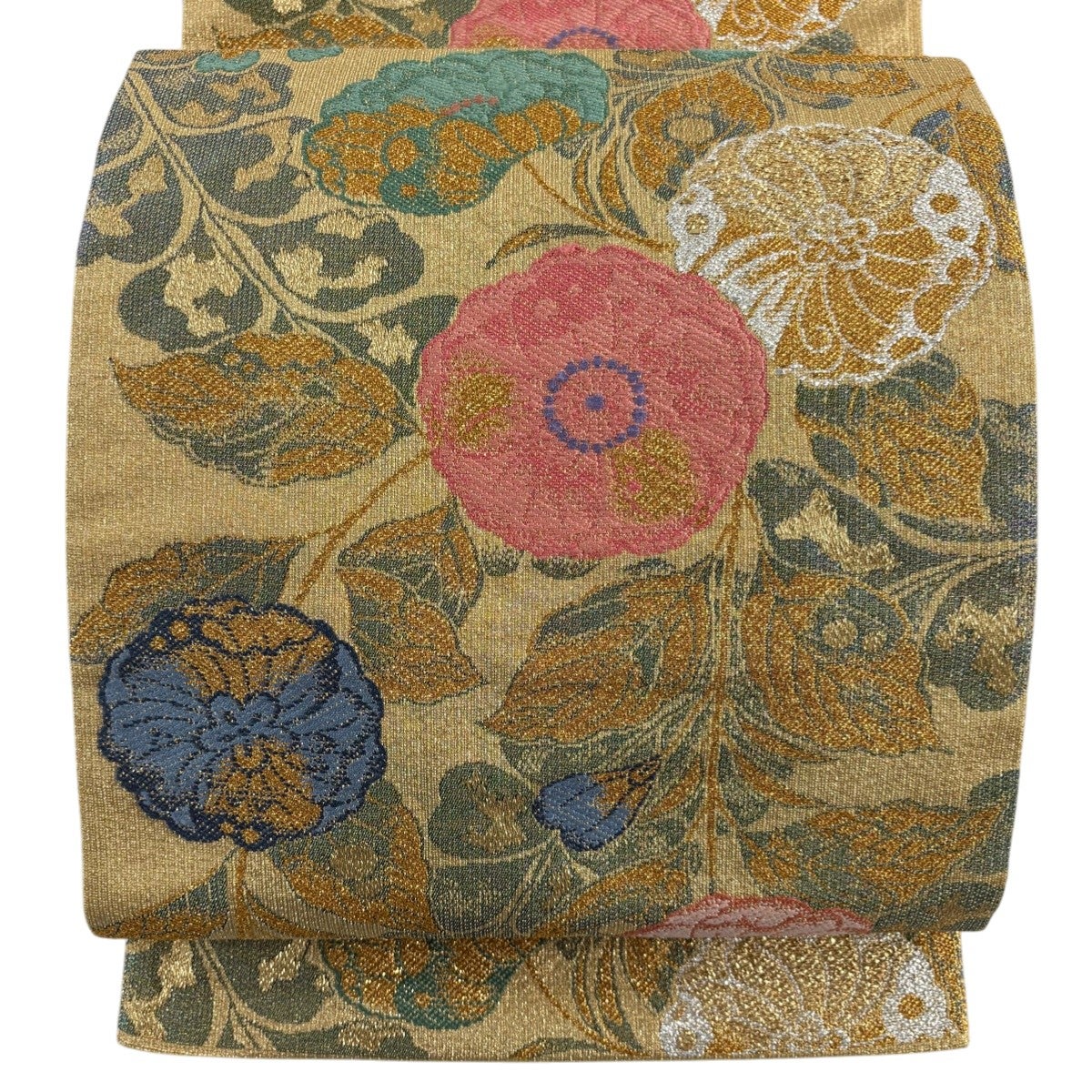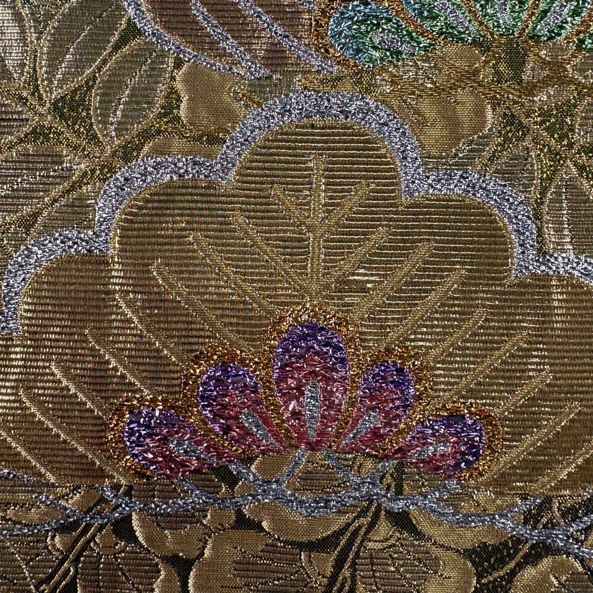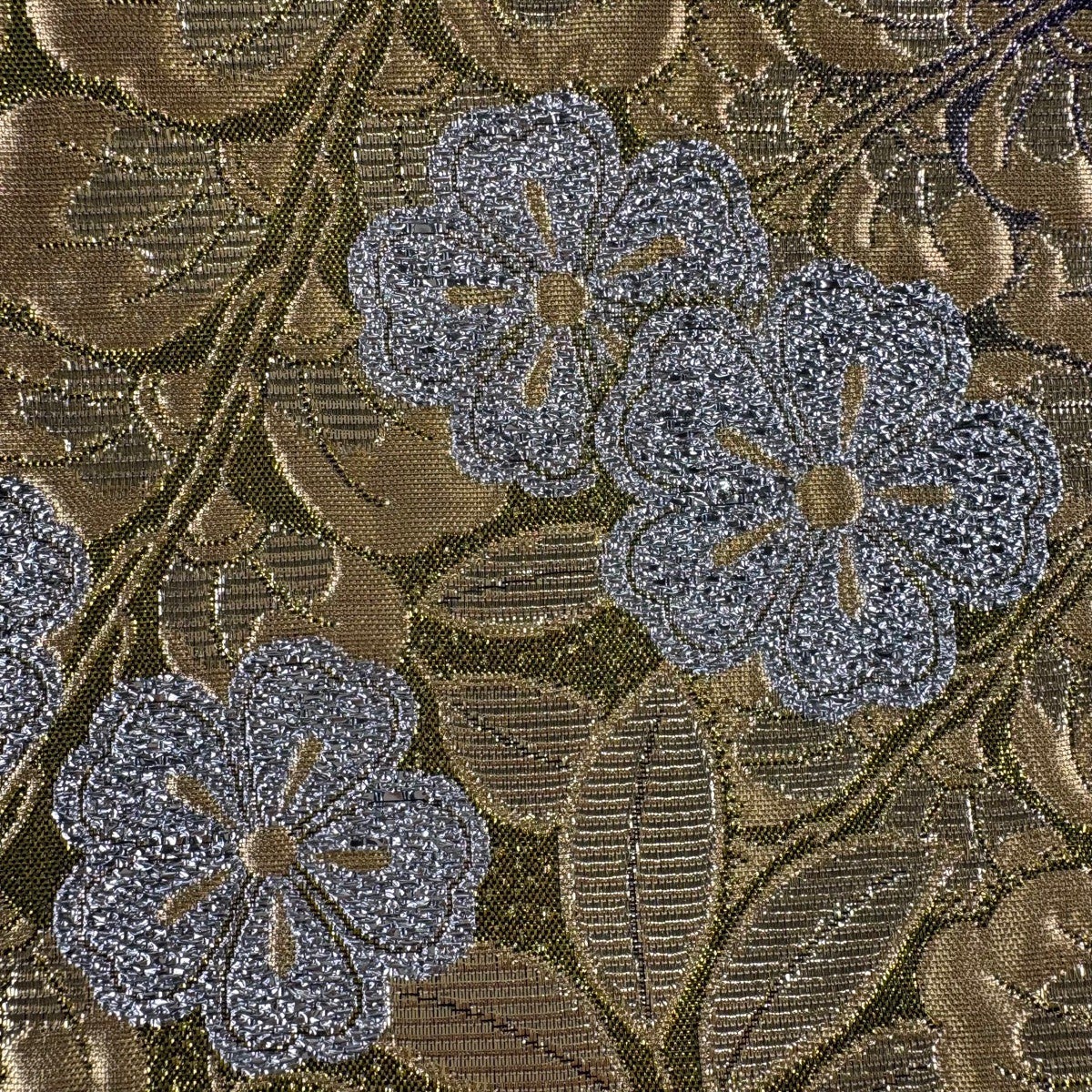 袋帯 秀品 草花 唐織 箔 銀色 六通 正絹