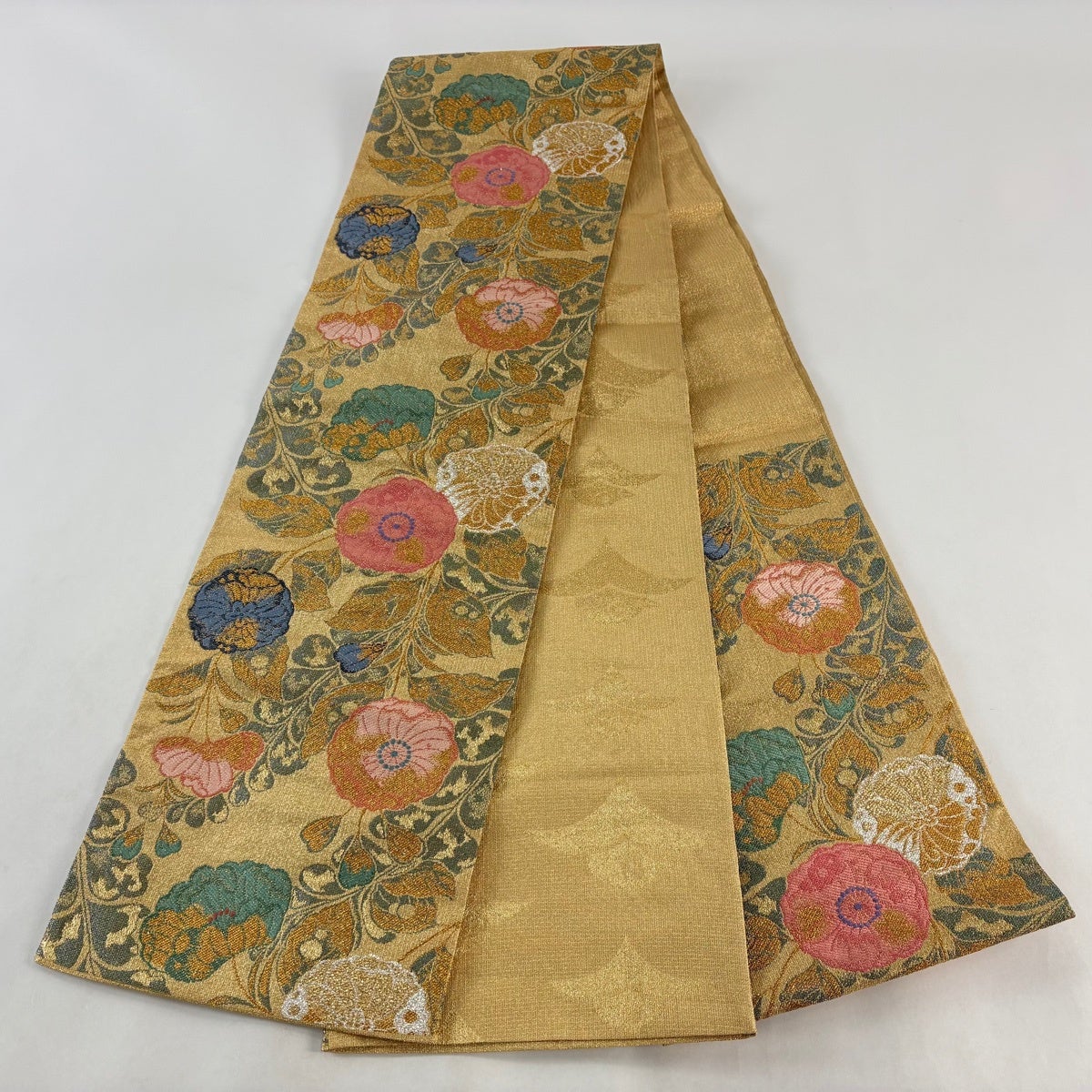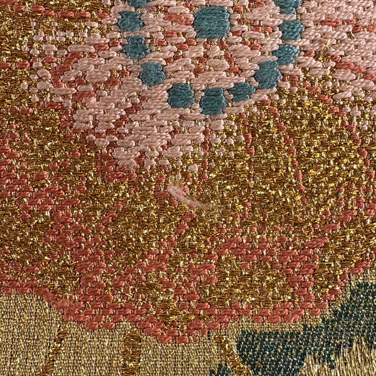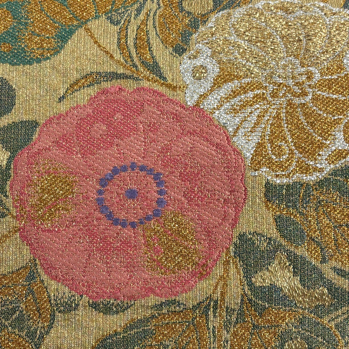 袋帯 秀品 華文 箔 刺繍 金色 六通 正絹