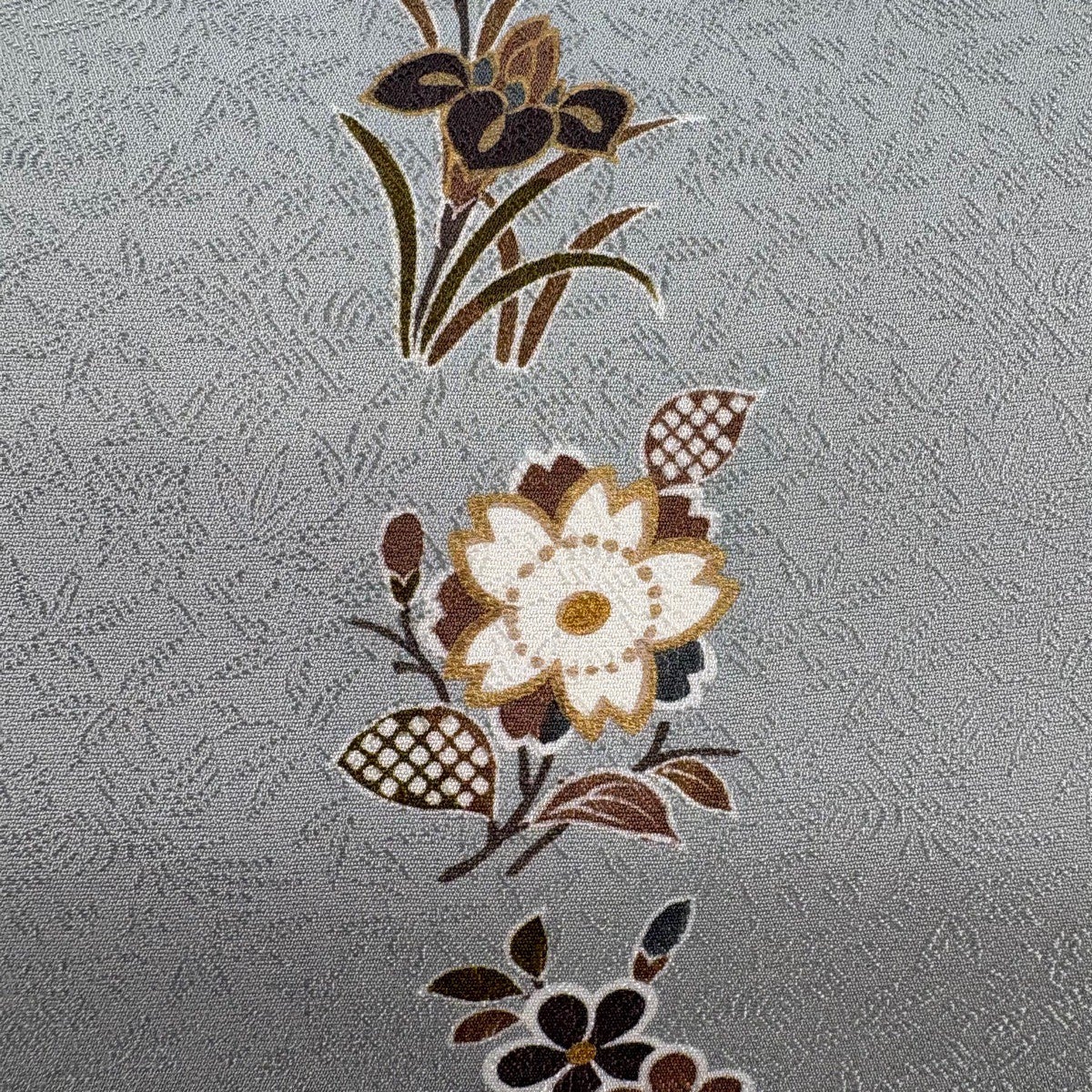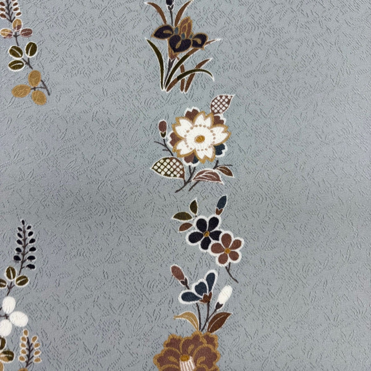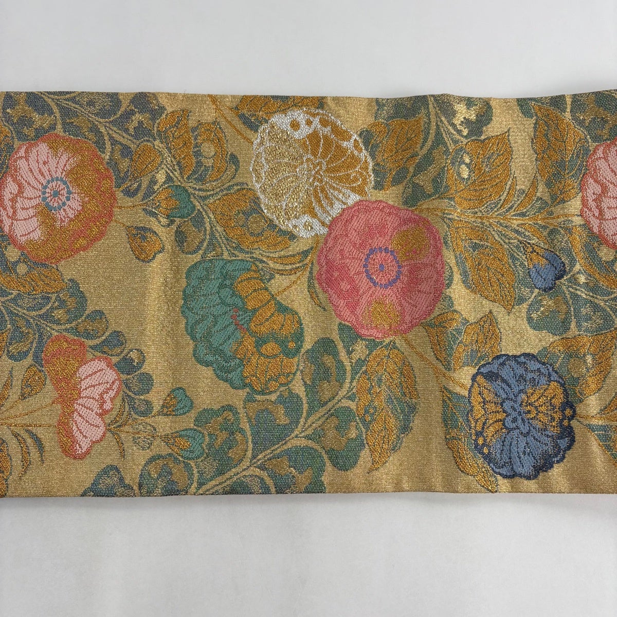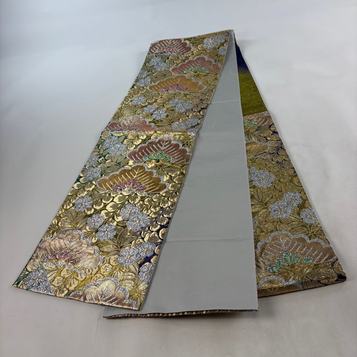 【美品】 袋帯 名品 花 青灰色 全通 正絹