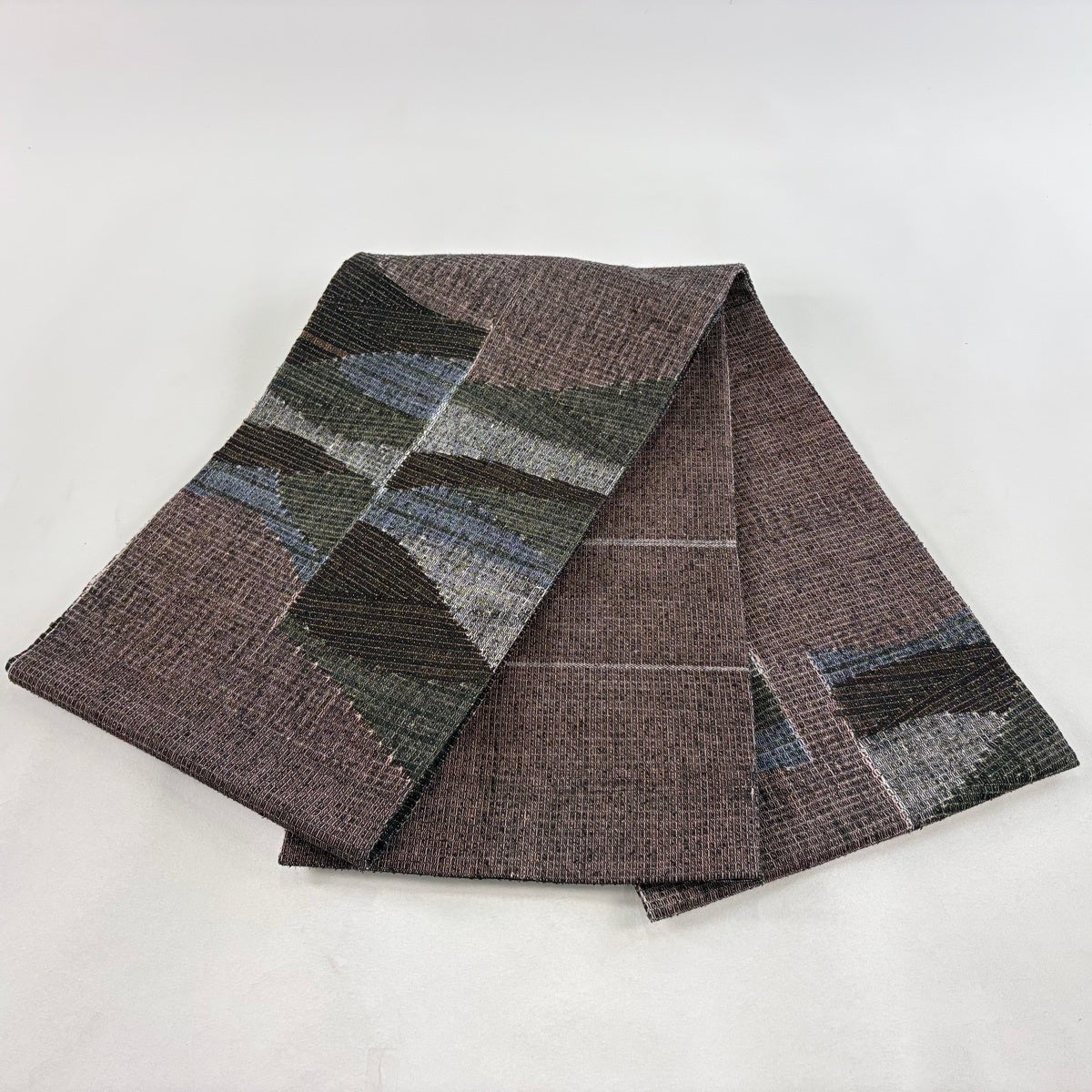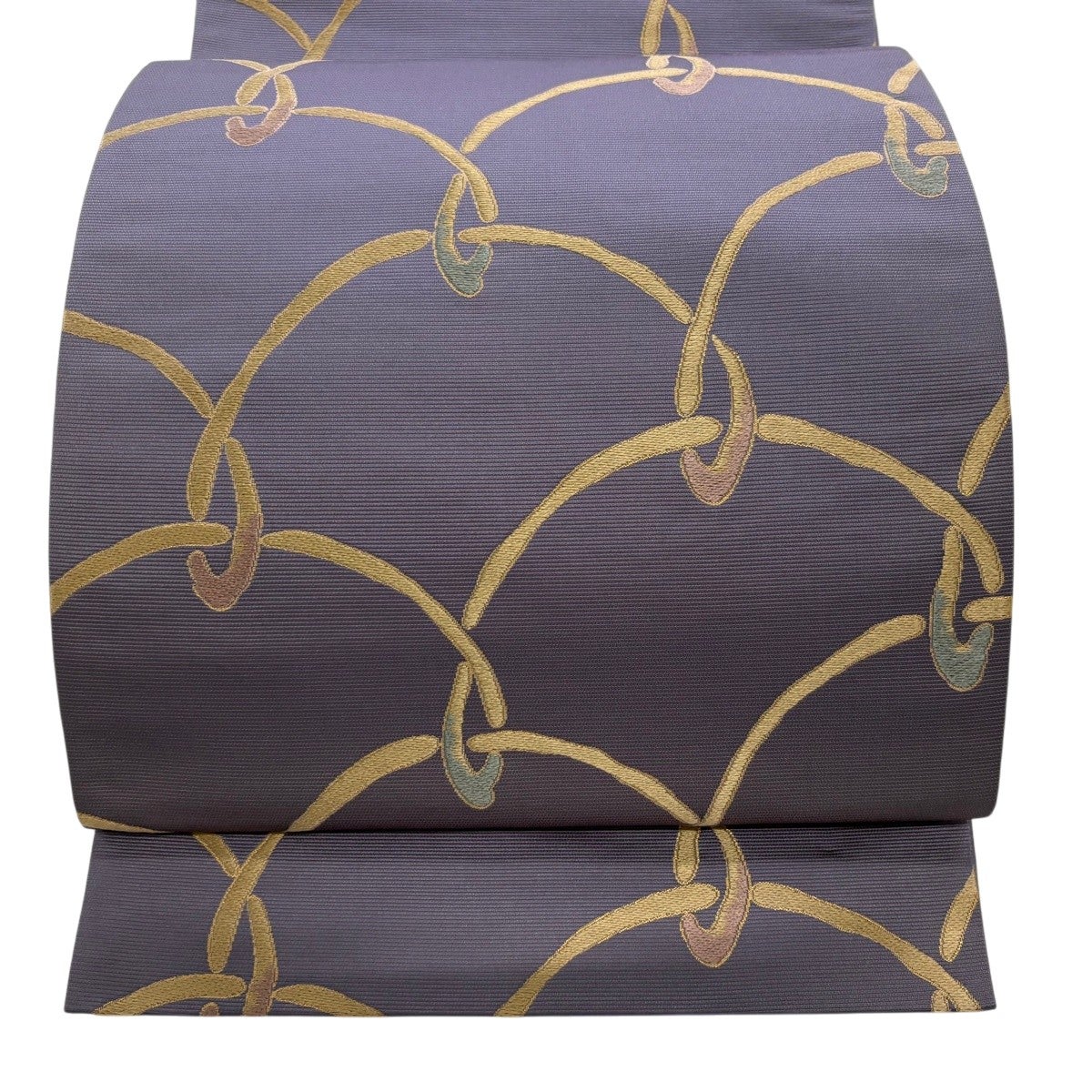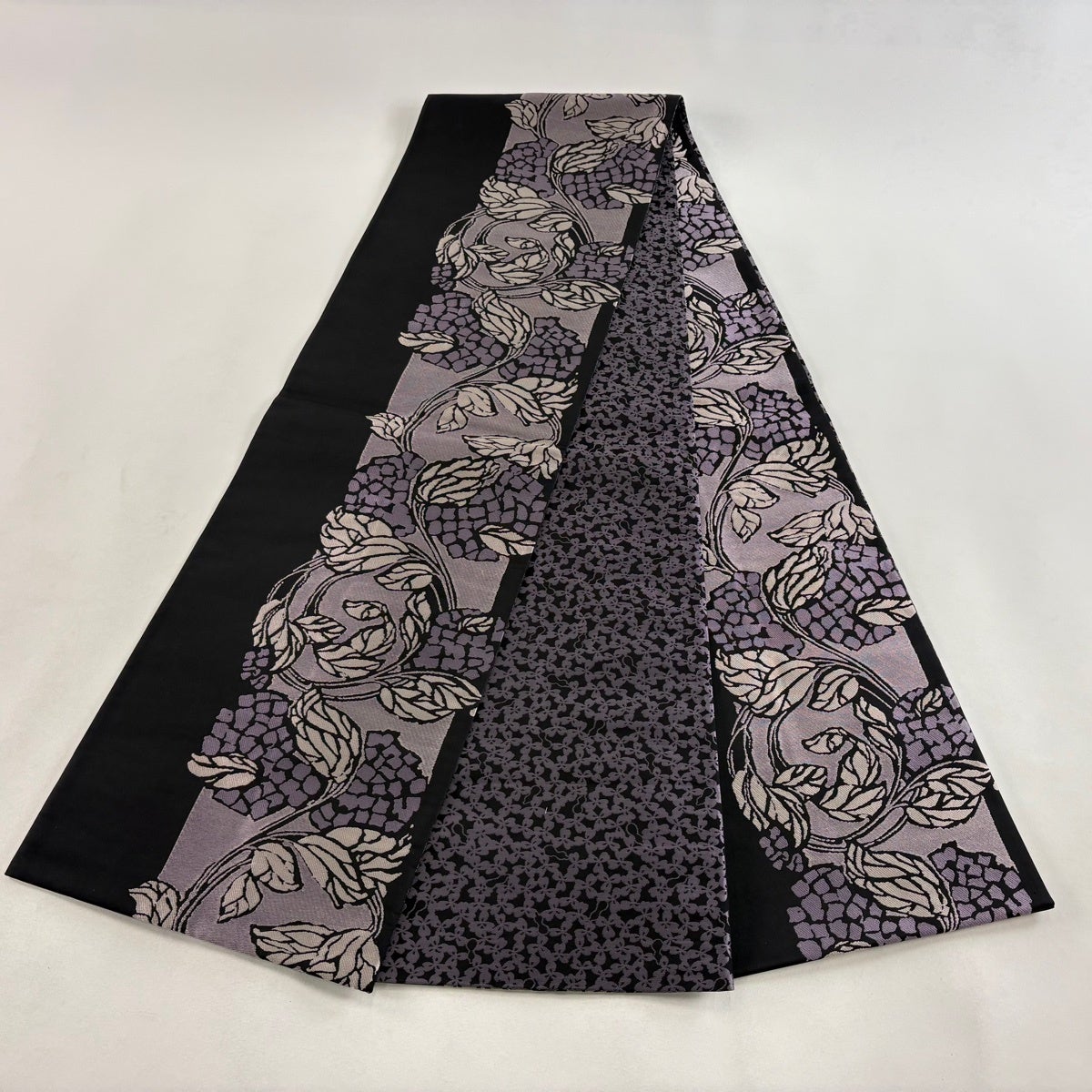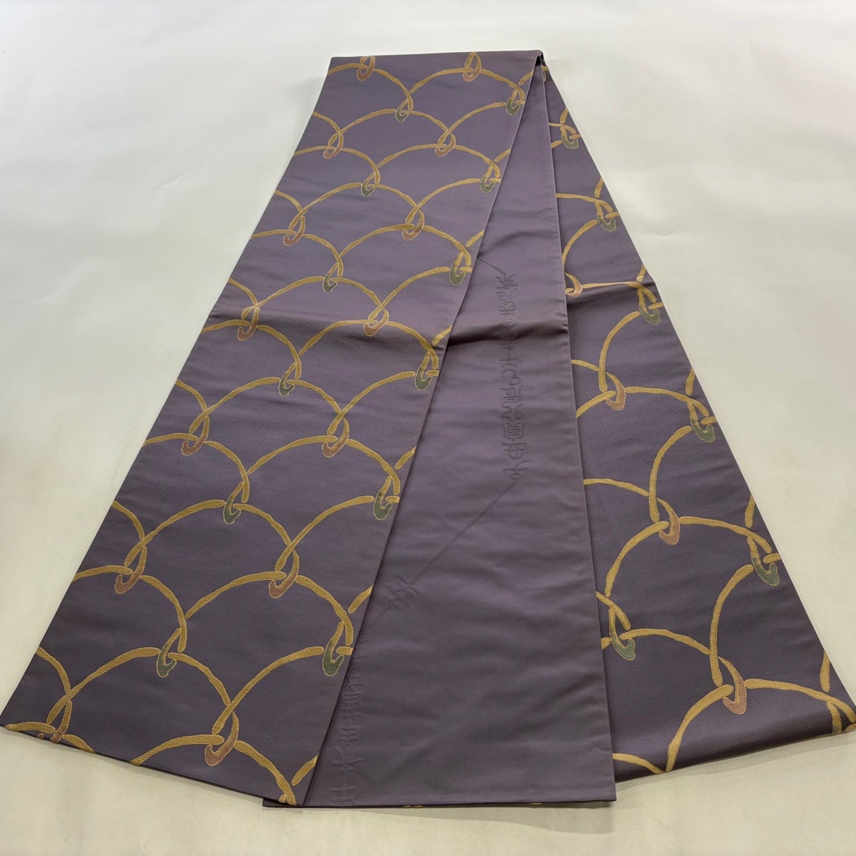 袋帯 秀品 紬地 ぼかし柄 灰紫 全通 正絹