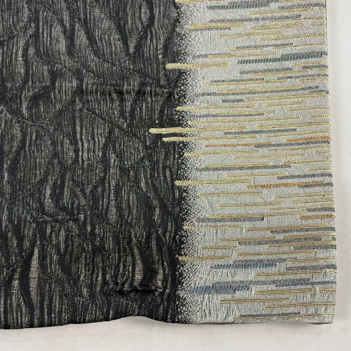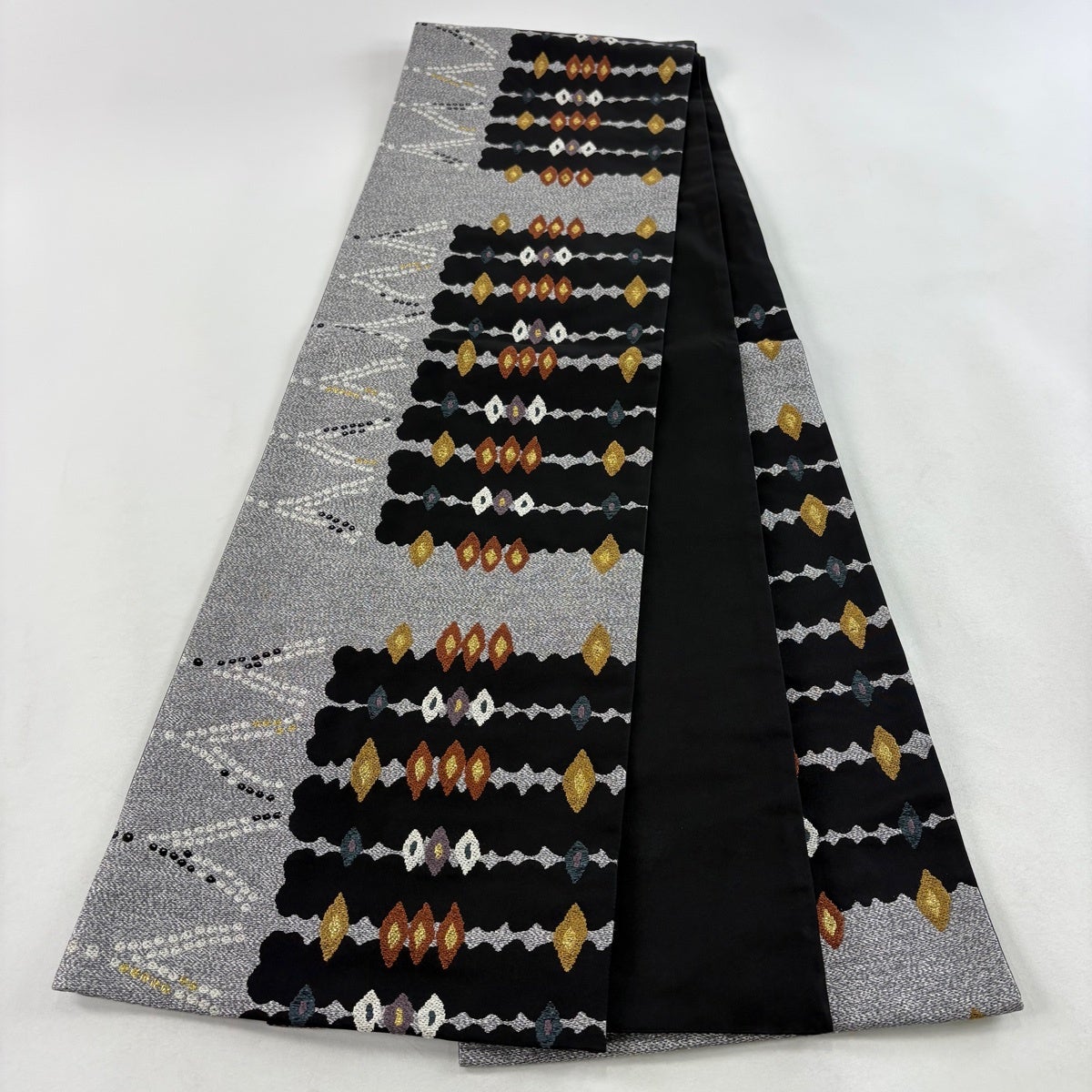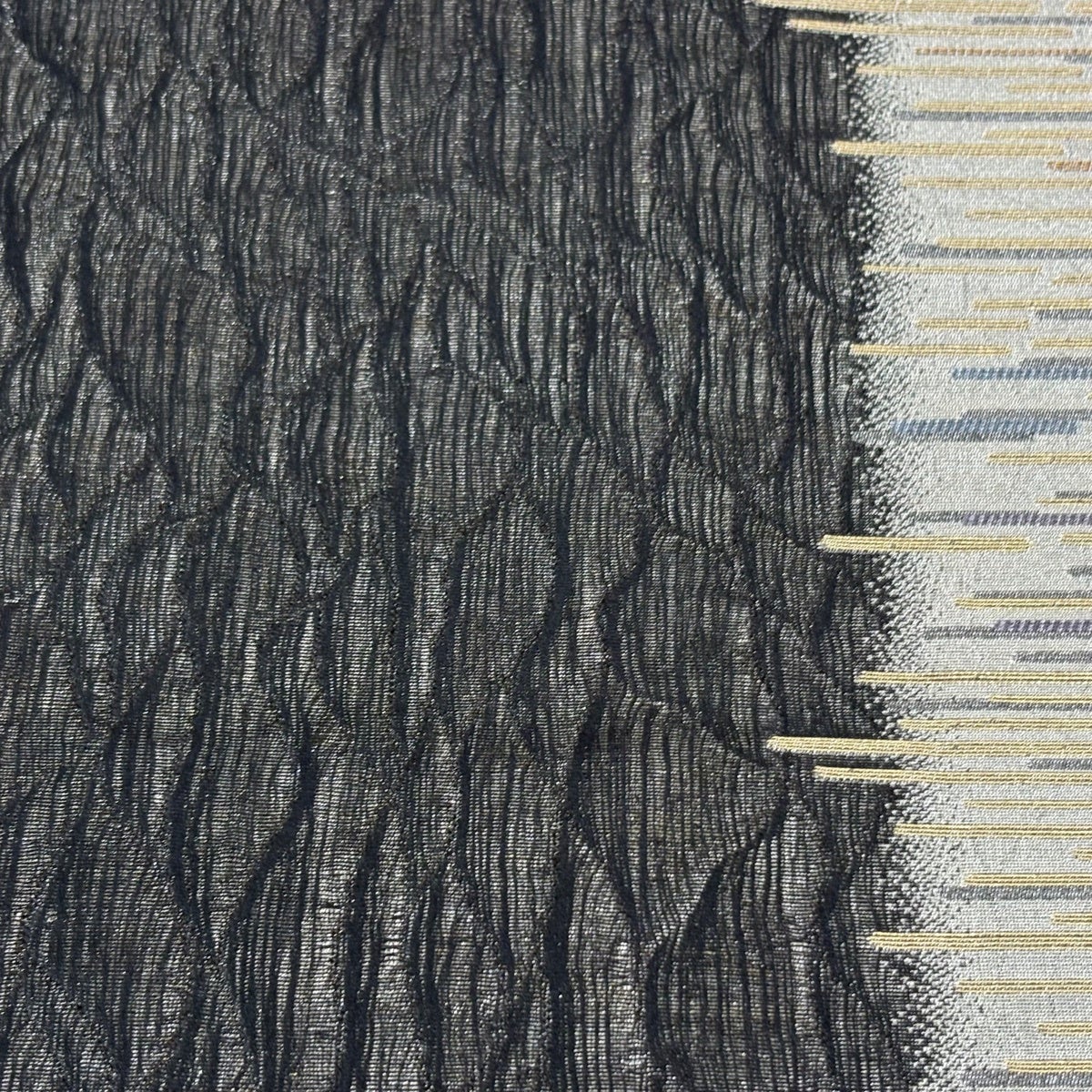 袋帯 秀品 幾何学 箔 銀糸 黒 六通 正絹