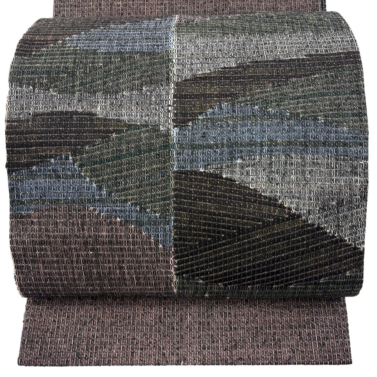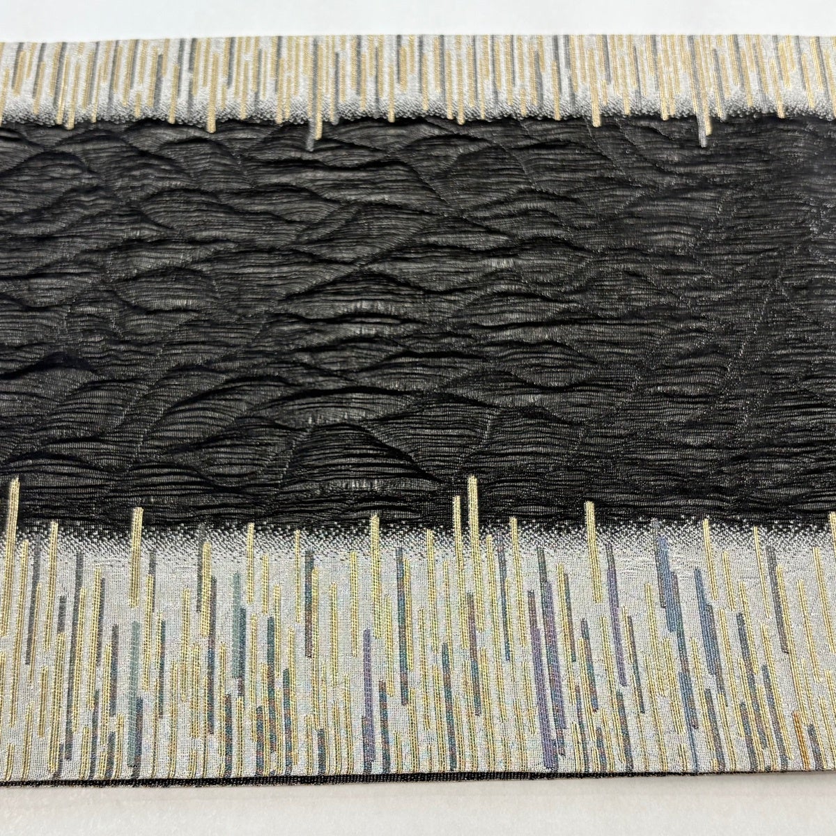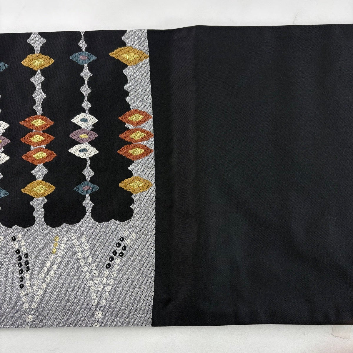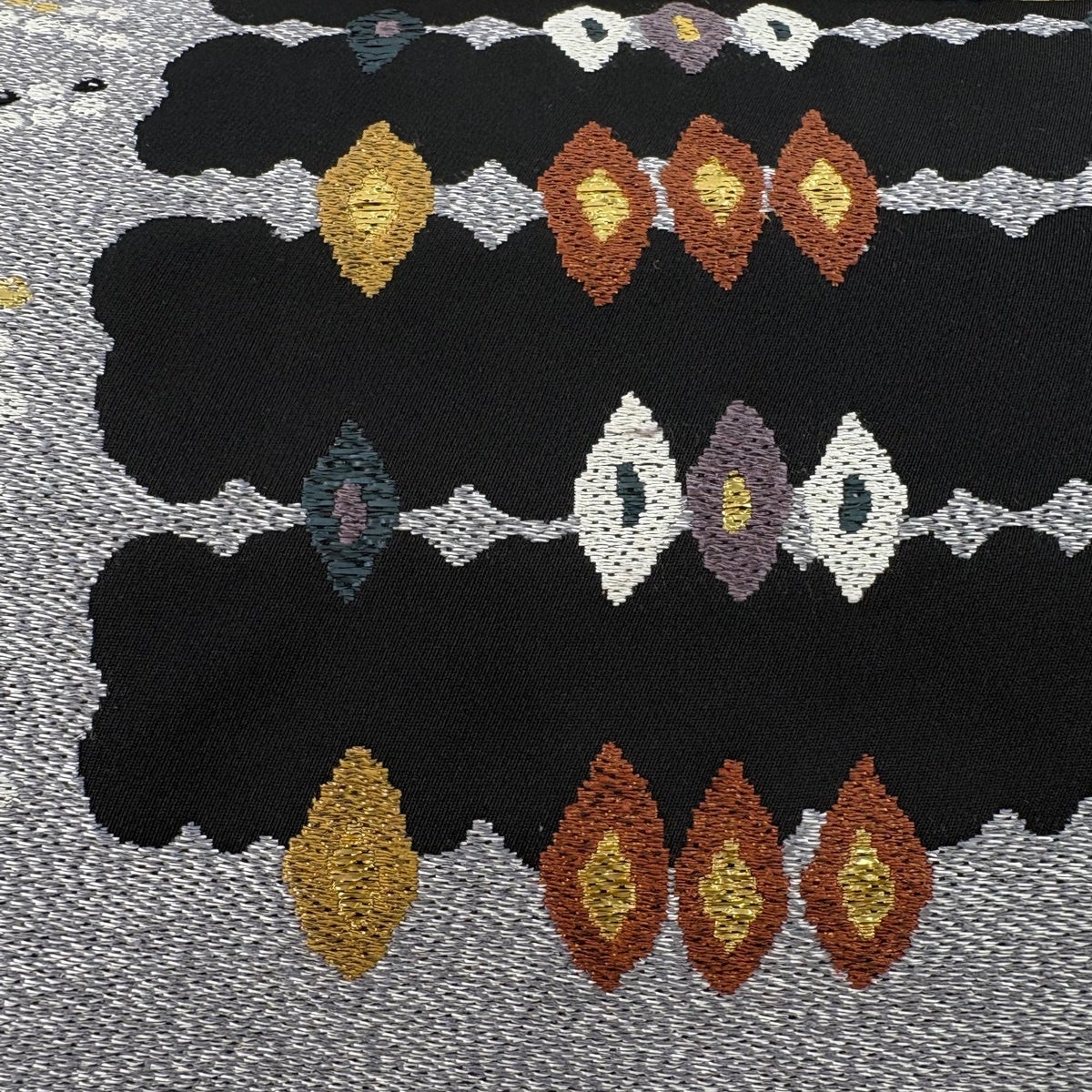 袋帯 秀品 幾何学 箔 銀糸 黒 六通 正絹