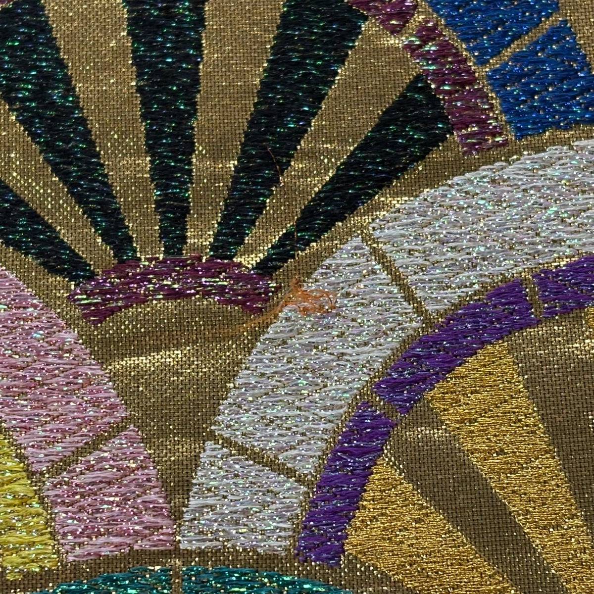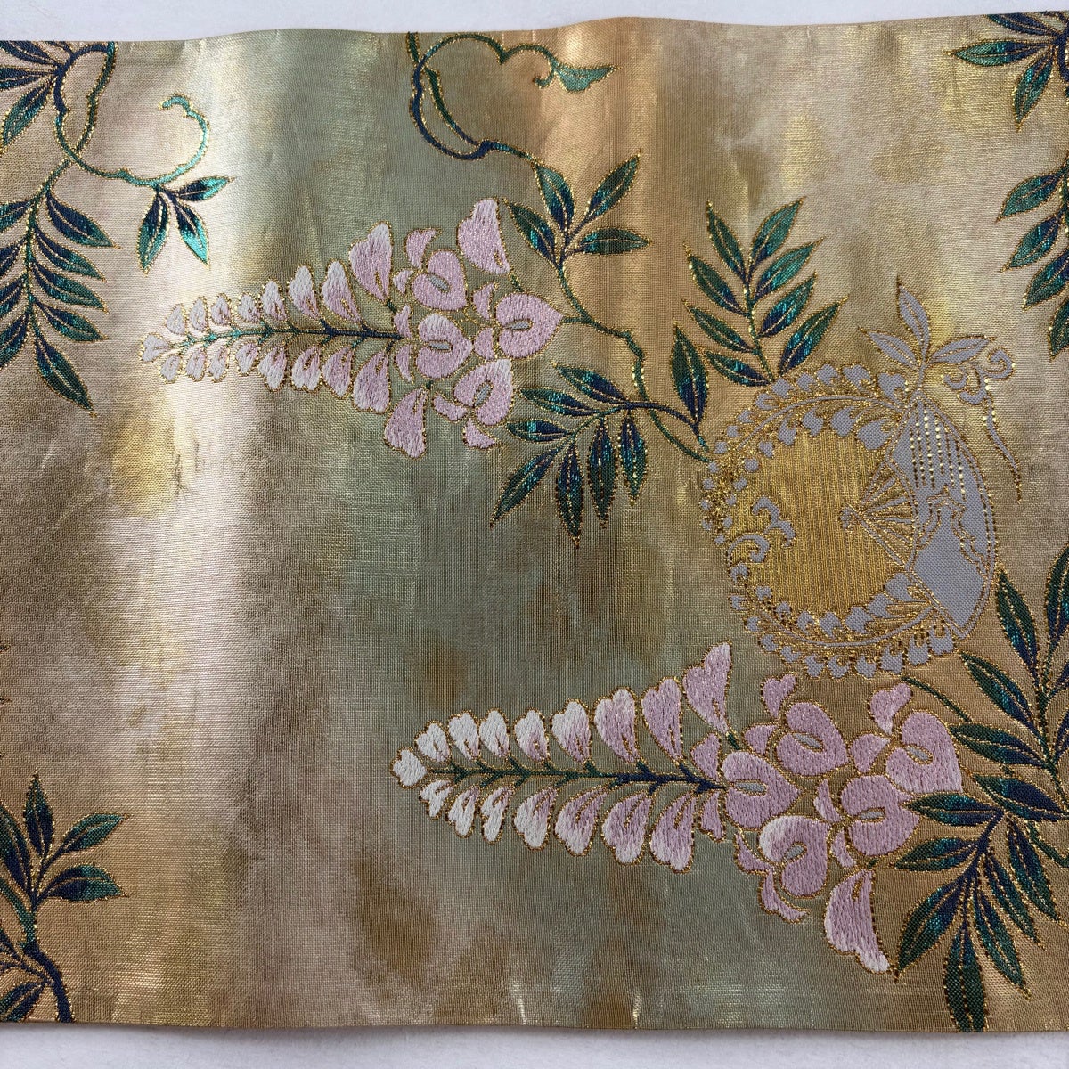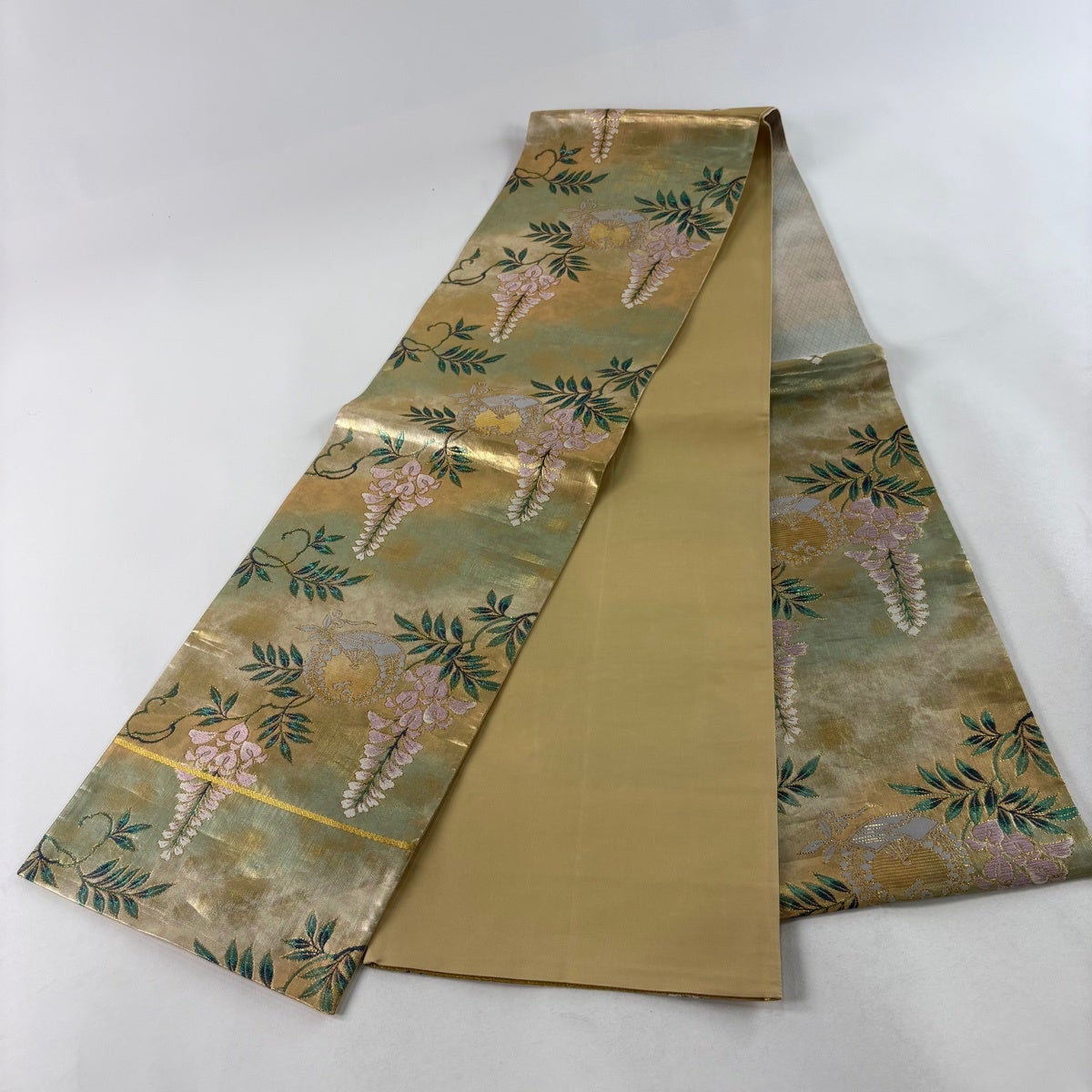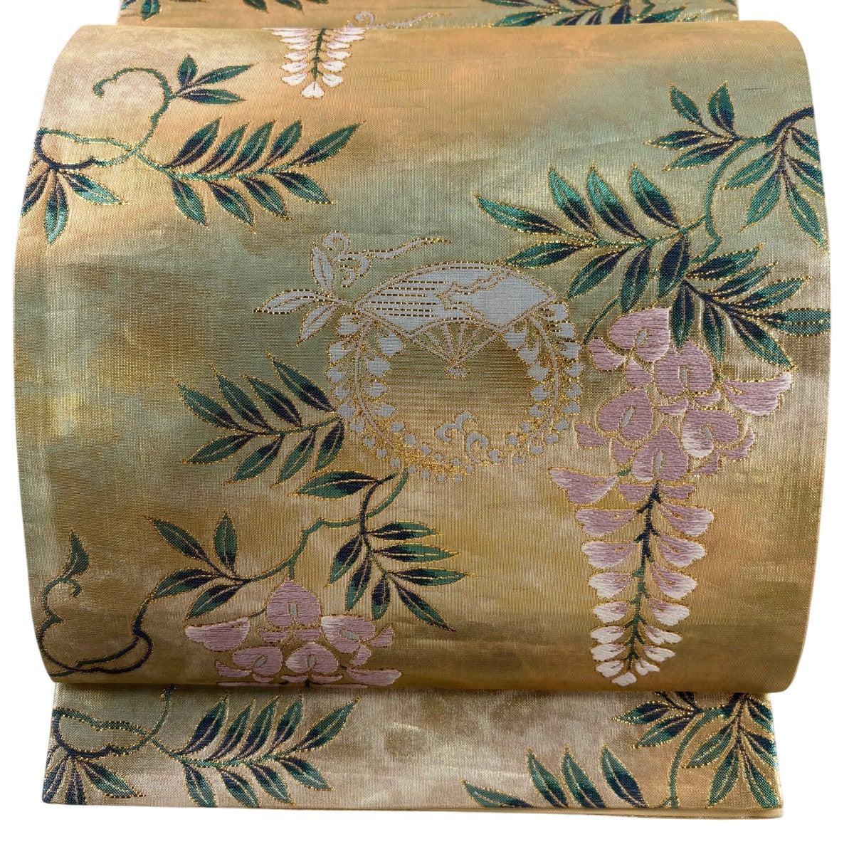 袋帯 秀品 扇 藤 金糸 箔 金色 六通 正絹