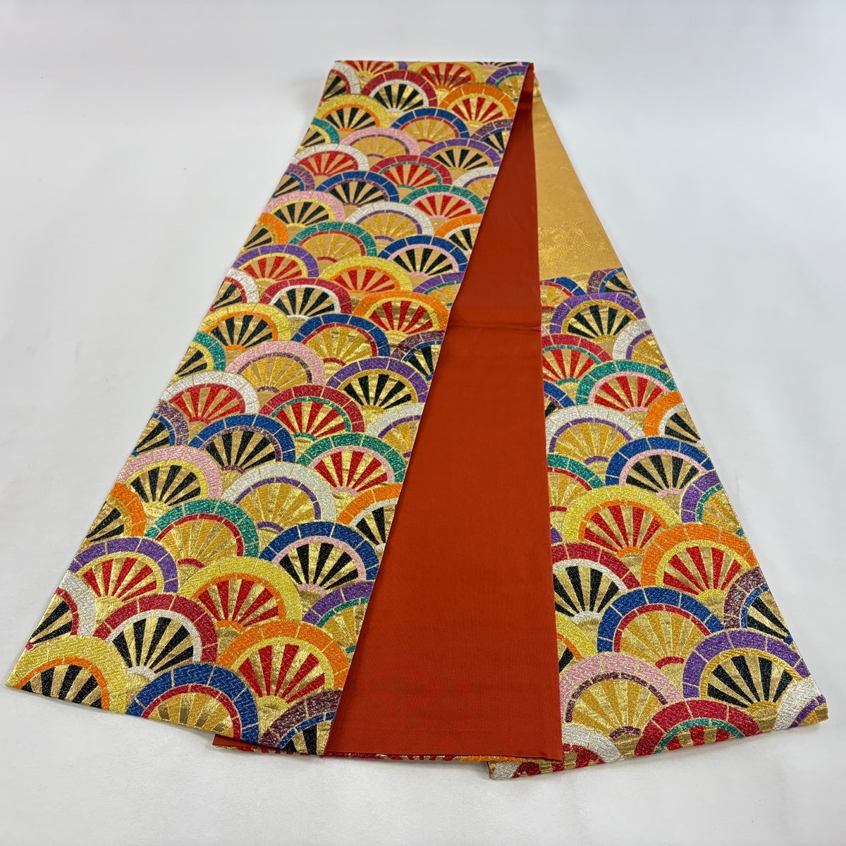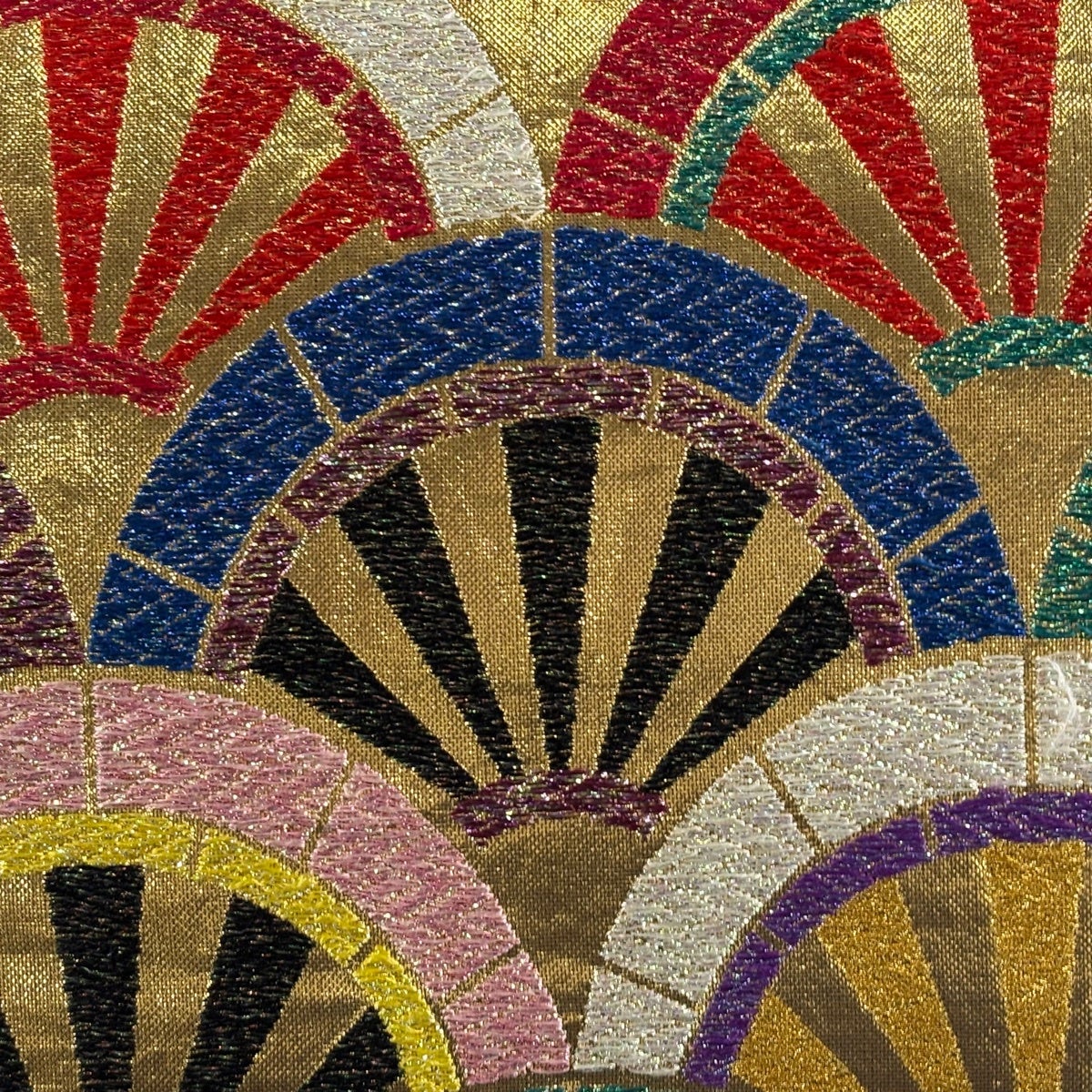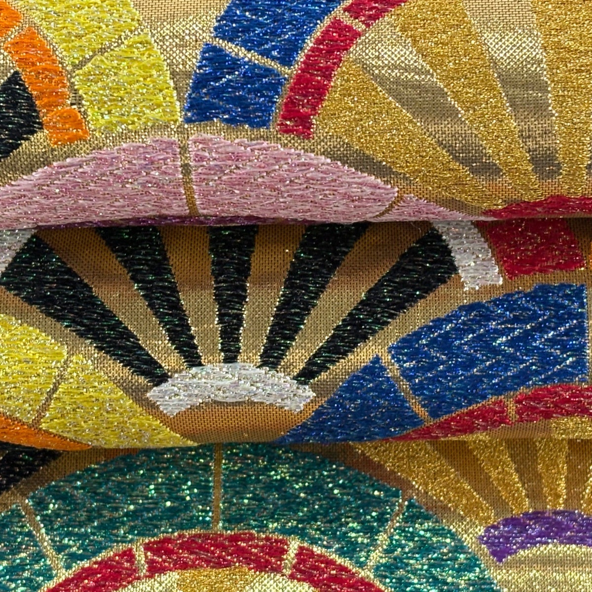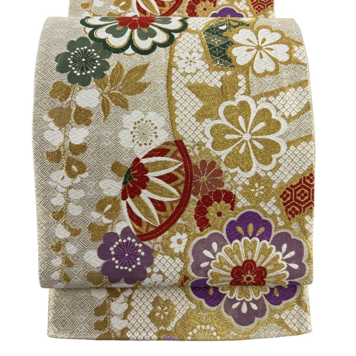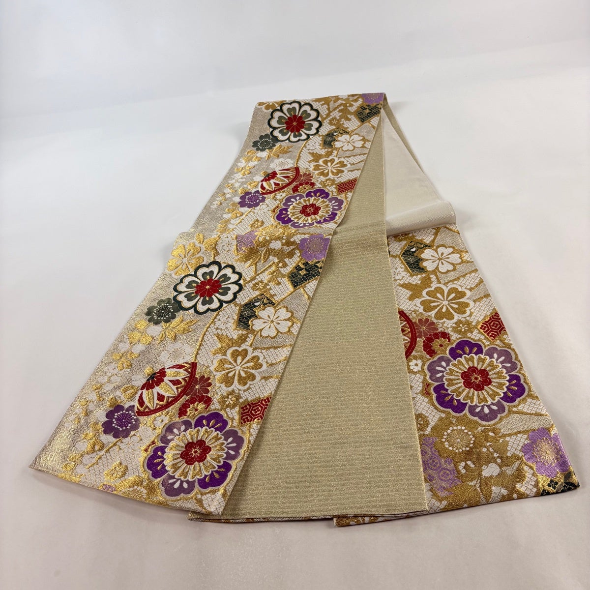 袋帯 秀品 扇 藤 金糸 箔 金色 六通 正絹