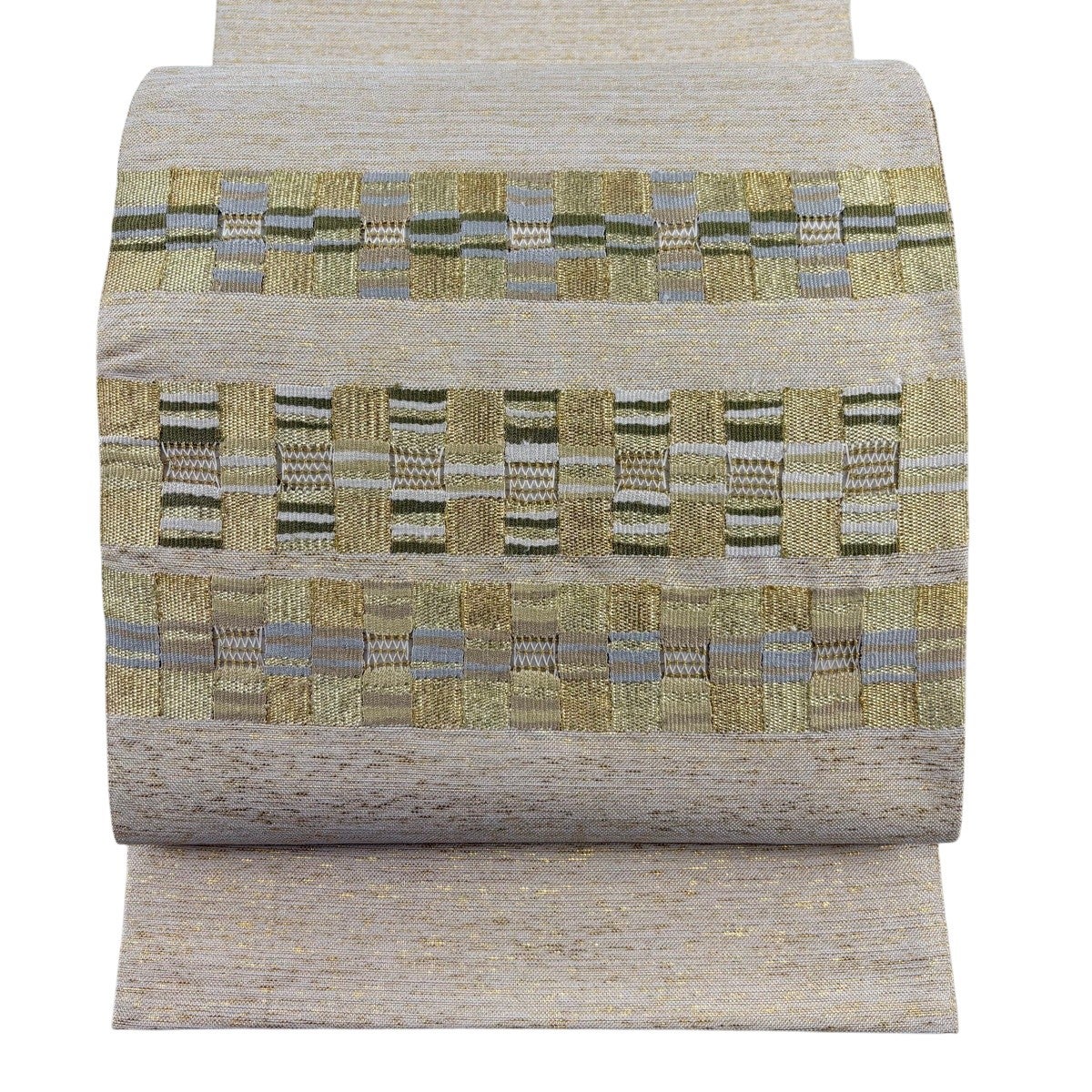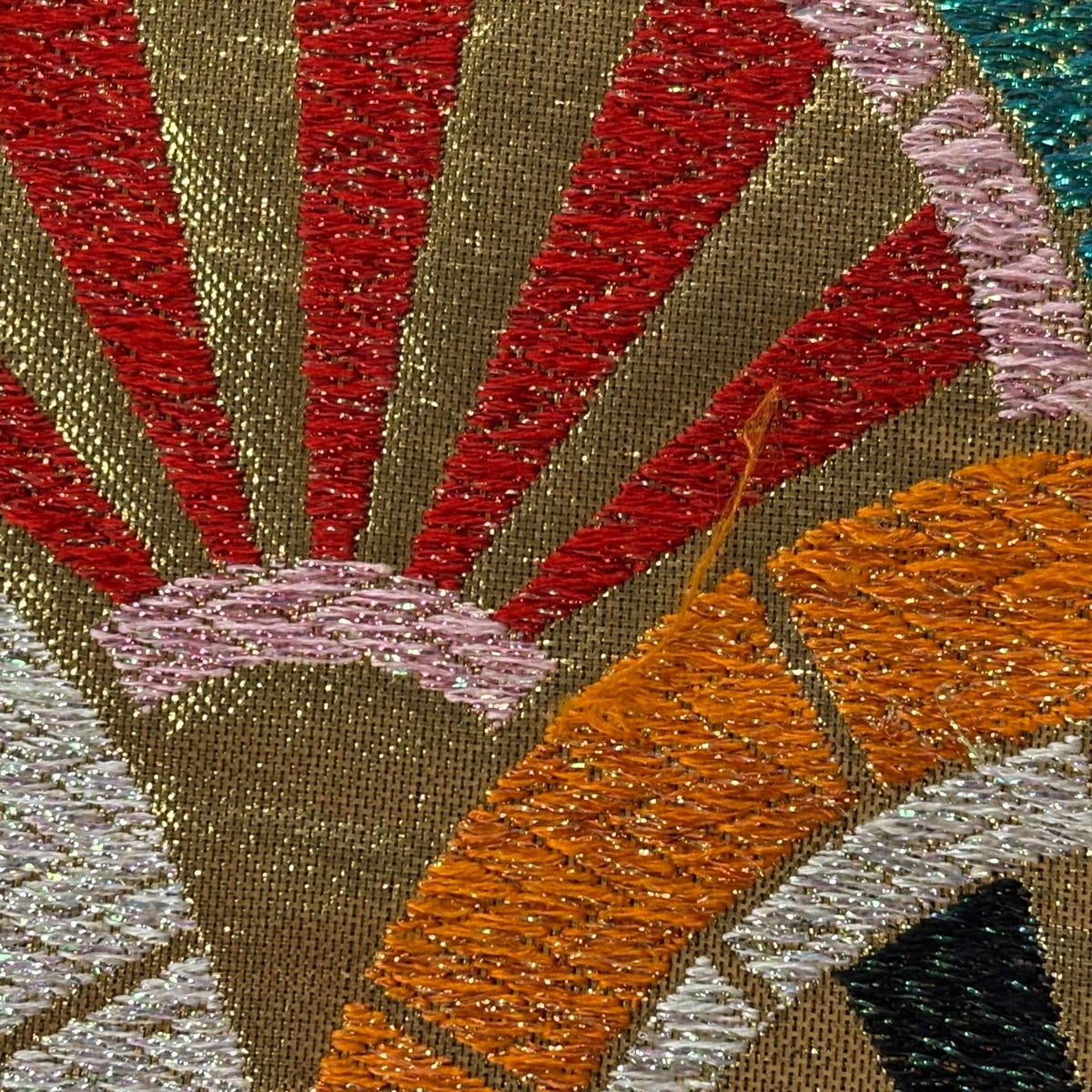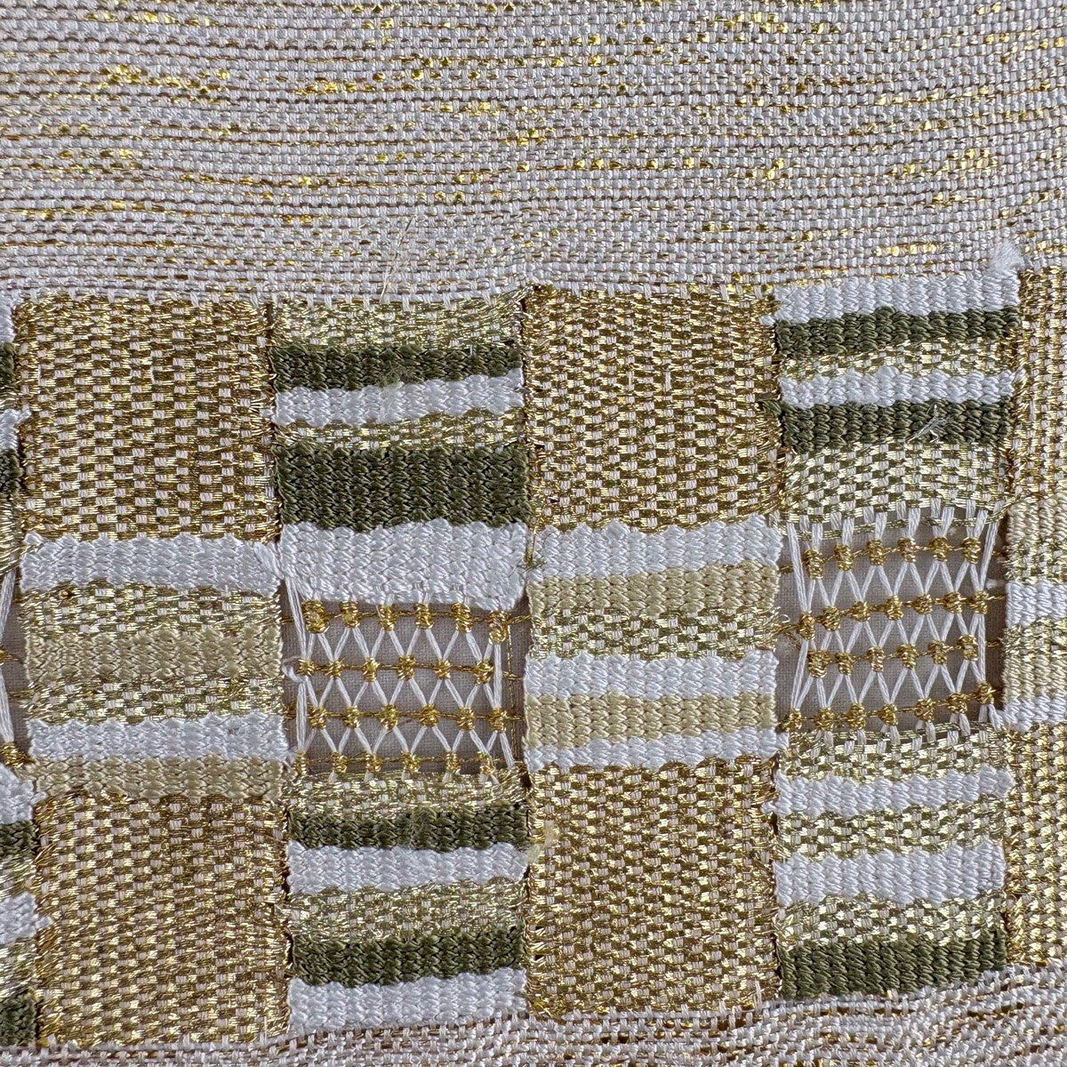 袋帯 秀品 幾何学 金糸 金色 お太鼓柄 正絹