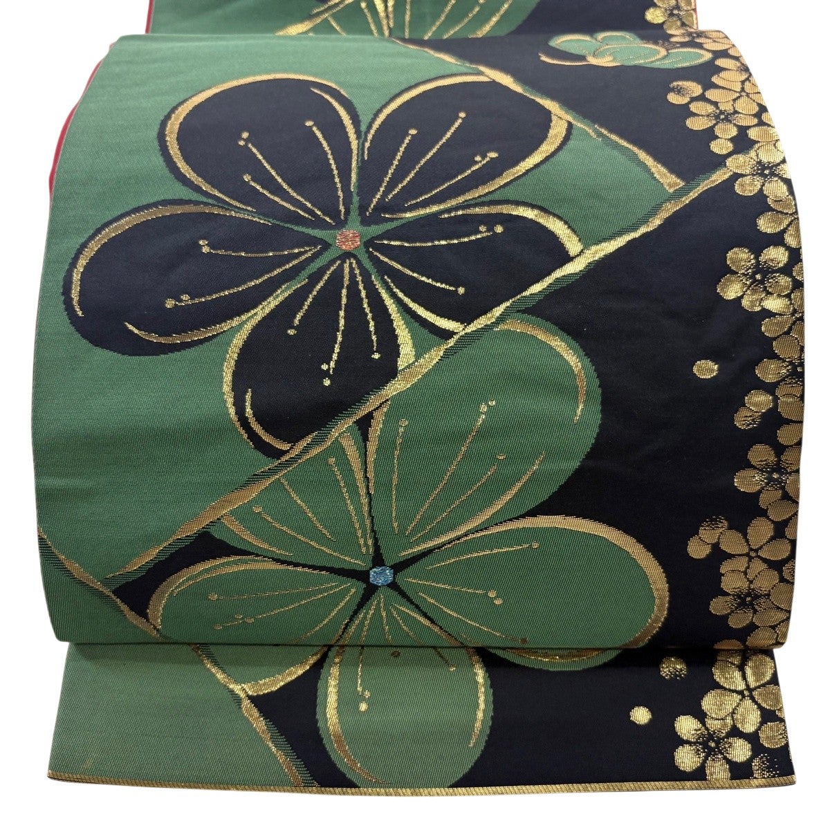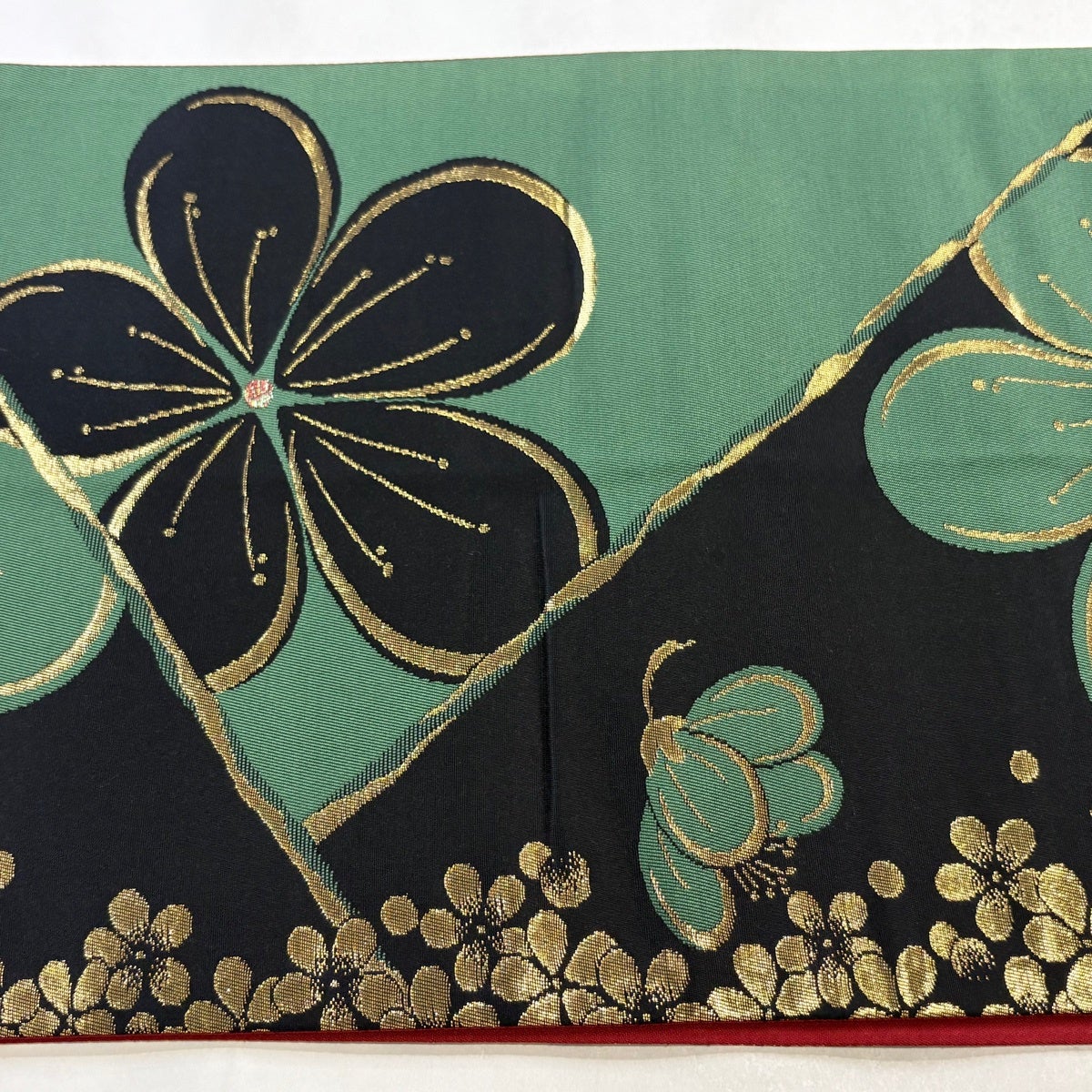 袋帯 秀品 中秋麗花文 箔 茜色 六通 正絹