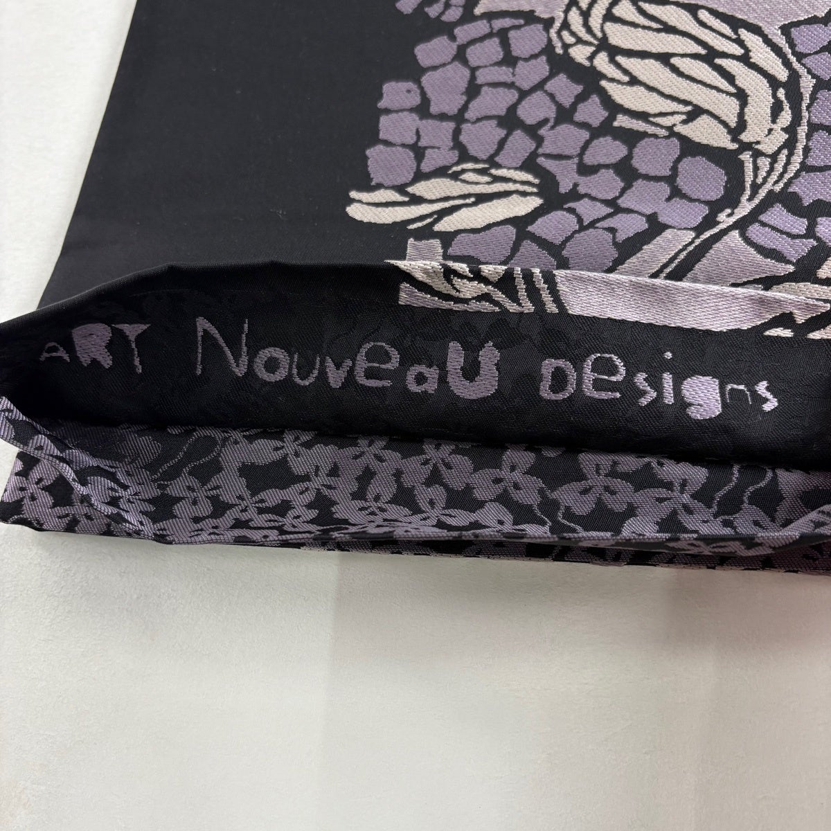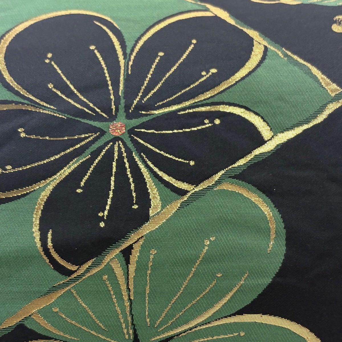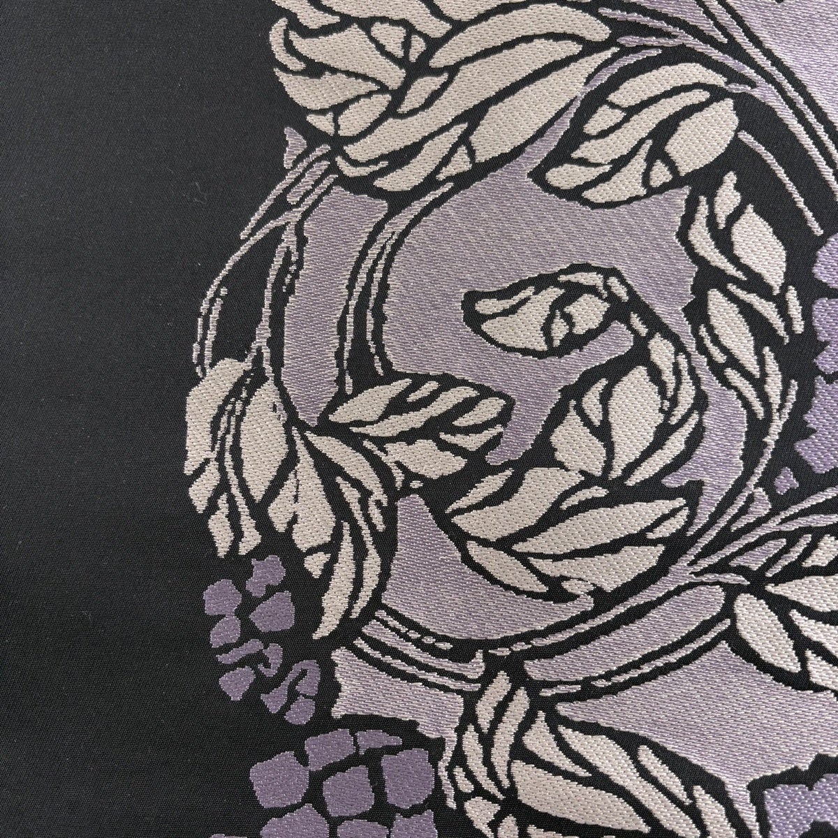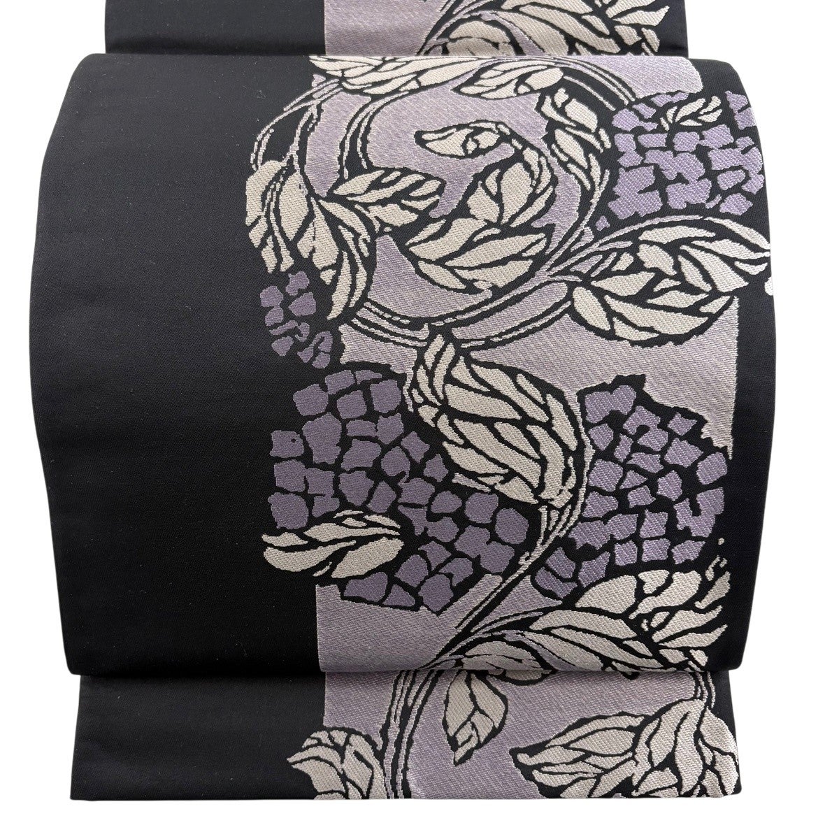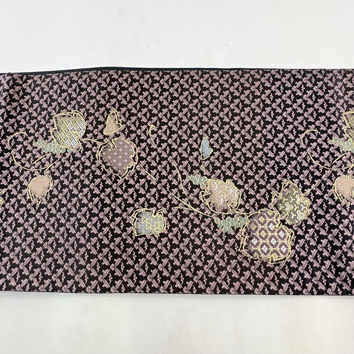 【美品】 袋帯 名品 花唐草 黒 全通 正絹