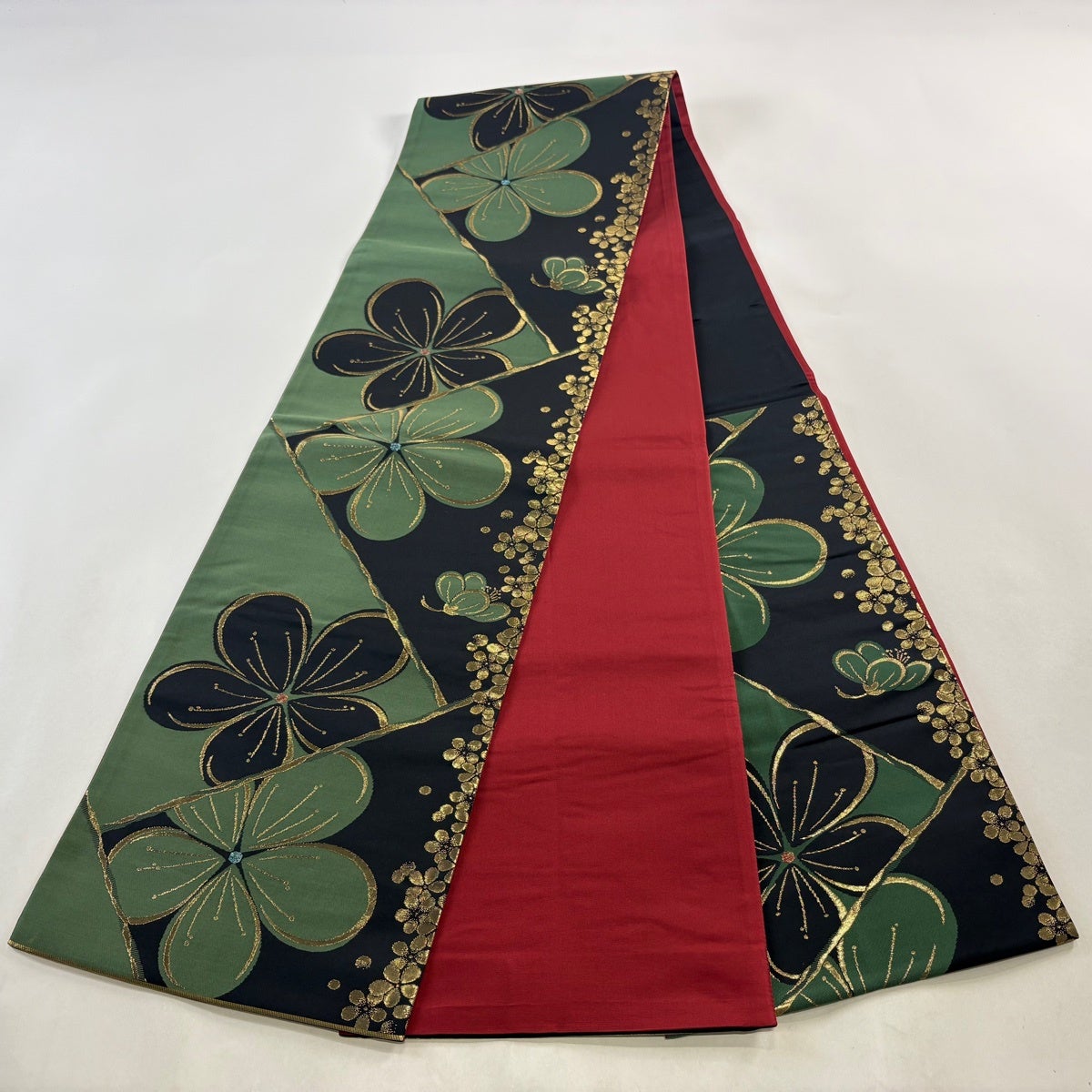 【美品】 袋帯 秀品 梅 箔 黒 六通 正絹
