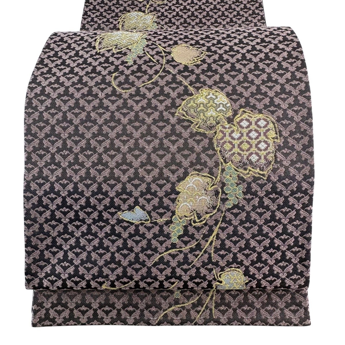 袋帯 秀品 草花 金糸 箔 灰紫 六通 正絹