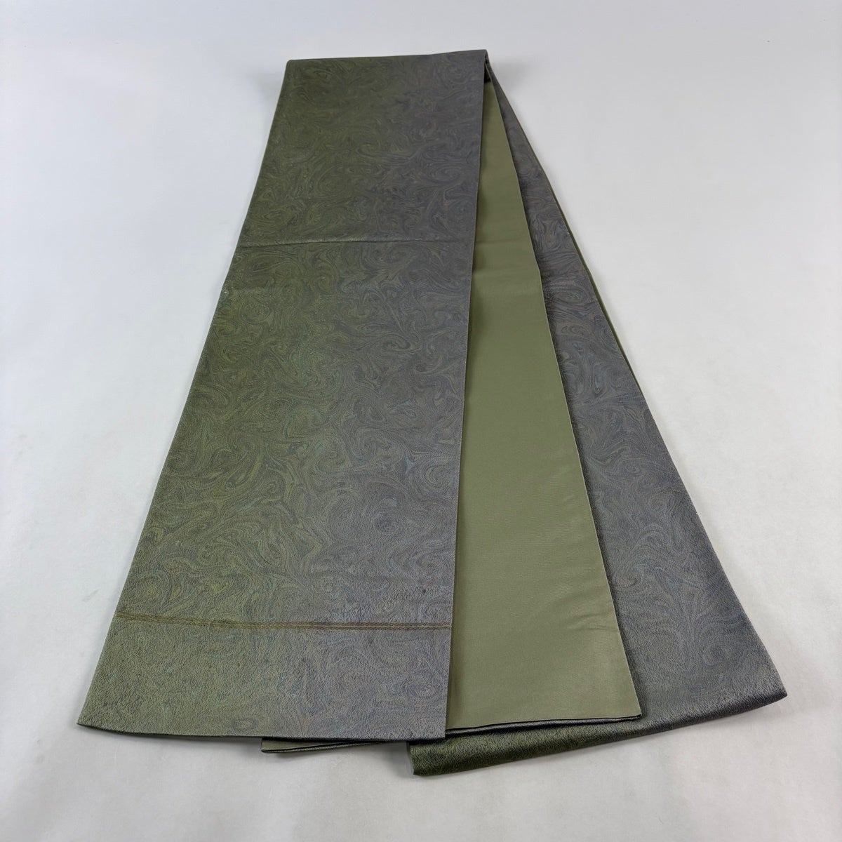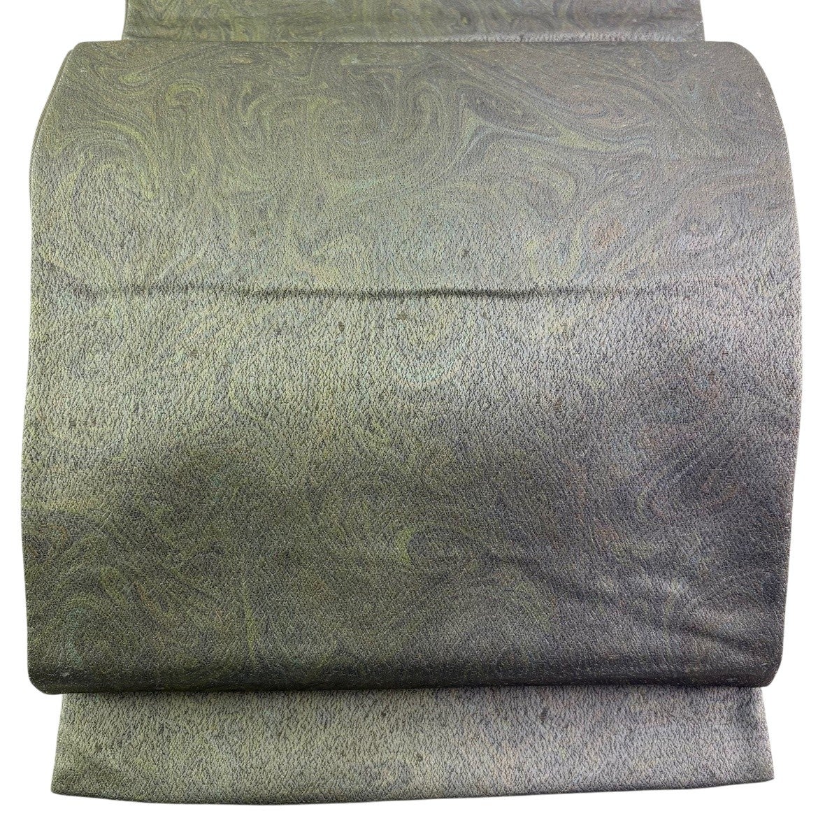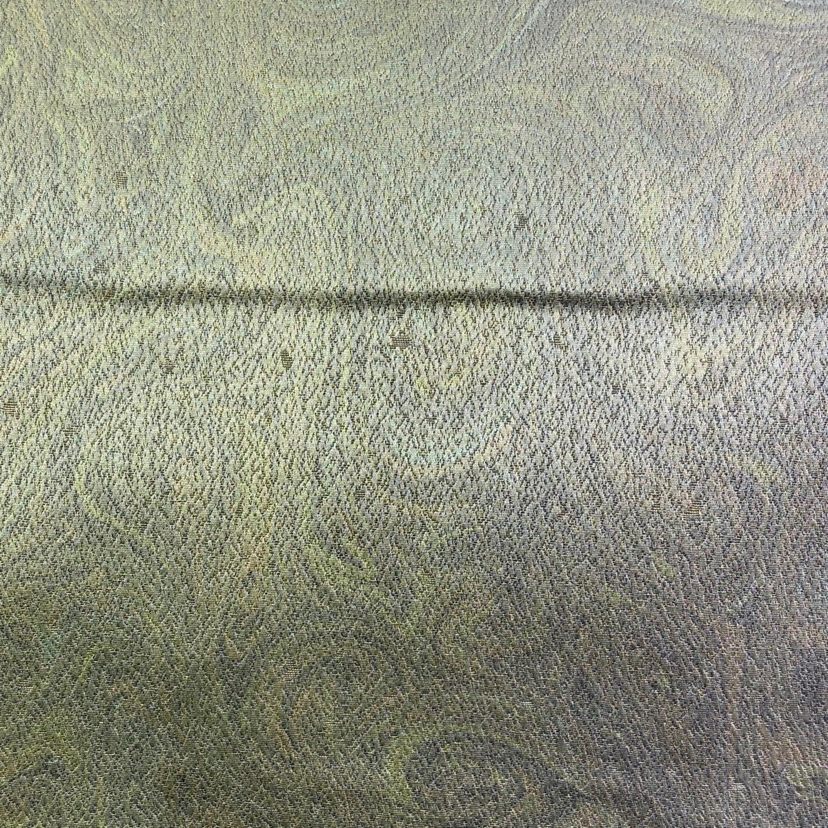 袋帯 名品 墨流し柄 銀糸 灰緑 全通 正絹