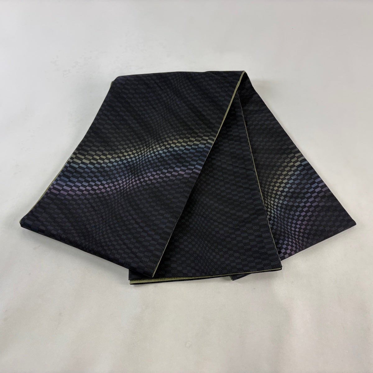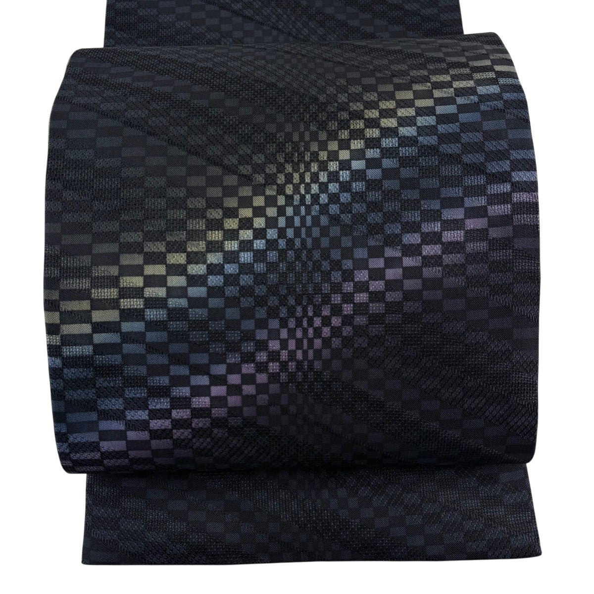 袋帯 名品 変わり市松 墨色 お太鼓柄 正絹