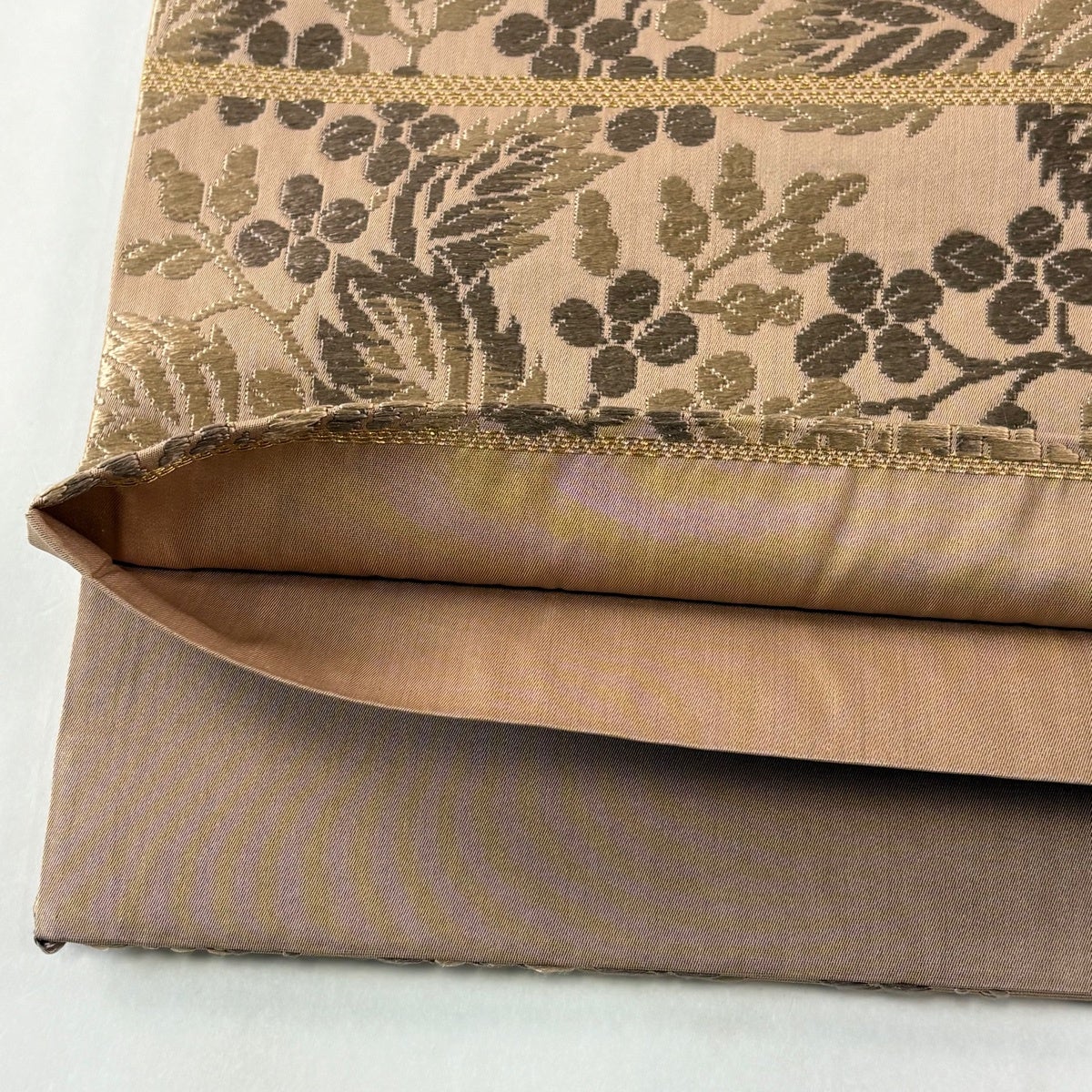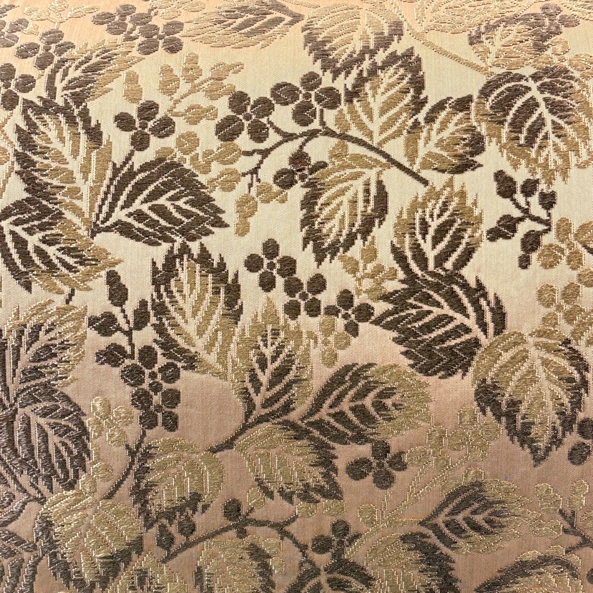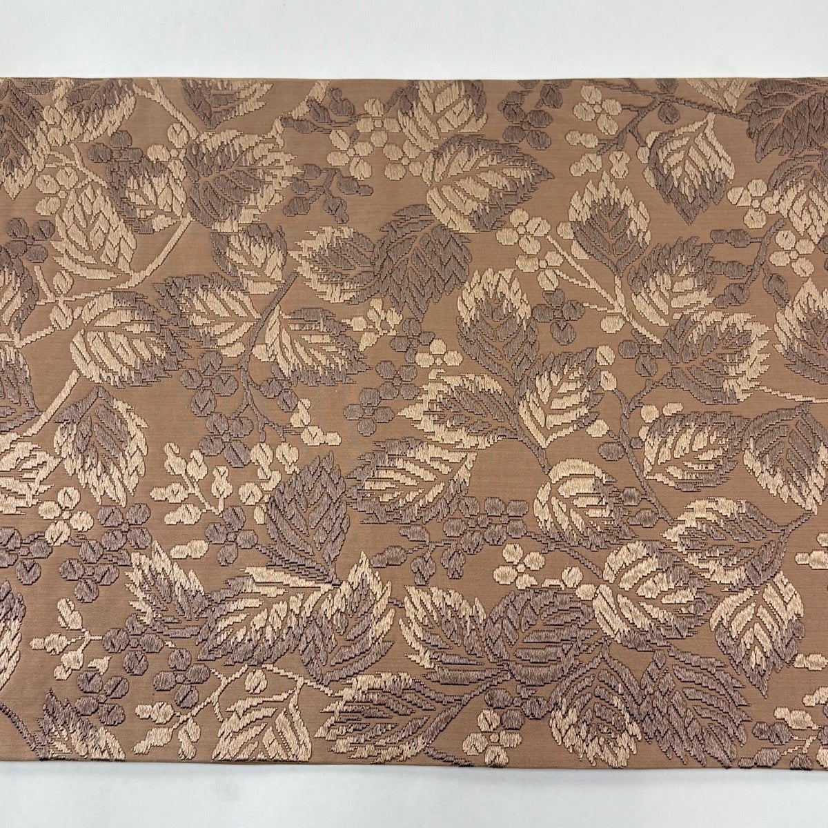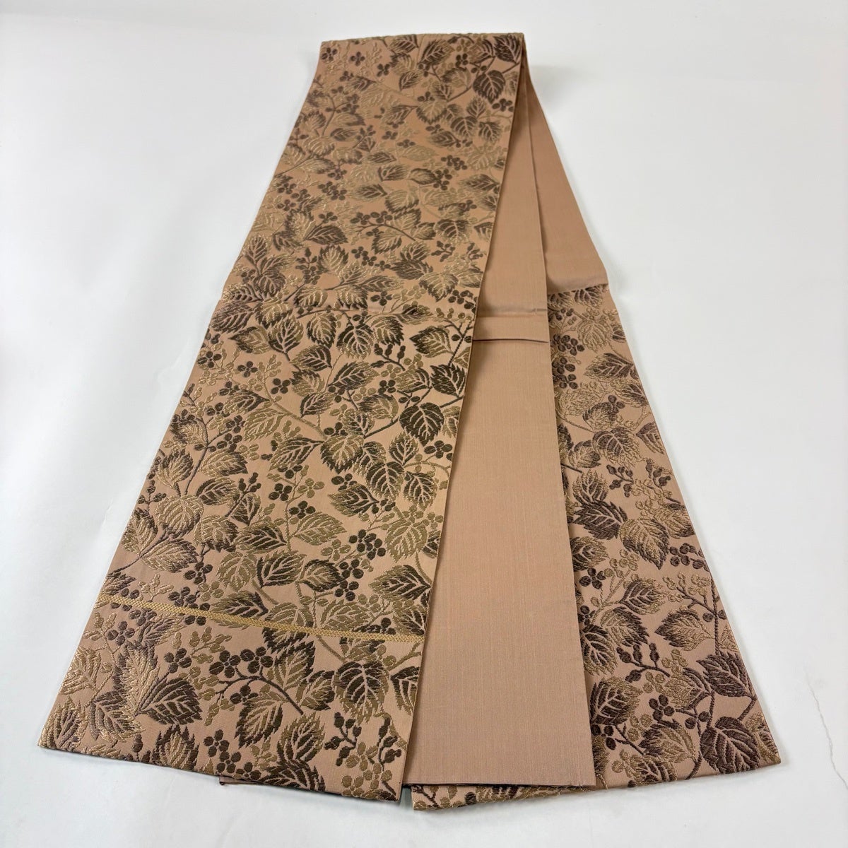 袋帯 秀品 葉と実 唐織 薄茶色 六通 正絹