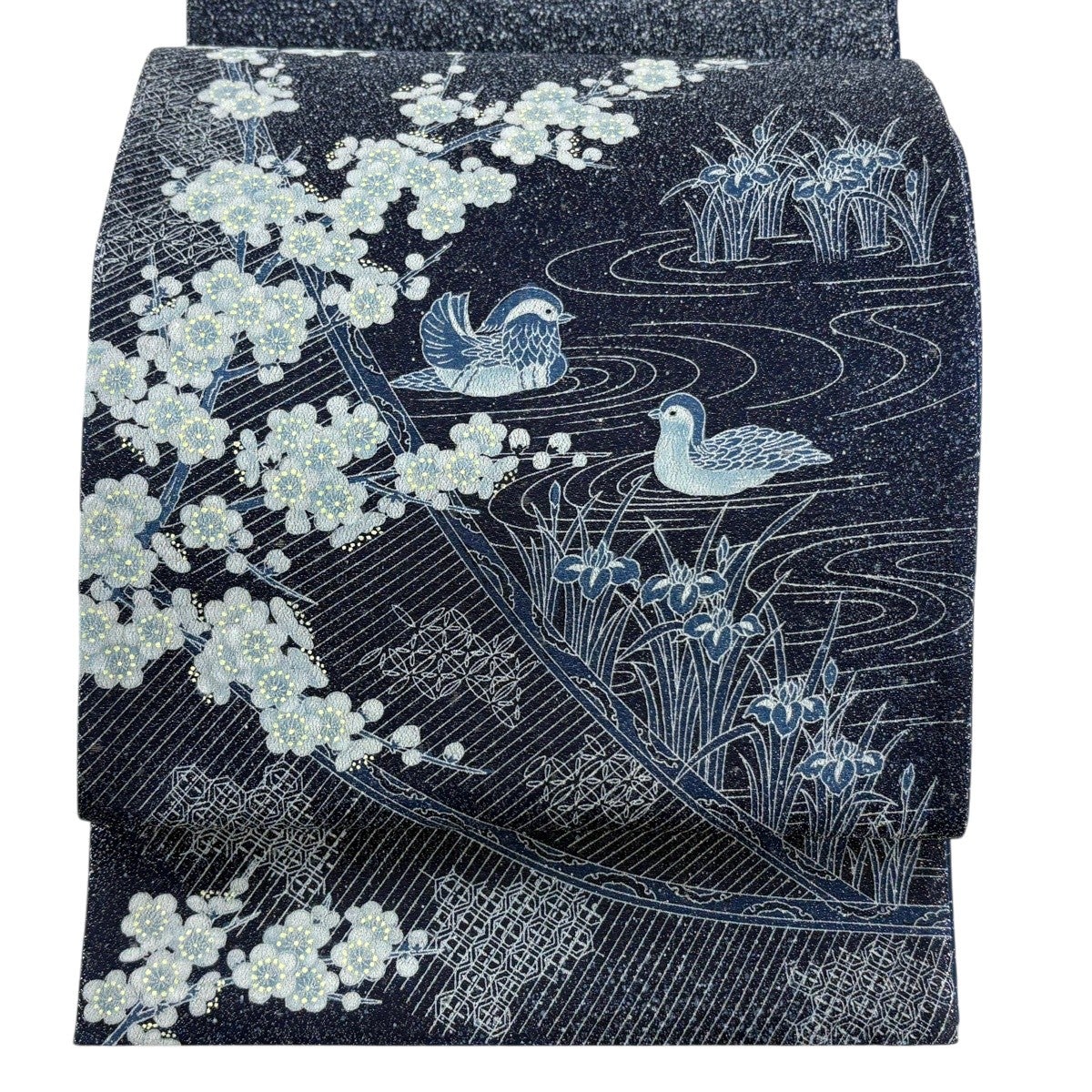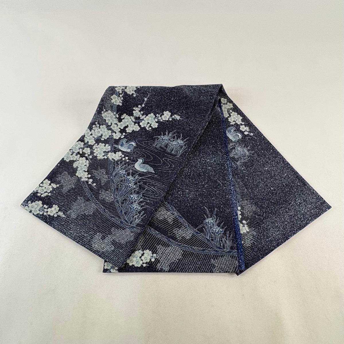 反物 秀品 付下げ 草花 霞 ぼかし 金彩 紺色 正絹
