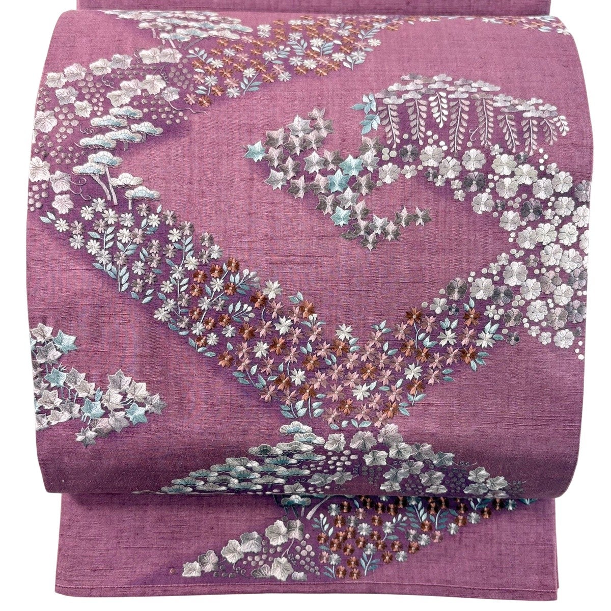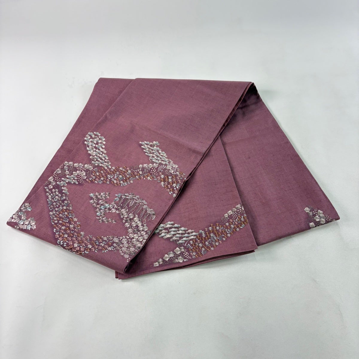 反物 秀品 付下げ 草花 羽 金銀彩 青紫 正絹