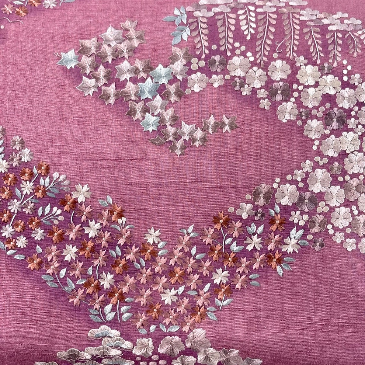 反物 秀品 付下げ 菊 金銀彩 ピンク 正絹