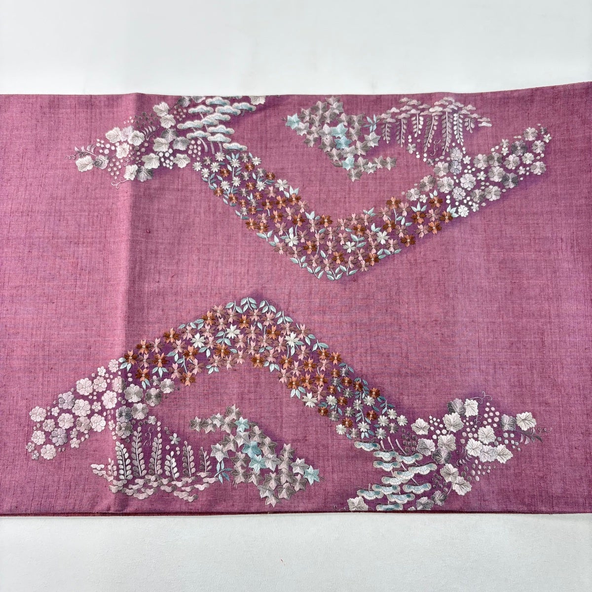 反物 秀品 付下げ 菊 刺繍 ベージュ 正絹
