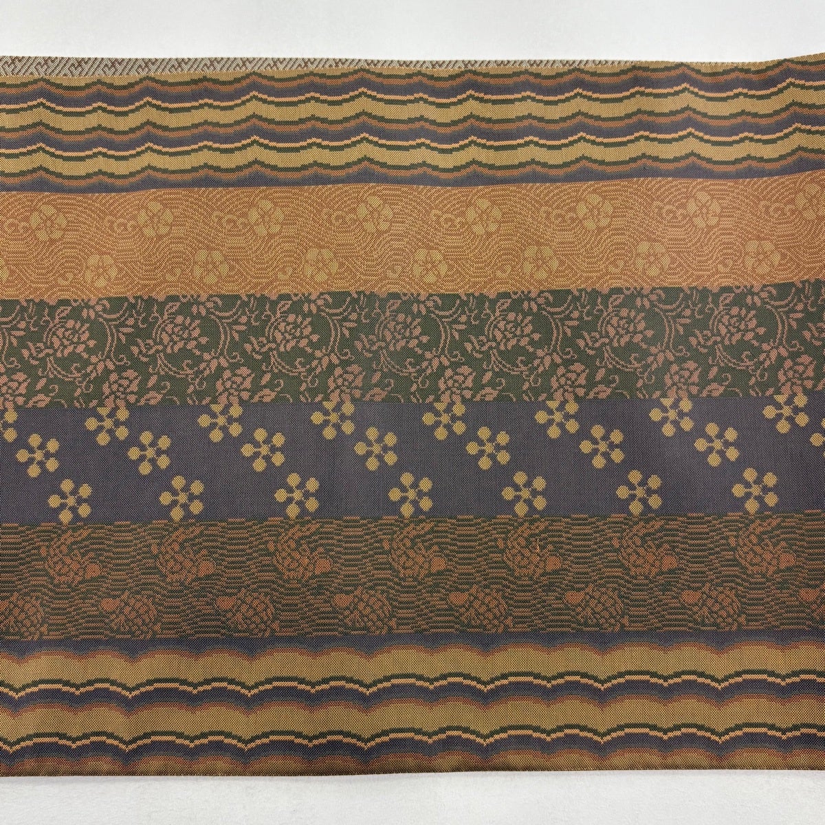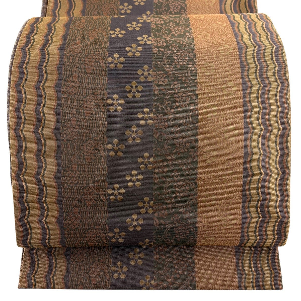 【美品】 袋帯 秀品 縞 金糸 灰茶 お太鼓柄 正絹