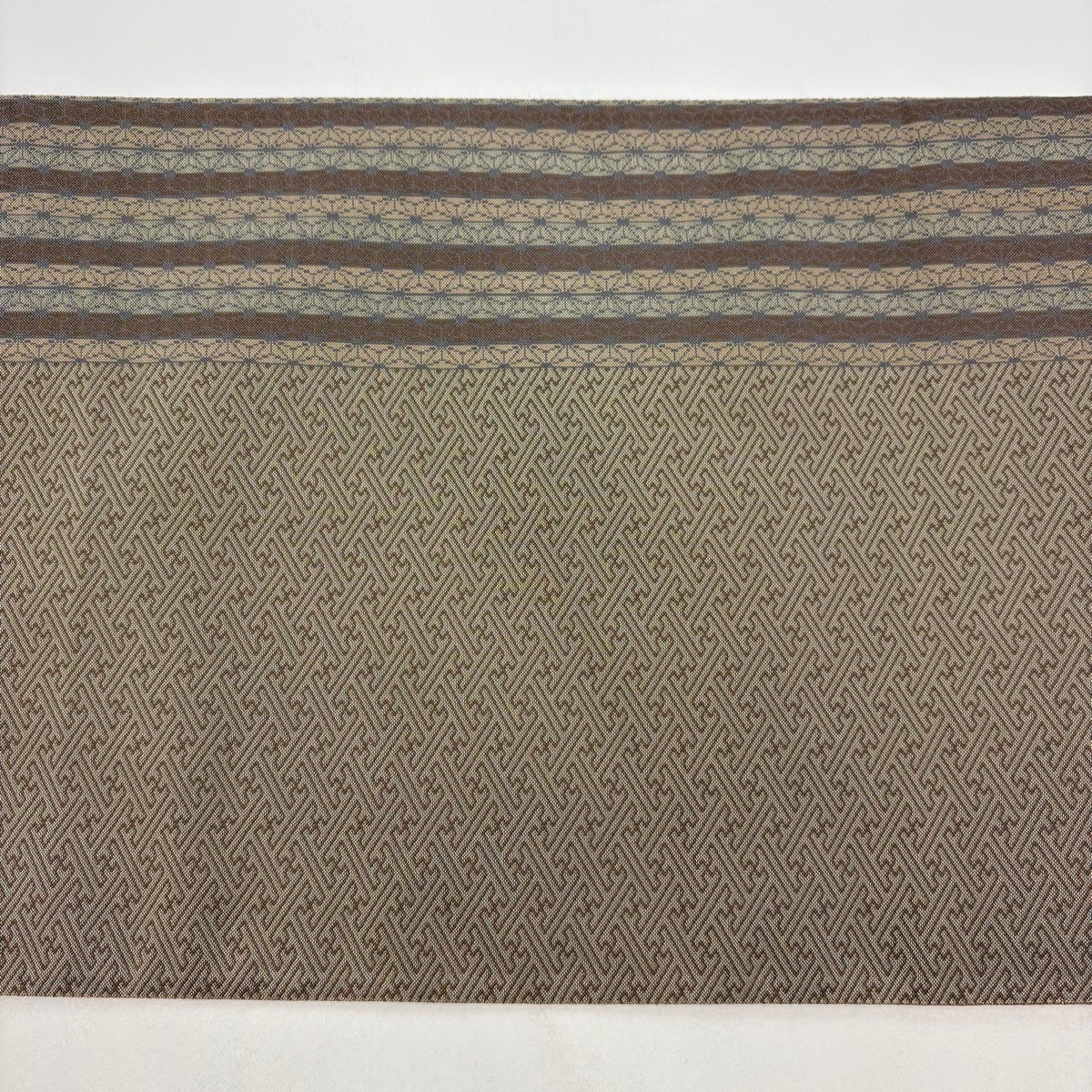 【美品】 袋帯 名品 西洋格子裂文 茶色 六通 正絹