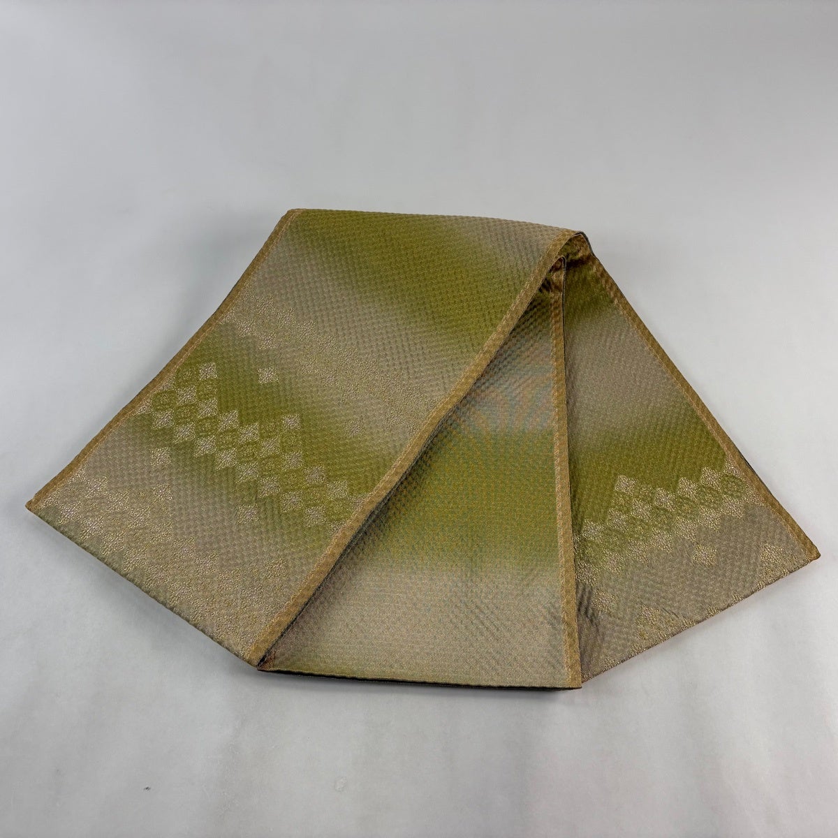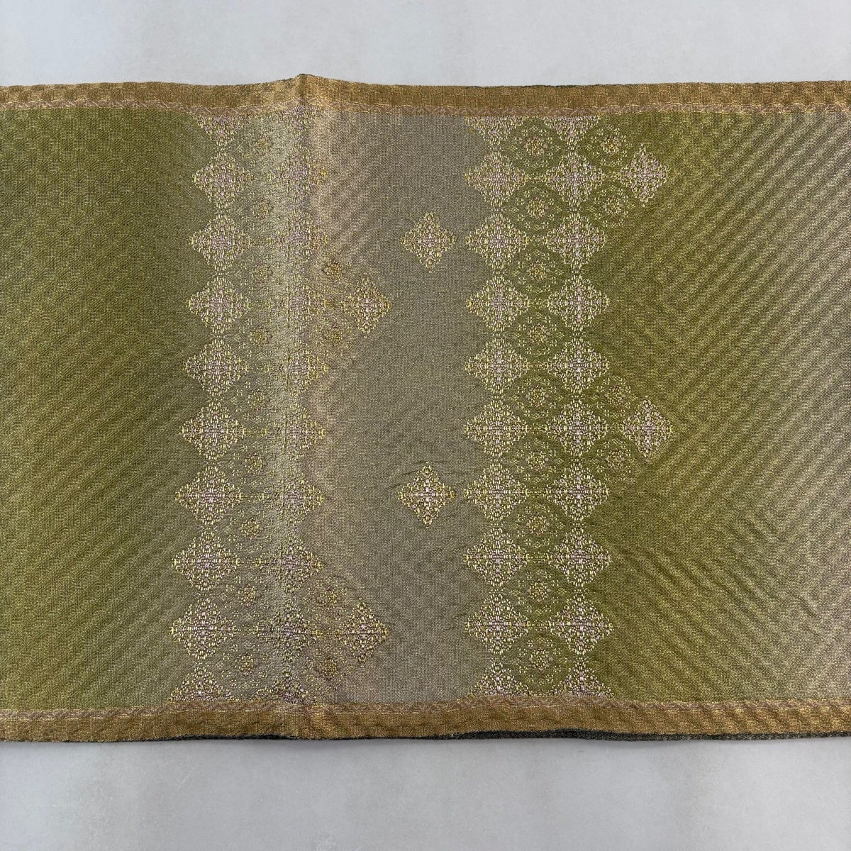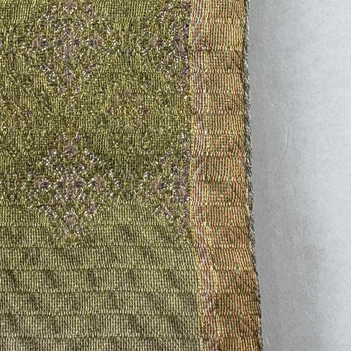 【美品】 袋帯 名品 夏帯 花唐草 灰緑 六通 正絹