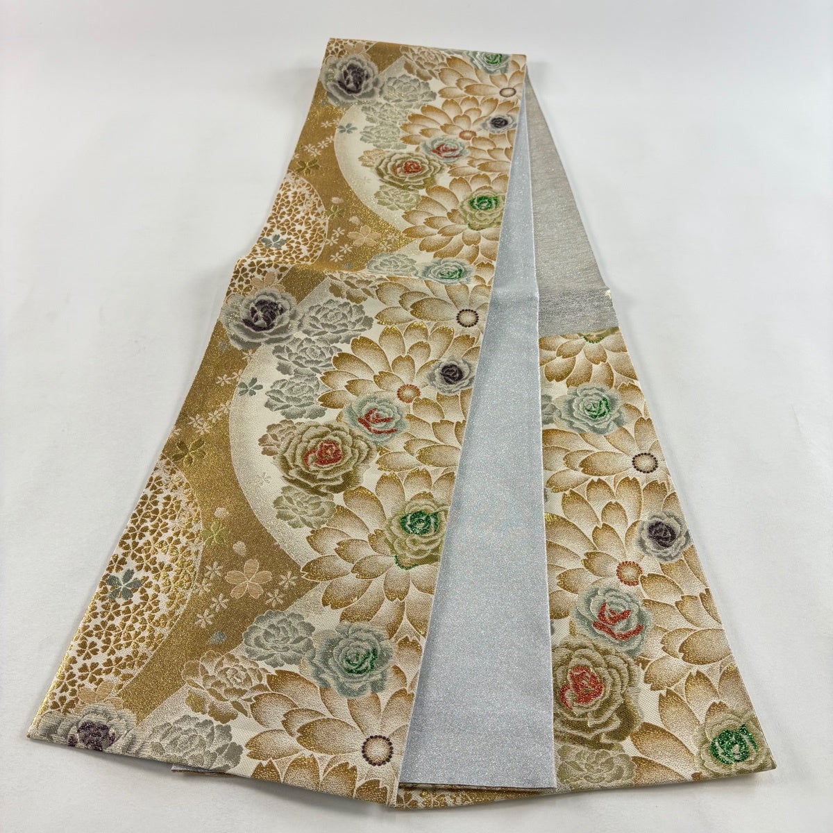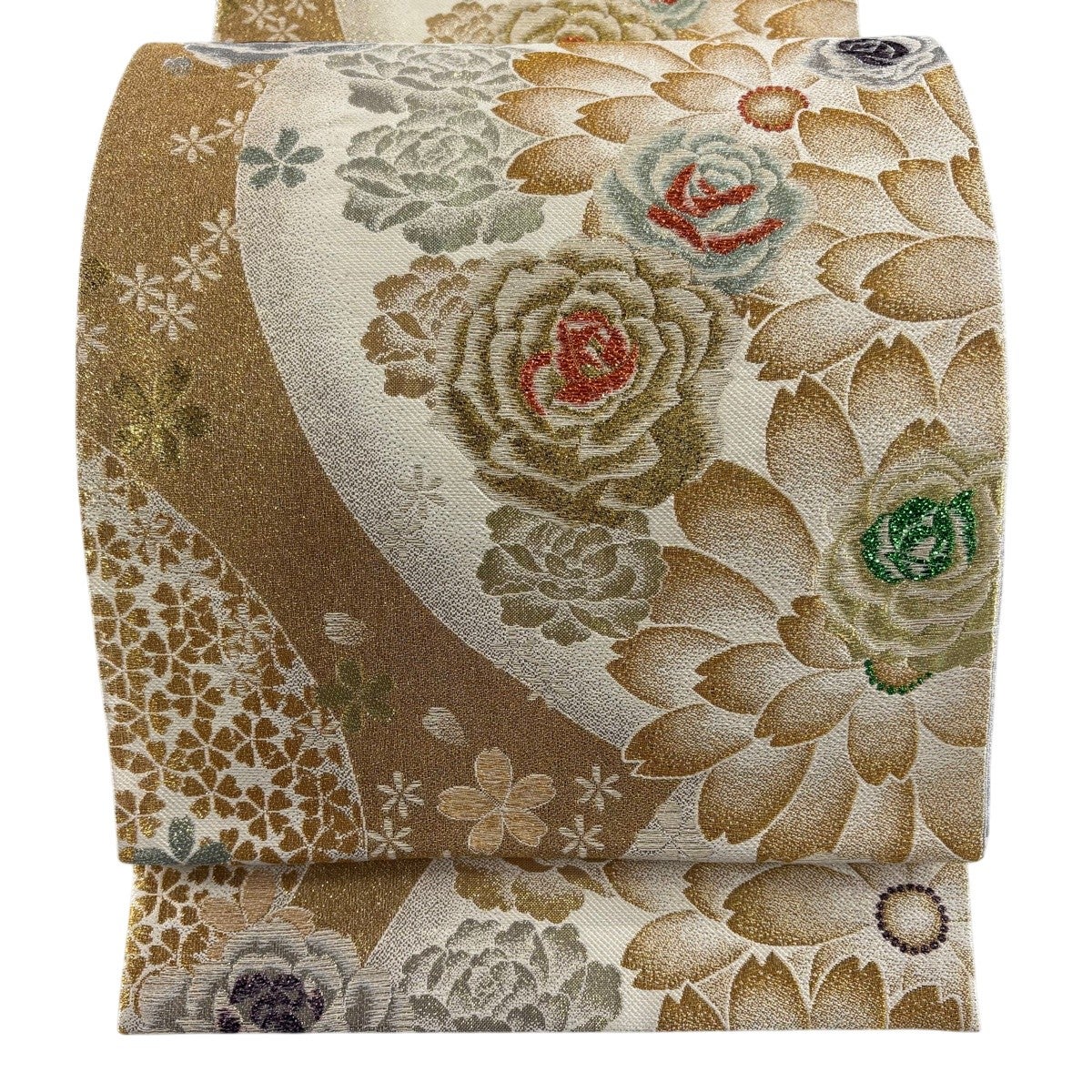 【美品】 袋帯 秀品 華文 草花 金糸 箔 金色 六通 正絹