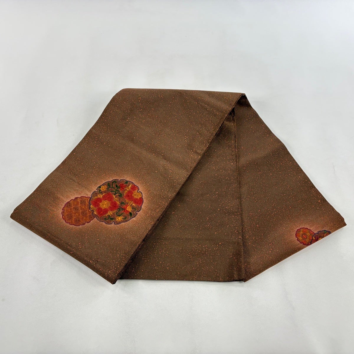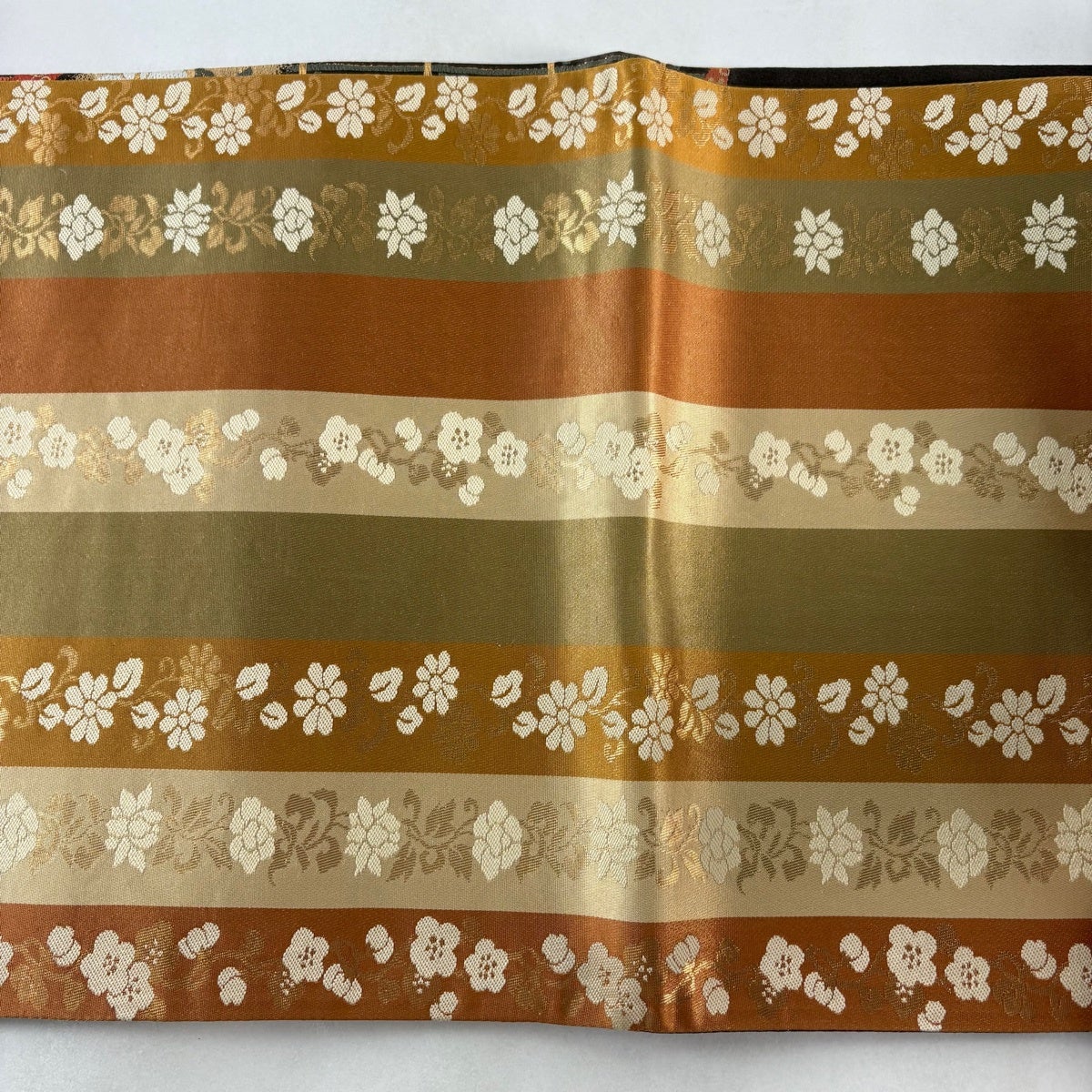 【美品】 袋帯 秀品 華文 花菱 金糸 箔 金茶 六通 正絹