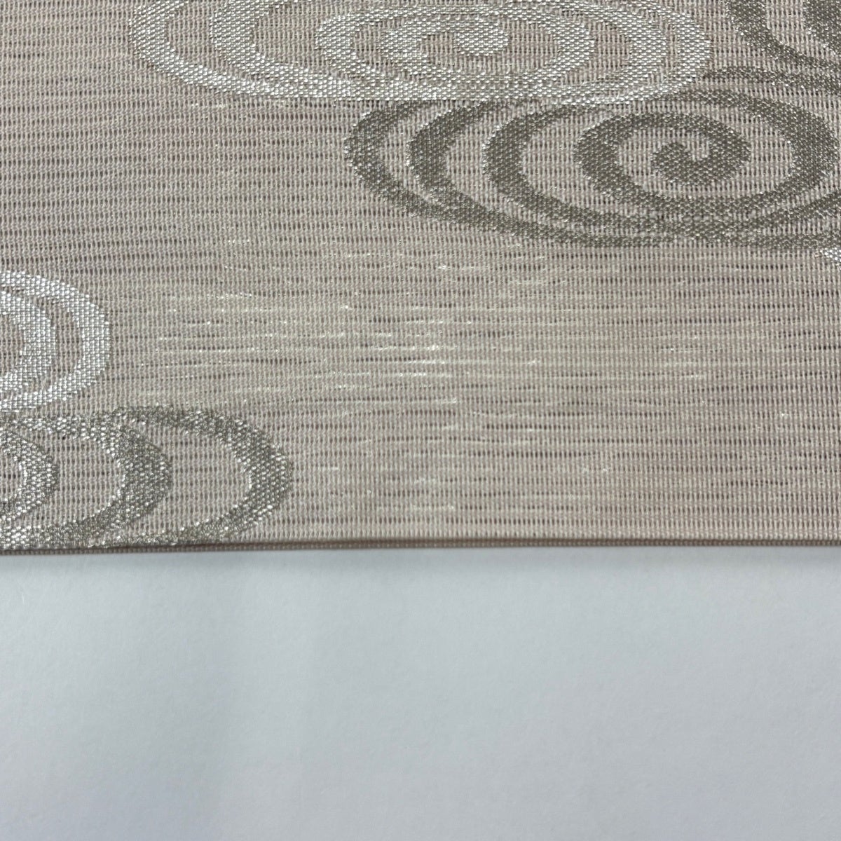 袋帯 秀品 夏帯 笹蔓 縞 箔 ベージュ 全通 正絹