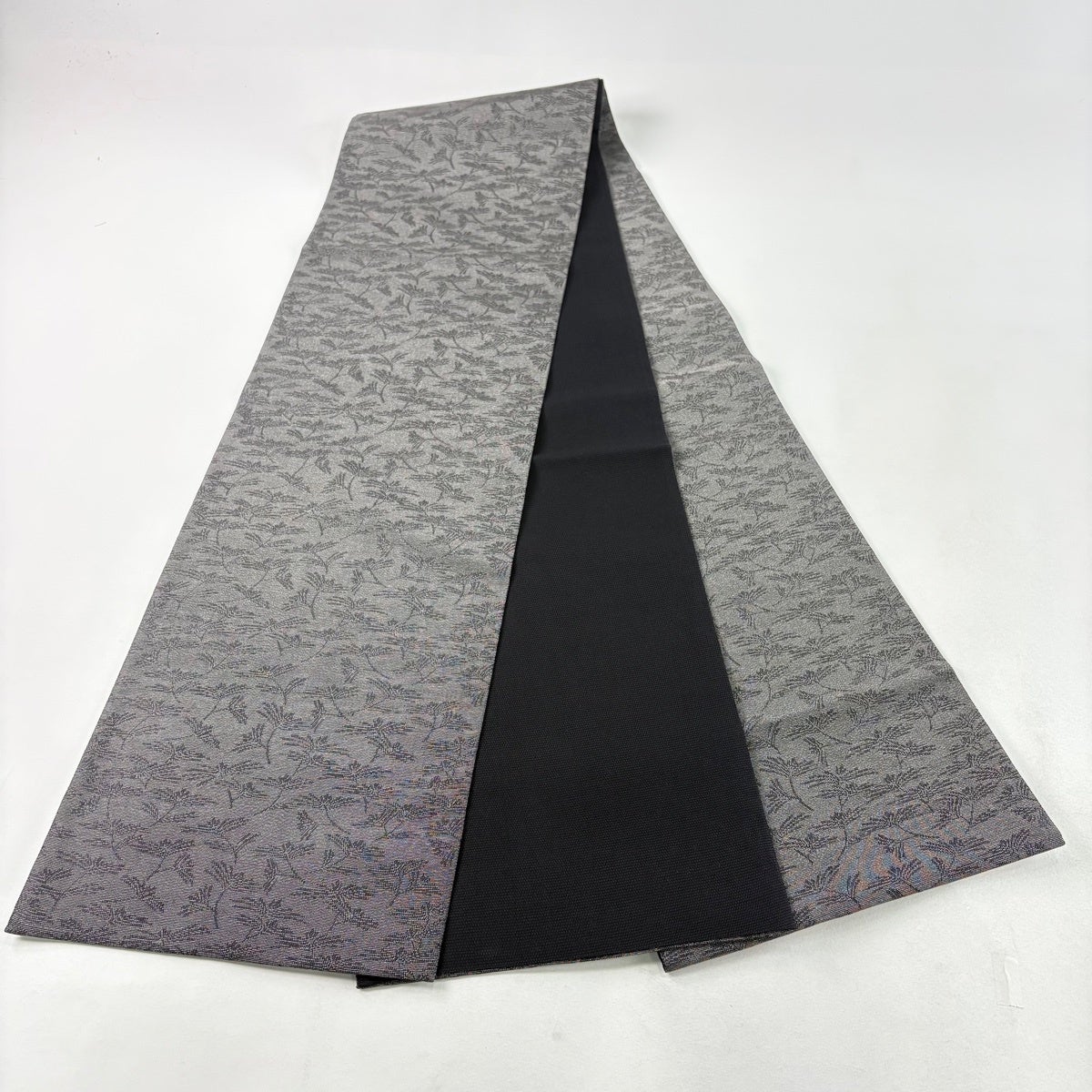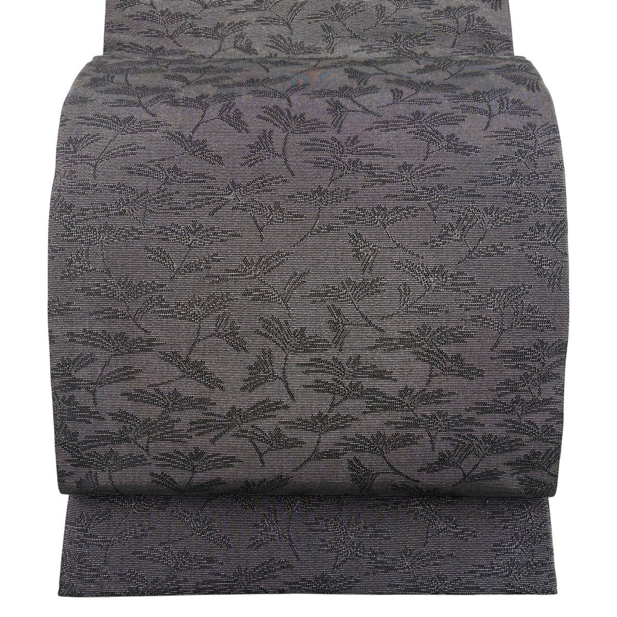 【美品】 袋帯 名品 夏帯 草花 銀糸 灰色 六通 正絹