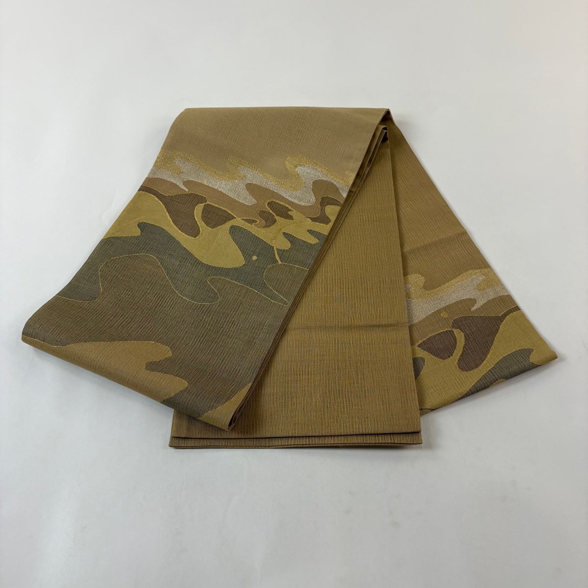 袋帯 秀品 夏帯 流水 波頭 金糸 黄土色 お太鼓柄 正絹