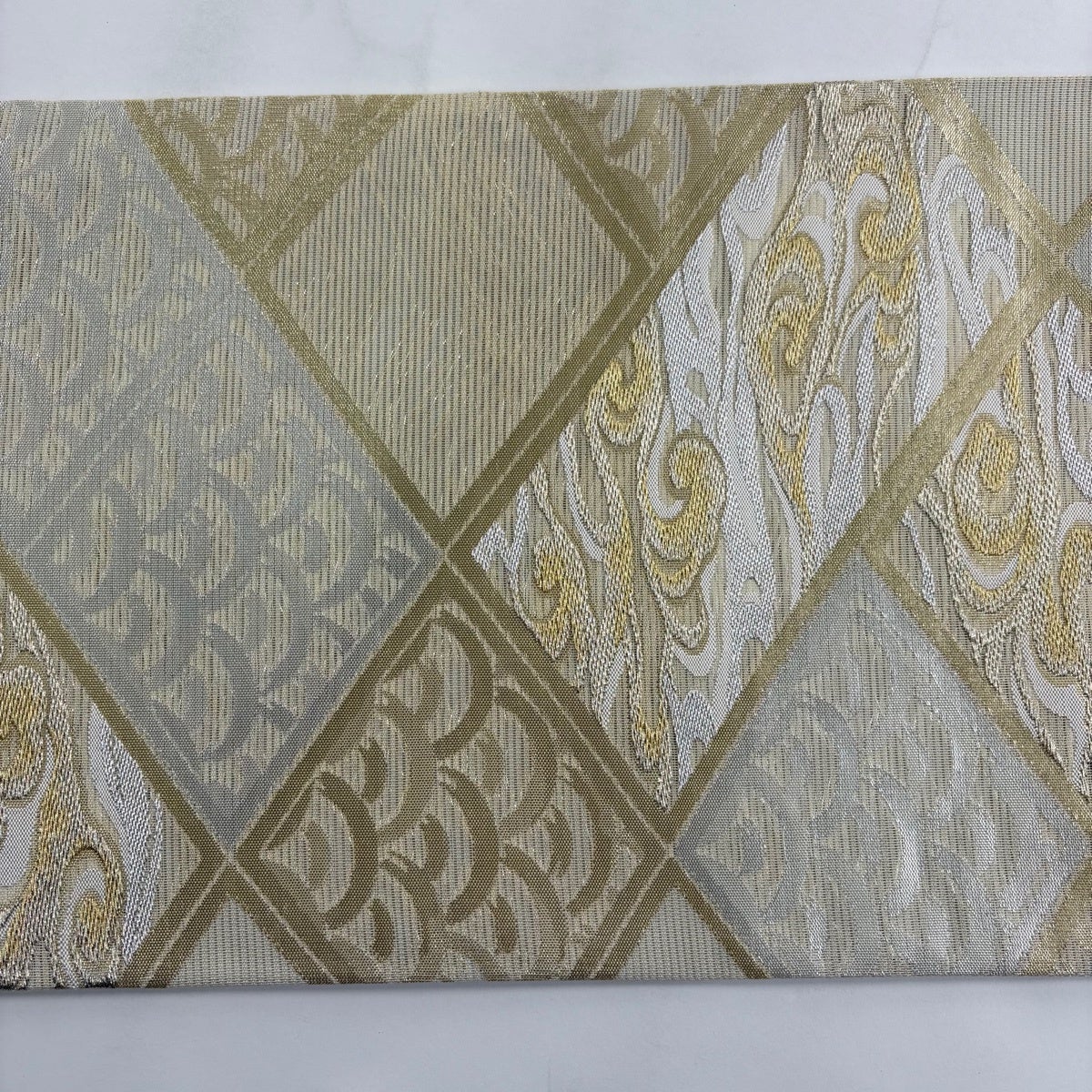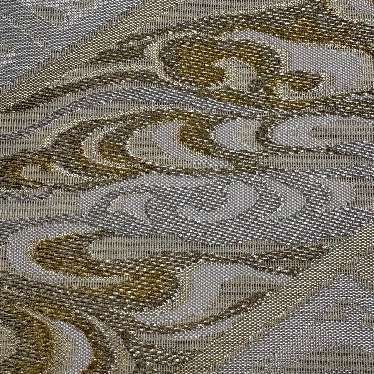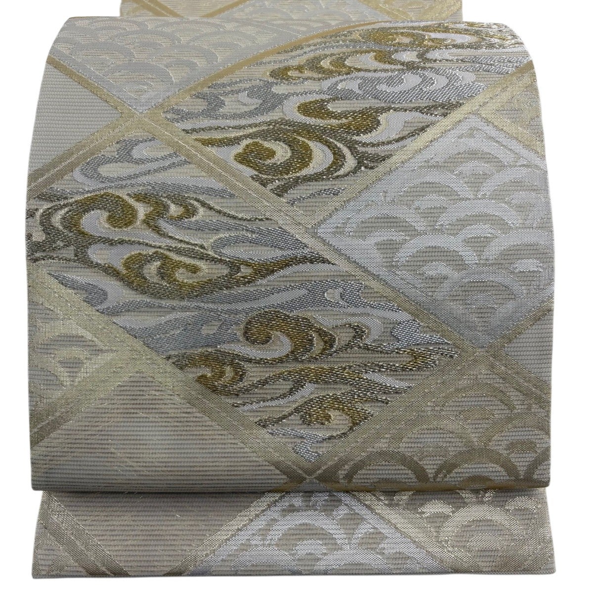 袋帯 秀品 夏帯 菱 波頭 金銀糸 クリーム お太鼓柄 正絹