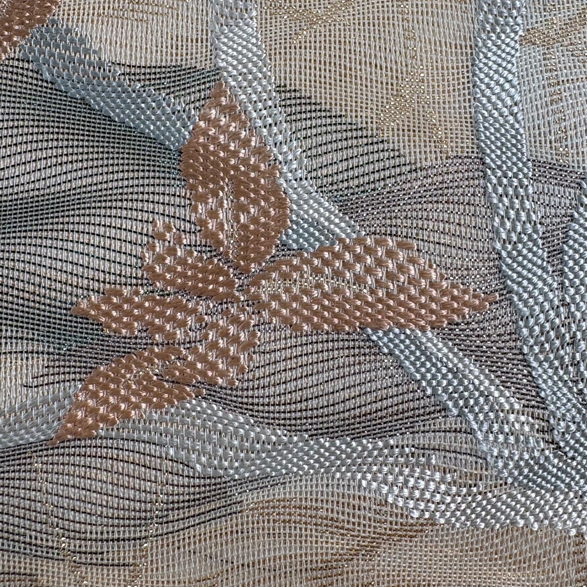 袋帯 秀品 夏帯 草花 葉柄 金銀糸 青灰色 お太鼓柄 正絹
