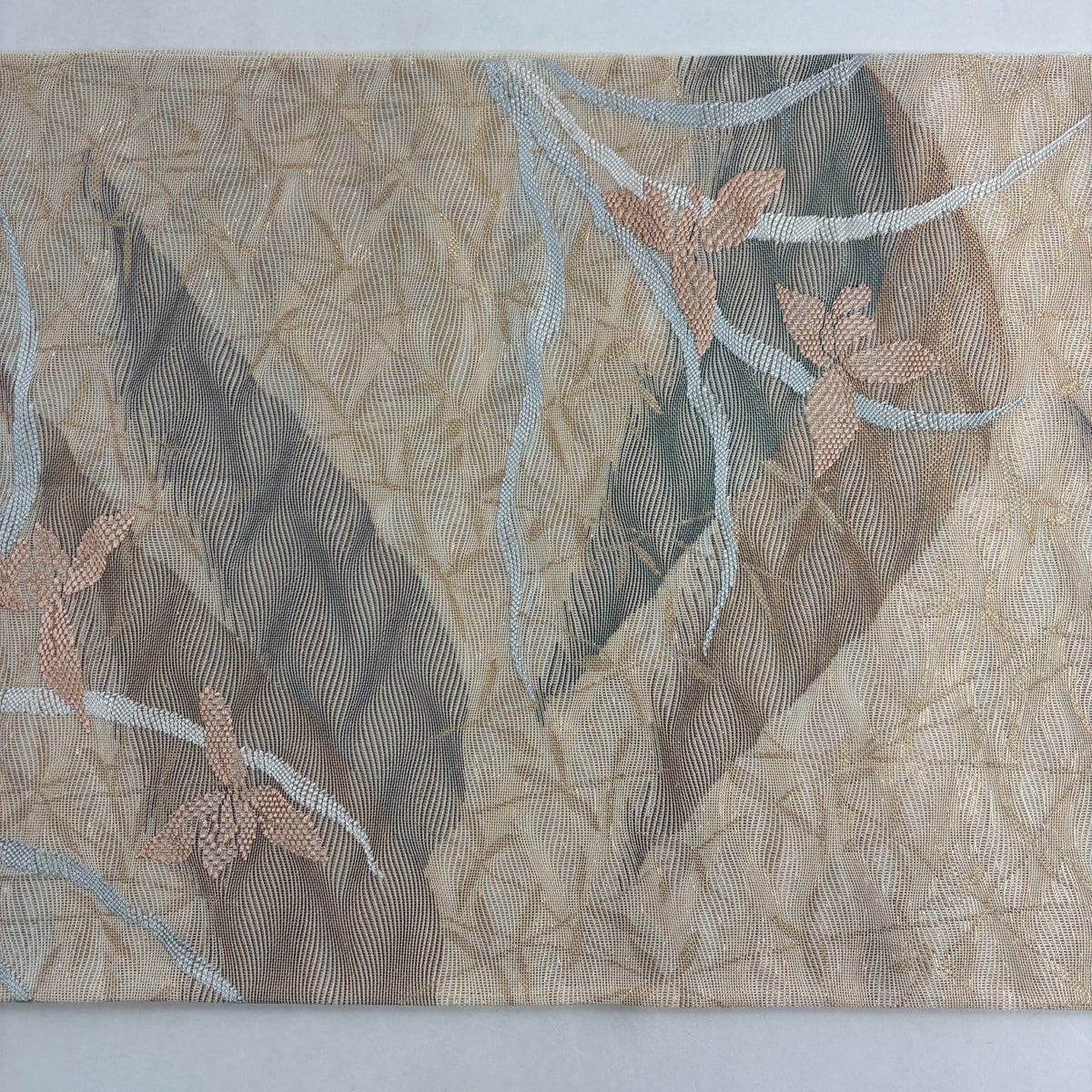 袋帯 秀品 夏帯絽 流水 箔 ベージュ お太鼓柄 正絹