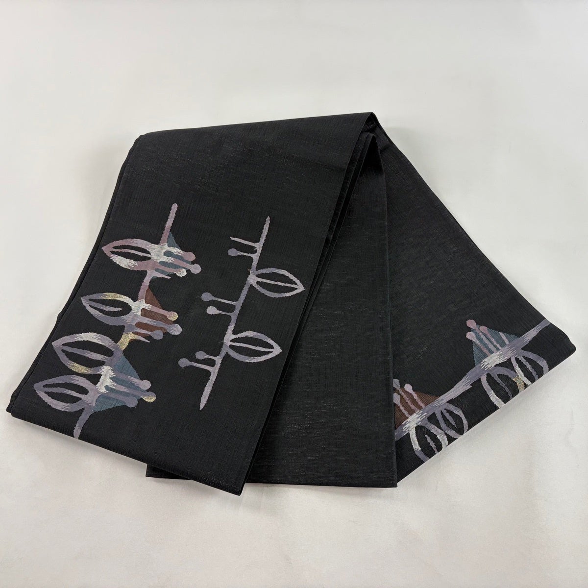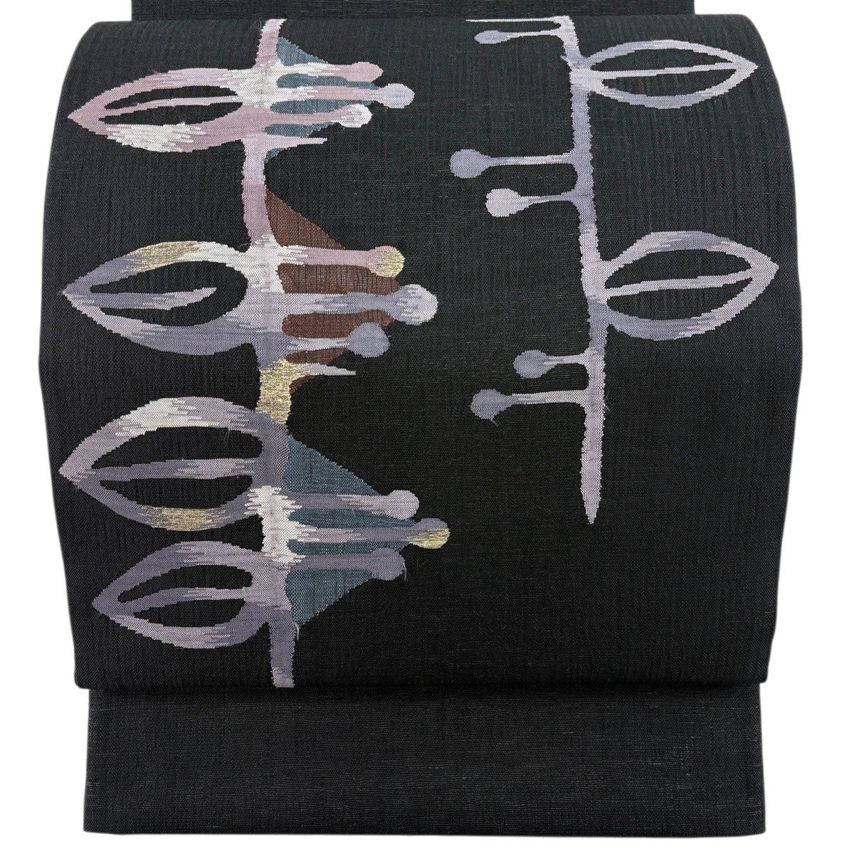 【美品】 袋帯 名品 夏帯 秋草 ヱ霞 黒 お太鼓柄 正絹