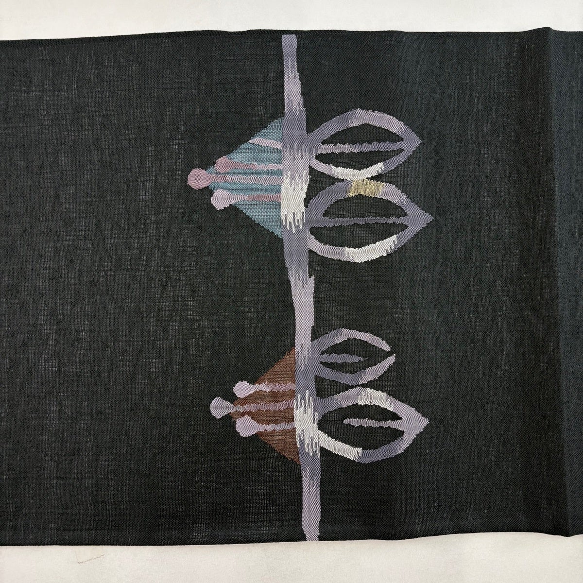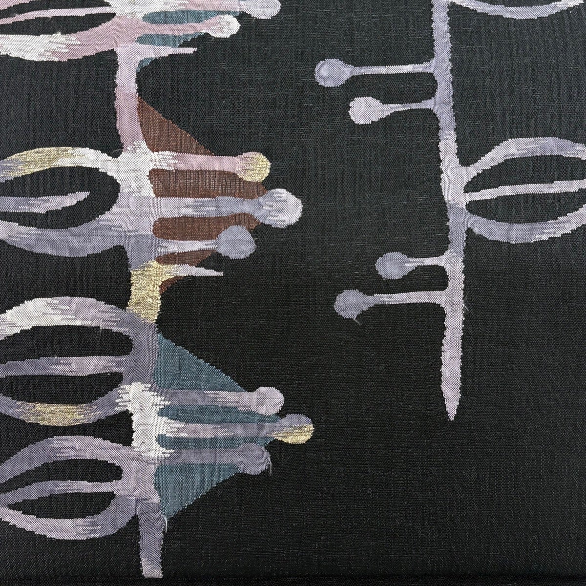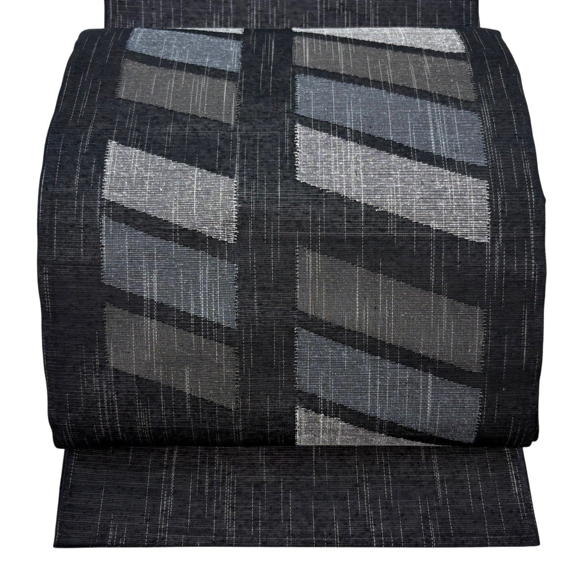 袋帯 秀品 夏帯 絽 菊 幾何学 銀糸 箔 墨色 六通 正絹