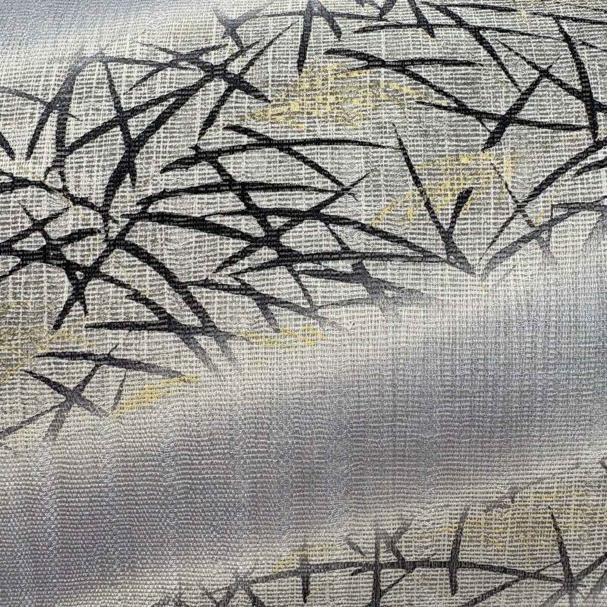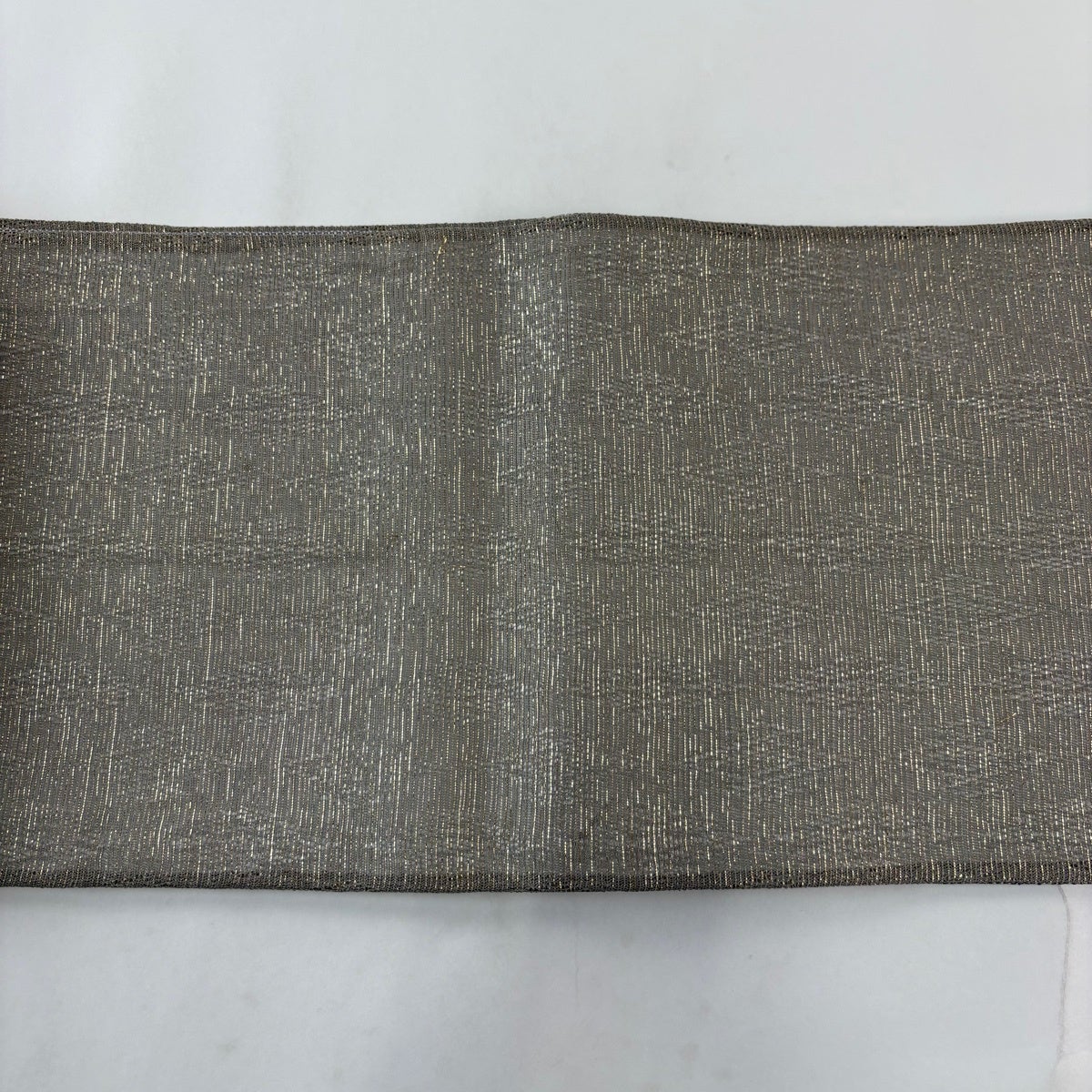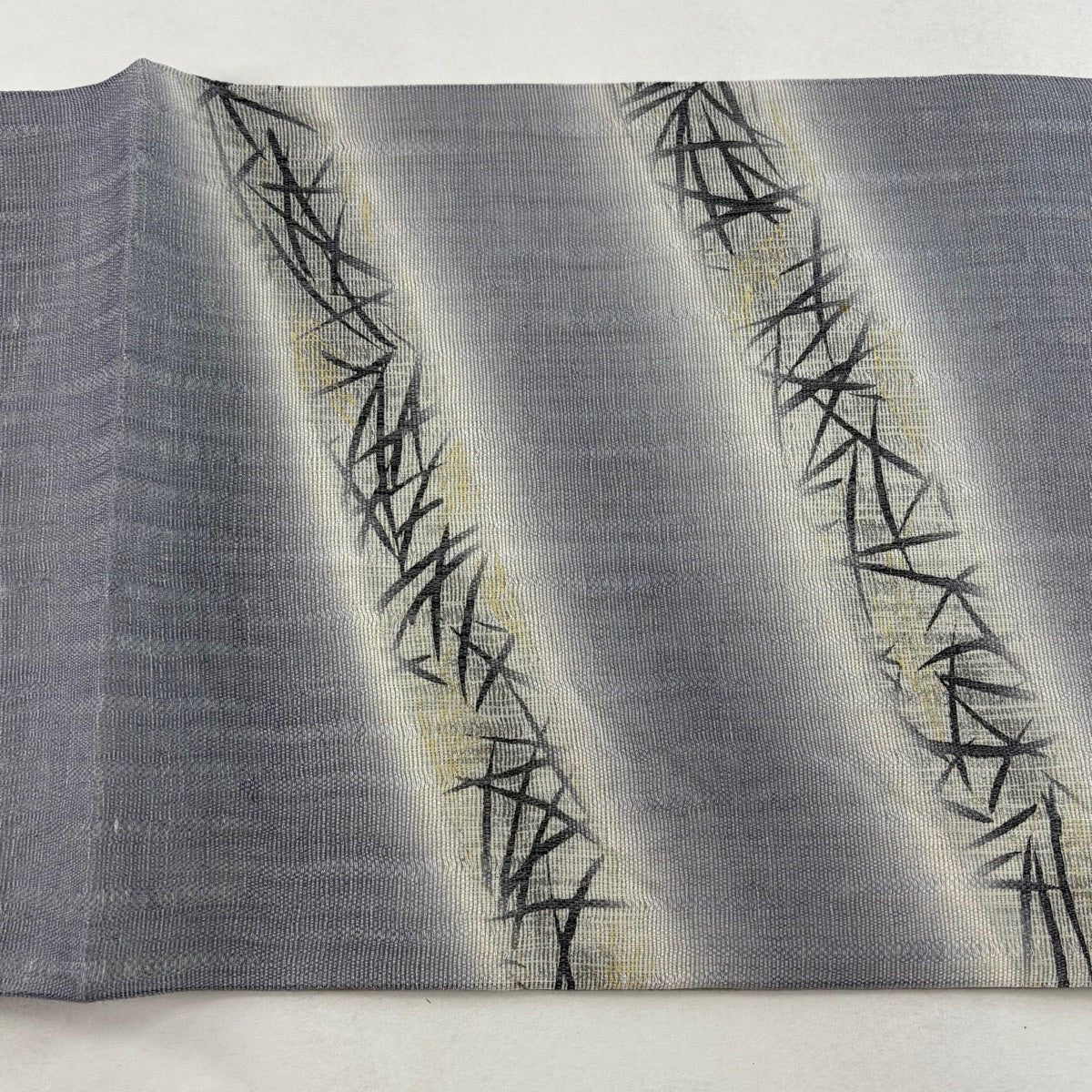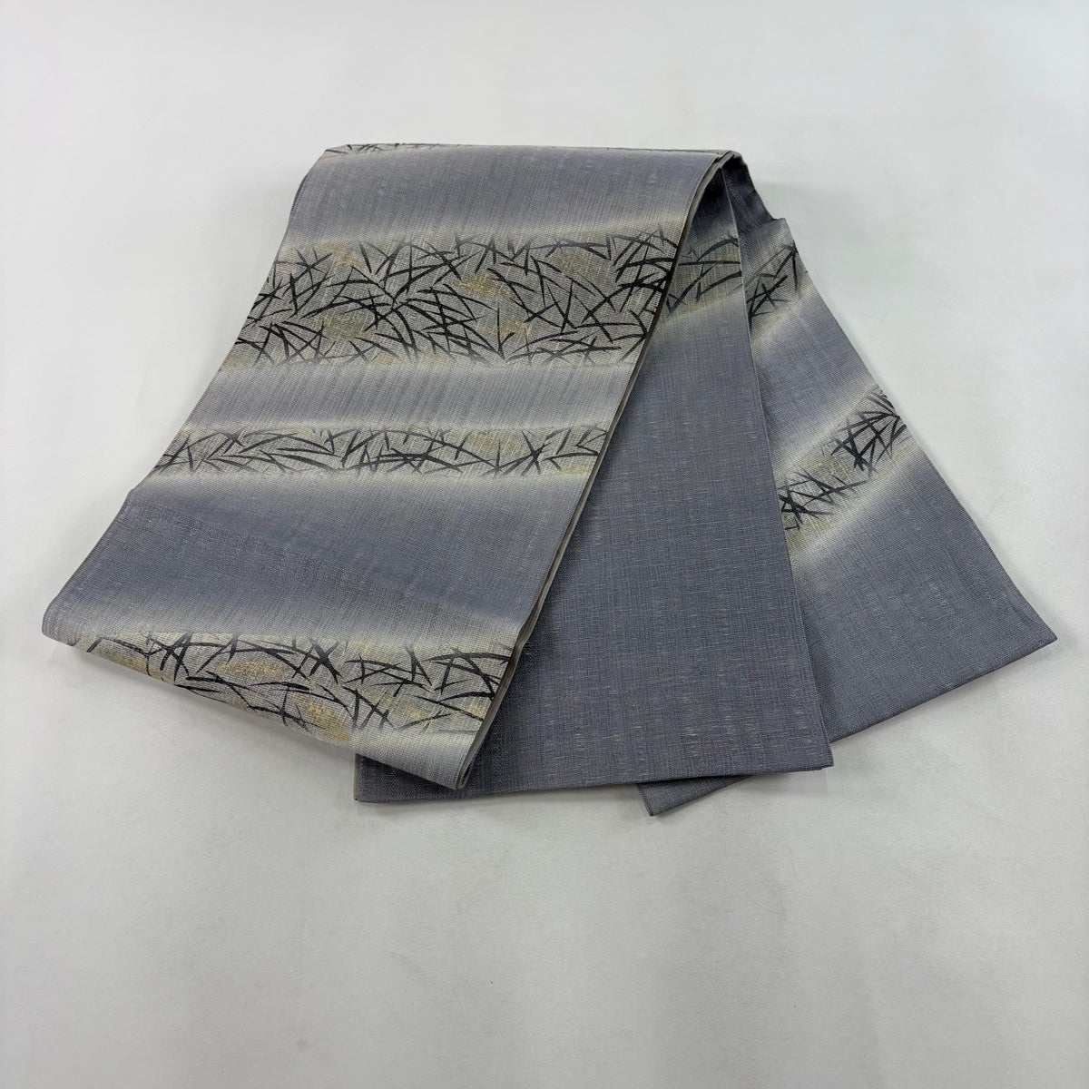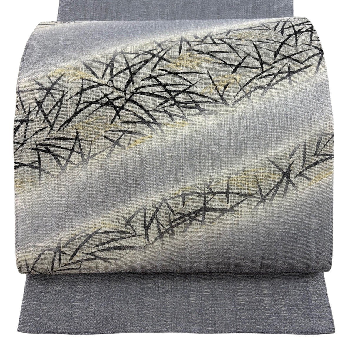 袋帯 秀品 夏帯 紗 笹 金糸 ぼかし 灰色 お太鼓柄 正絹