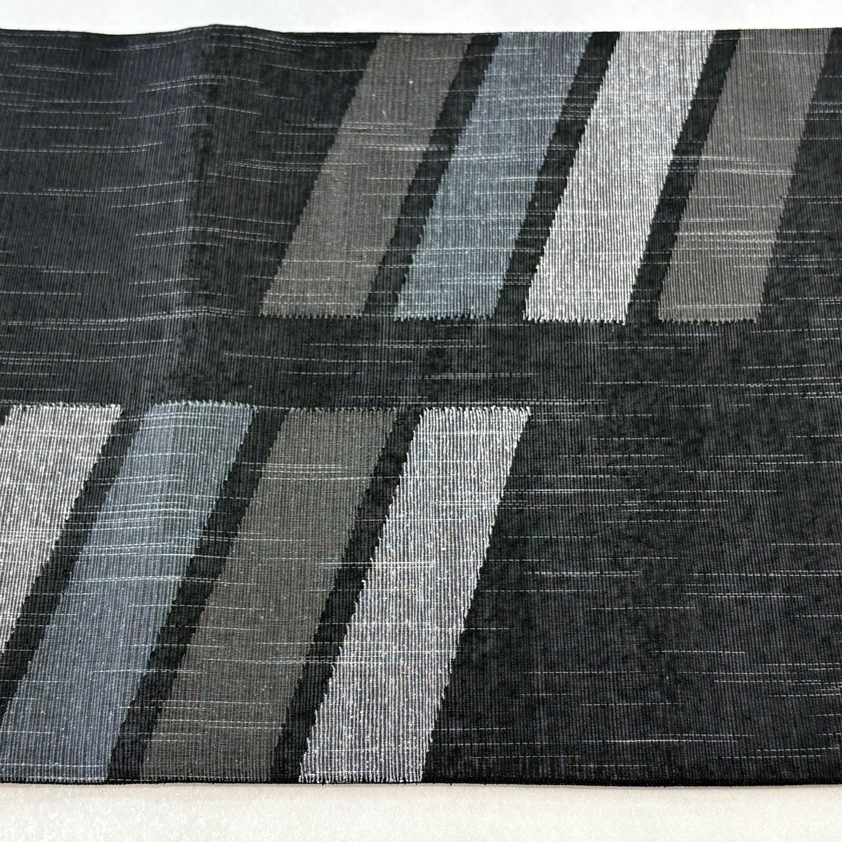 【美品】 袋帯 秀品 夏帯 絽 幾何学 灰色 お太鼓柄 正絹