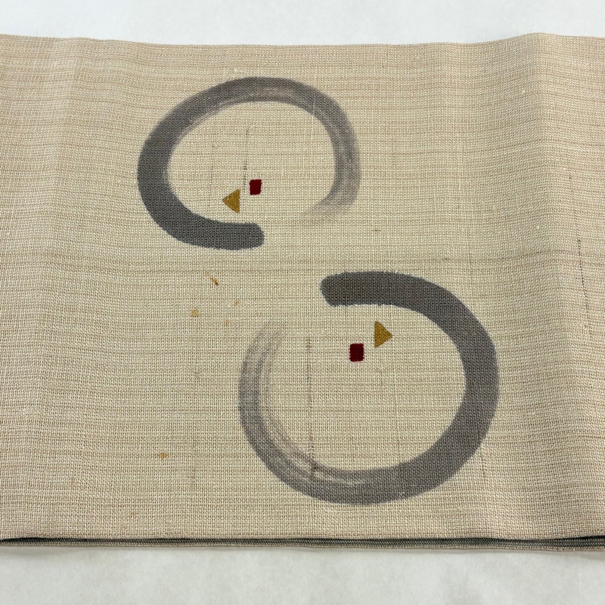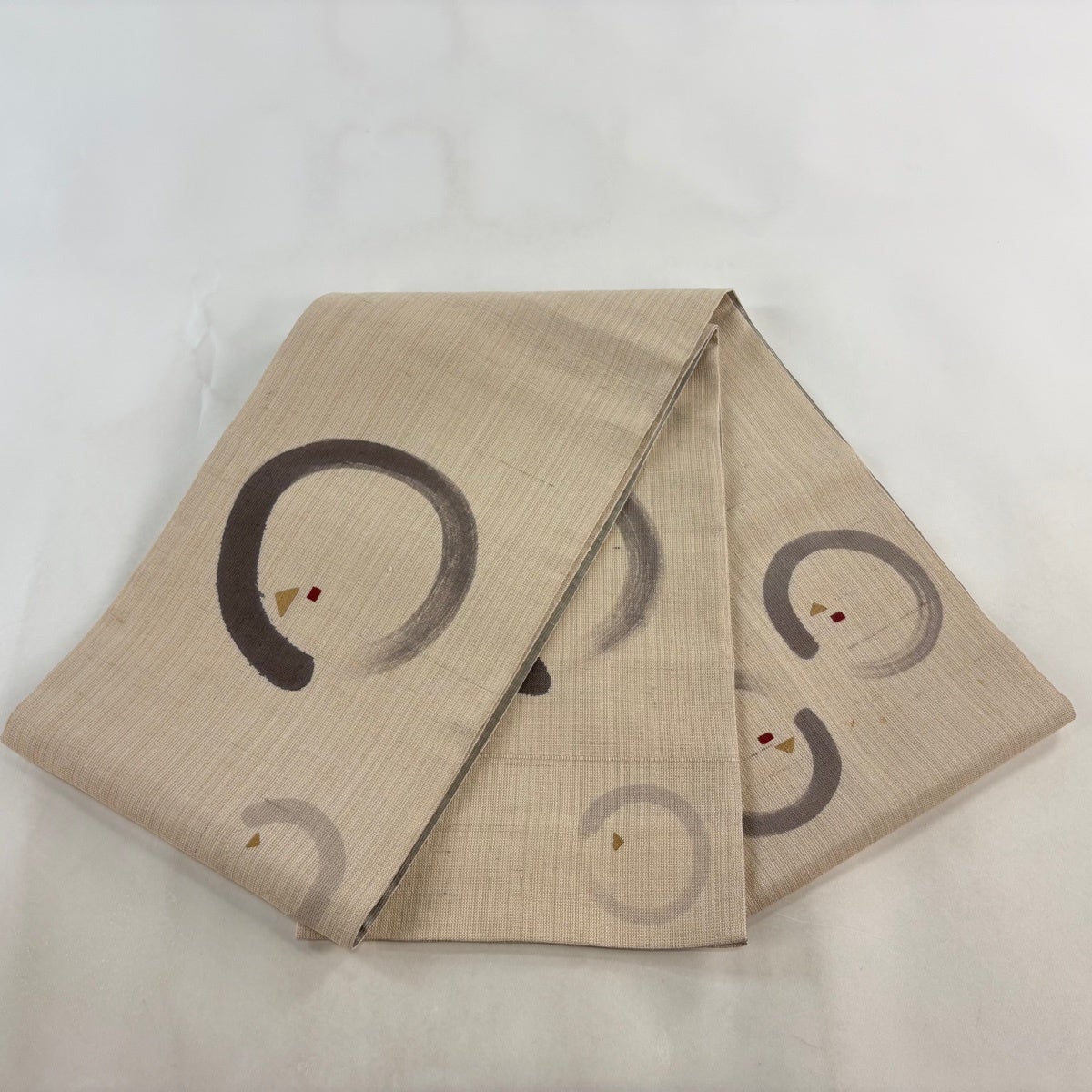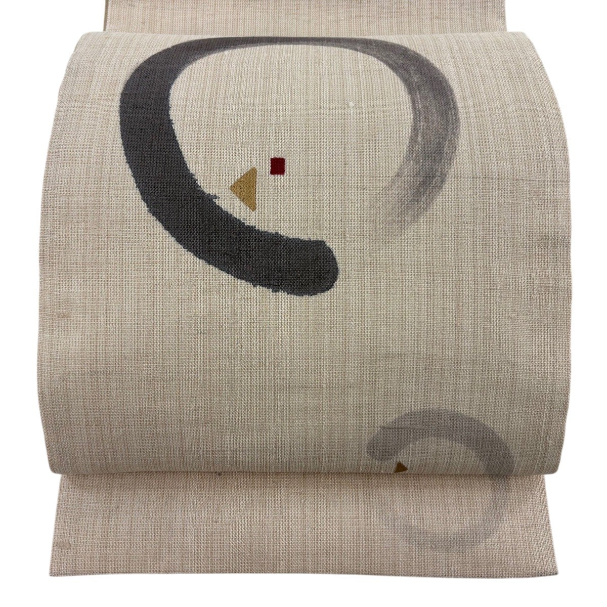 【美品】 袋帯 秀品 夏帯 絽 幾何学 箔 ベージュ お太鼓柄 正絹