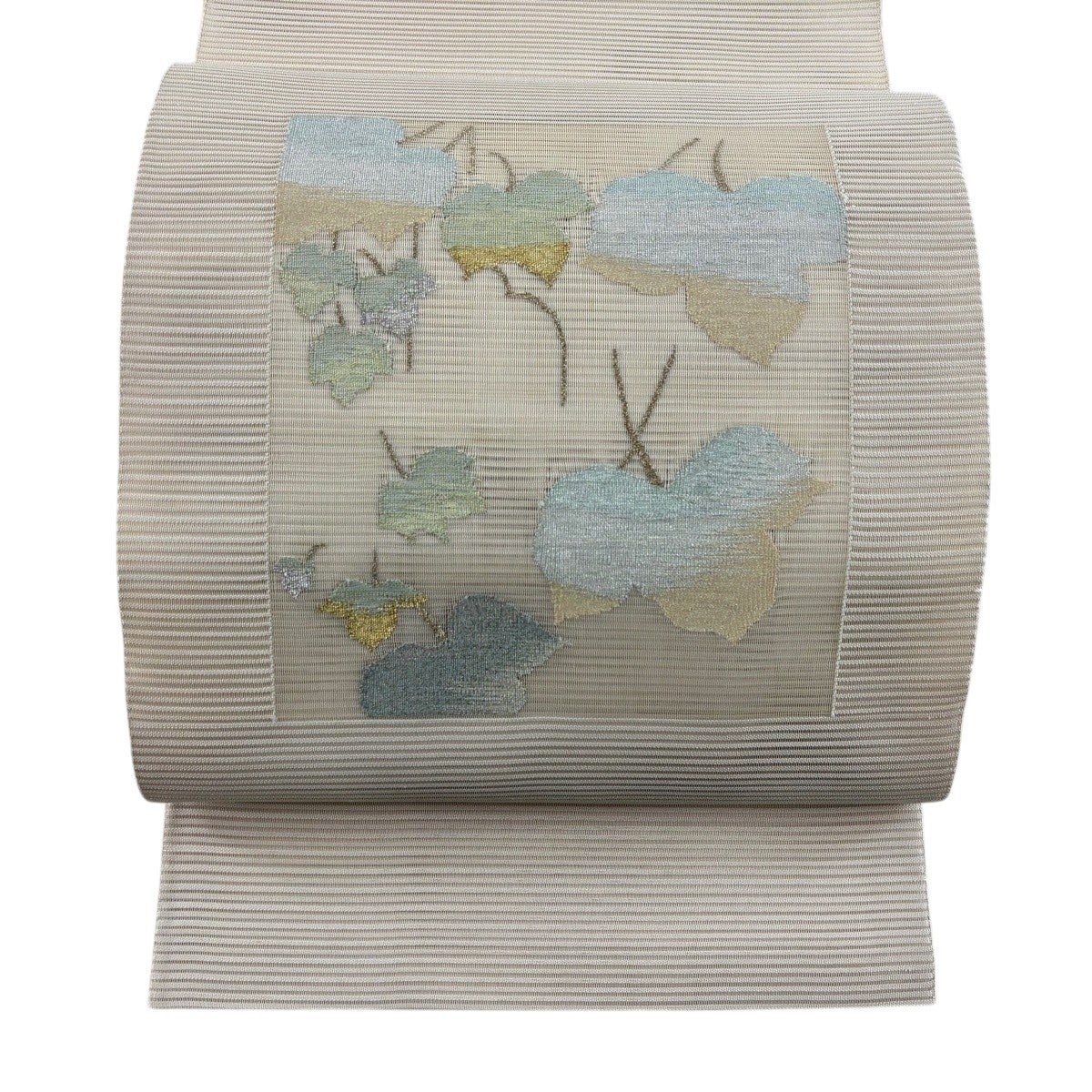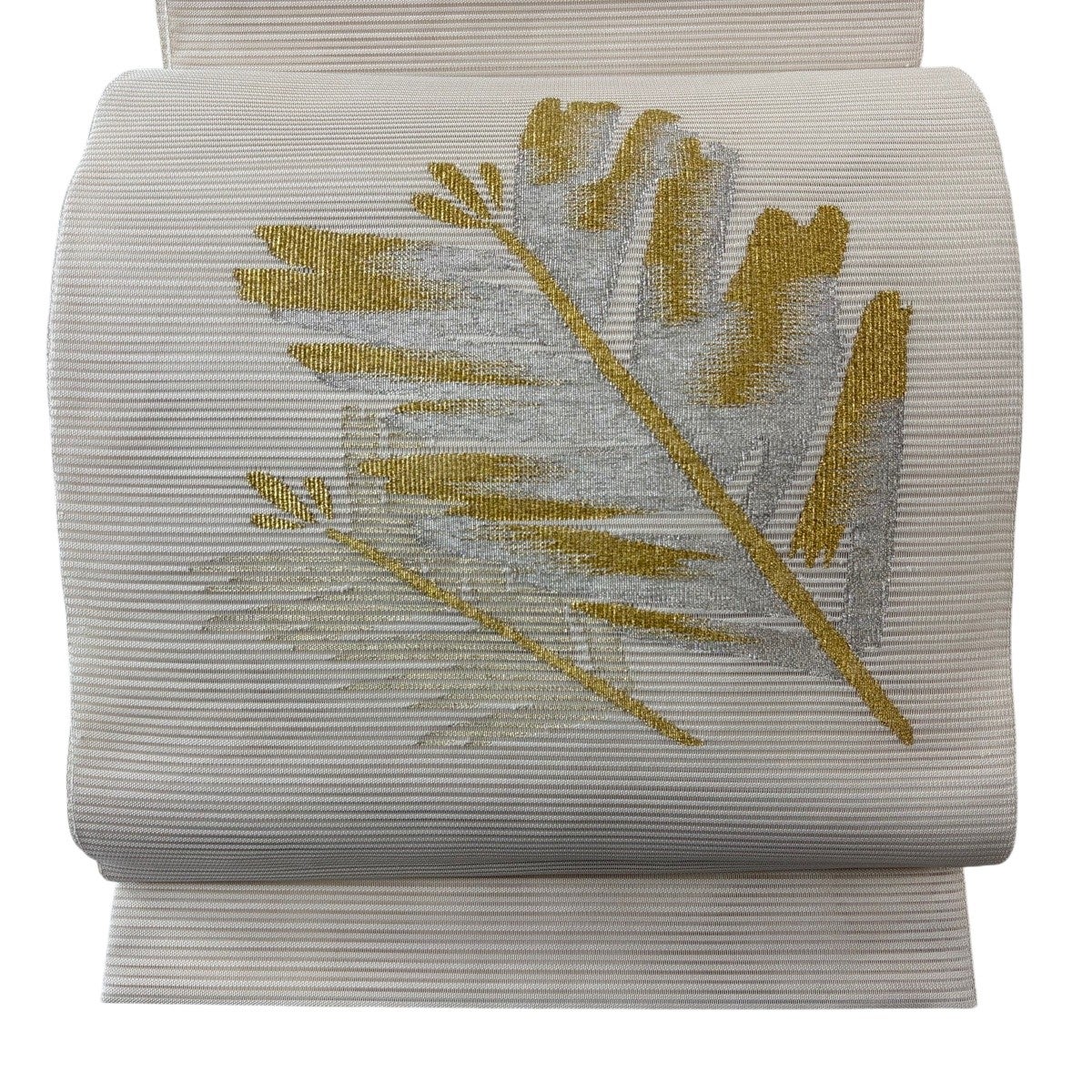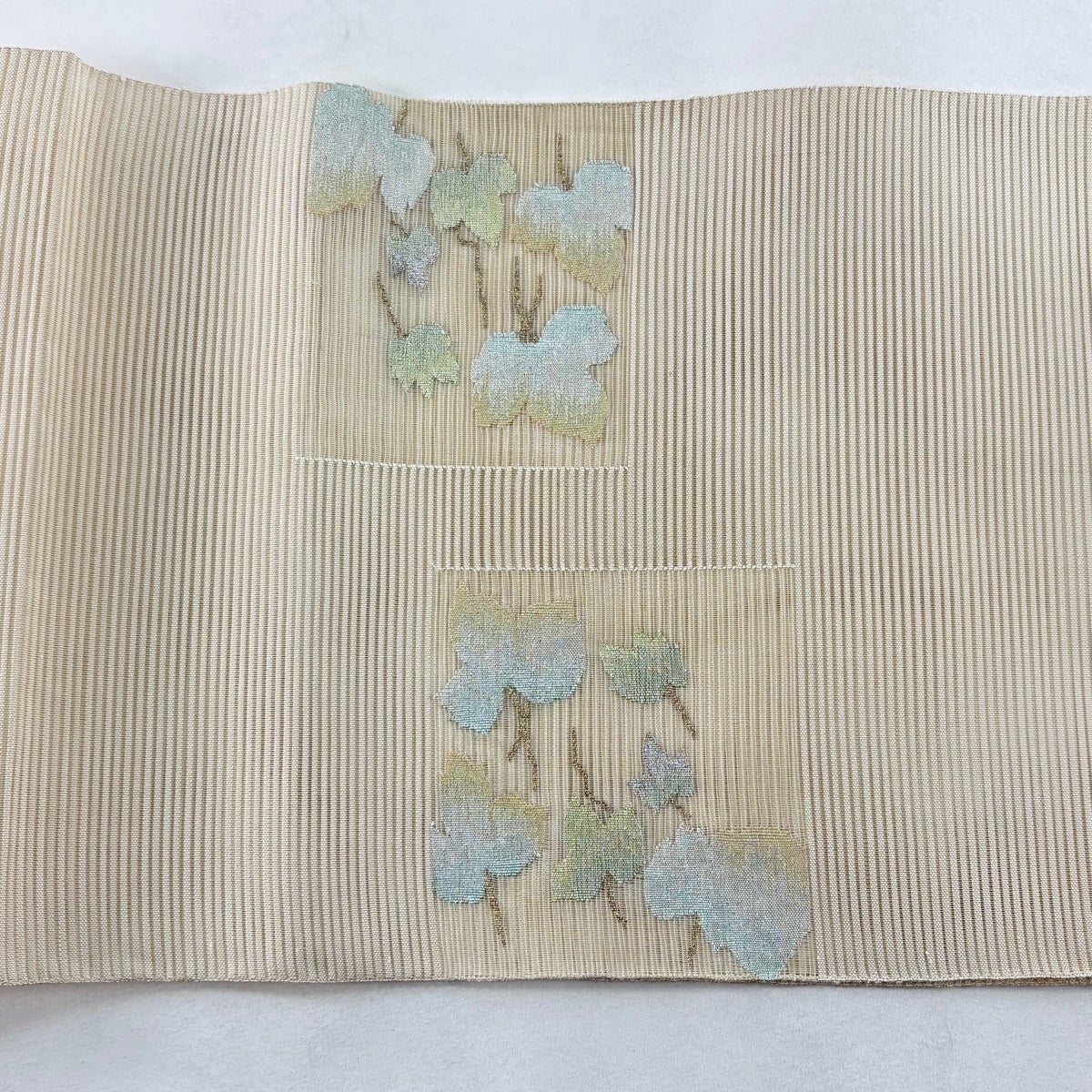 【美品】 袋帯 秀品 夏帯 葉柄 花 金銀糸 クリーム お太鼓柄 正絹