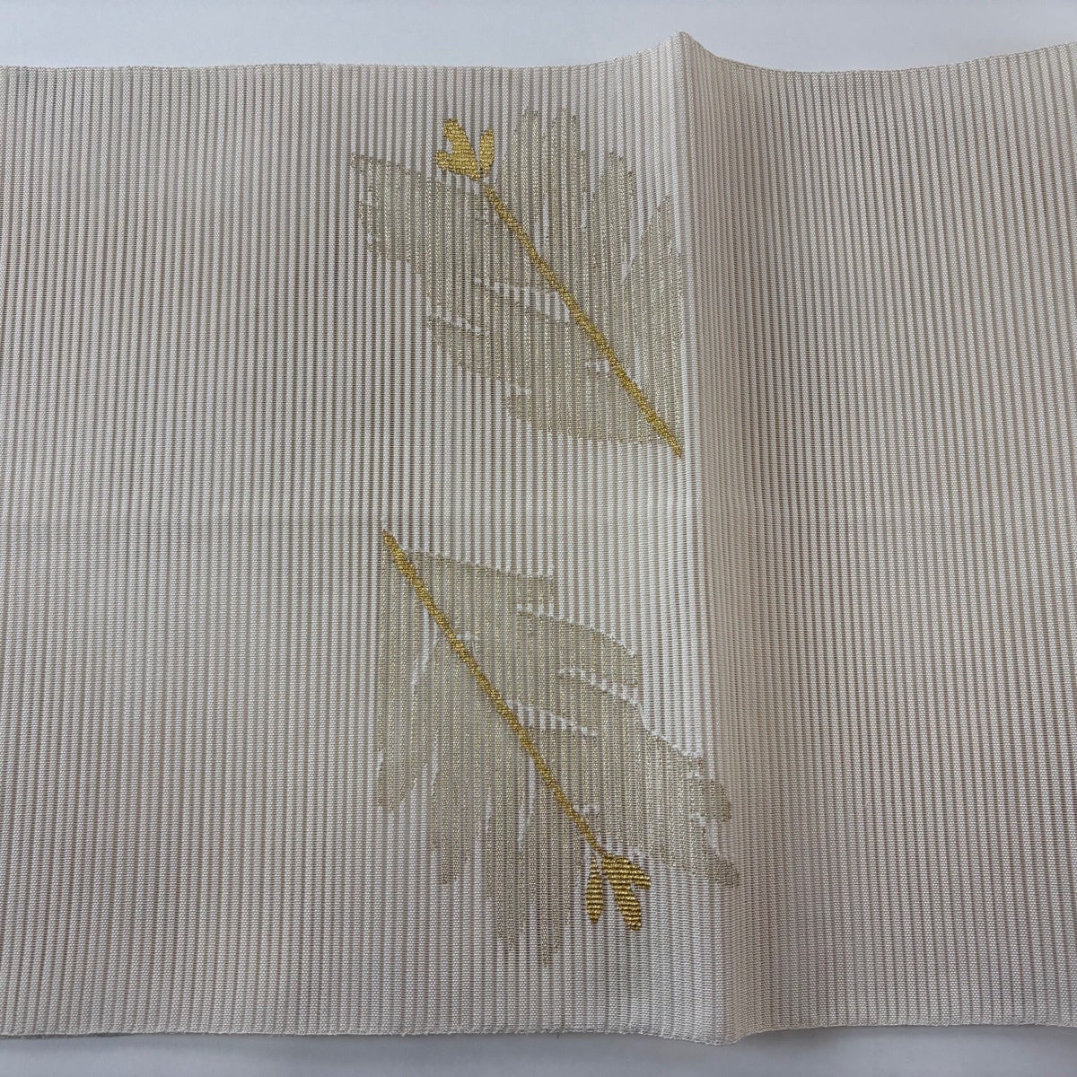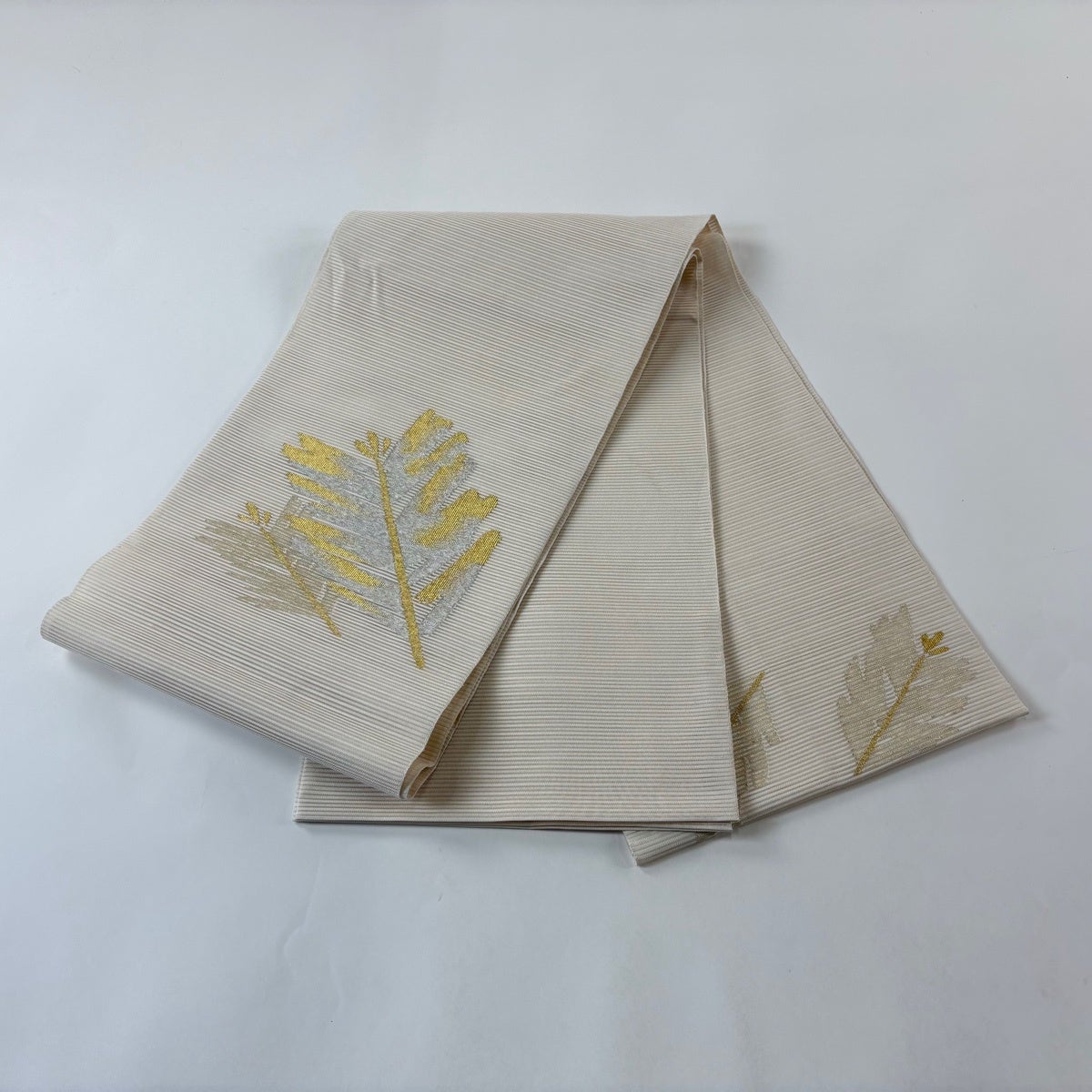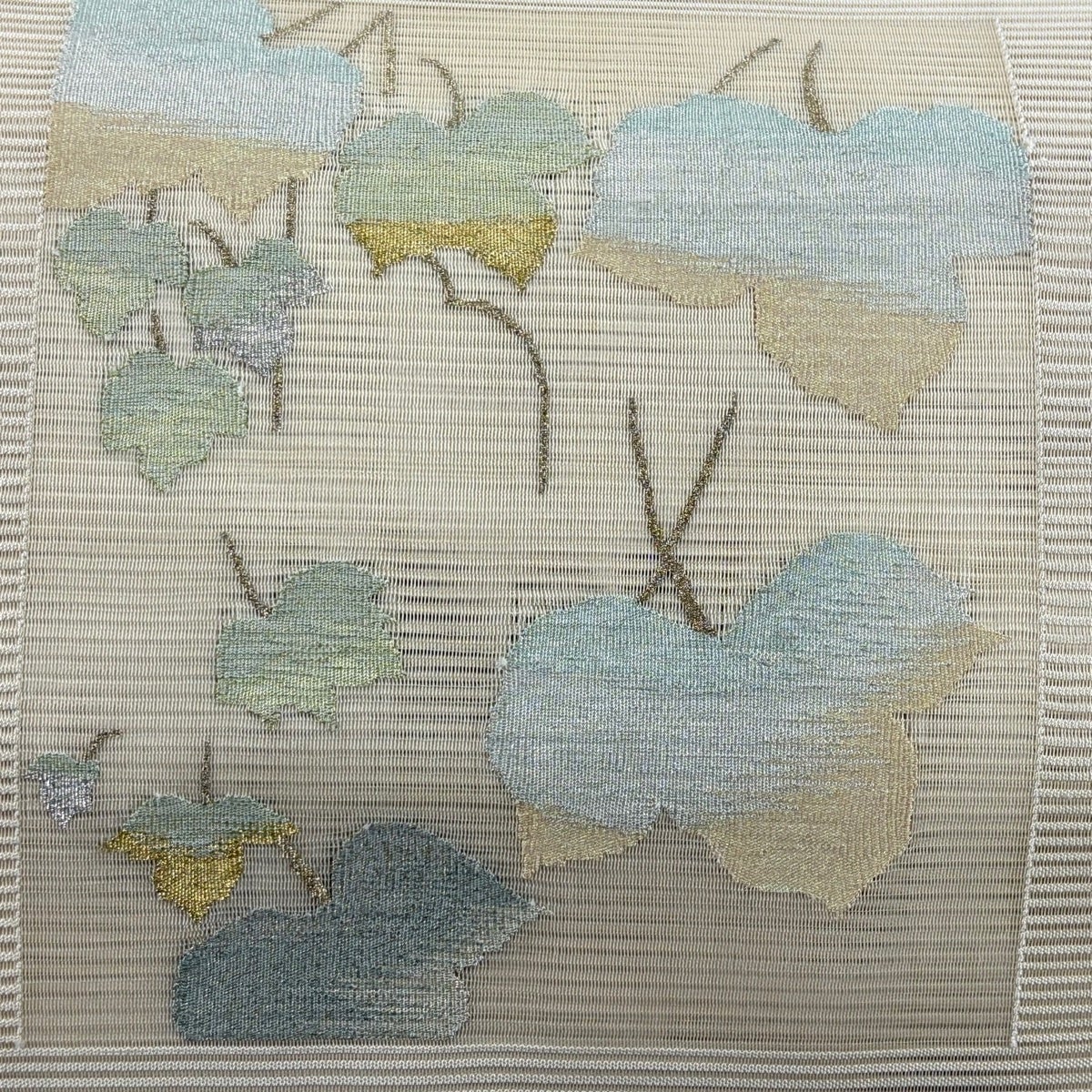 【美品】 袋帯 秀品 夏帯 葉柄 花 金銀糸 クリーム お太鼓柄 正絹